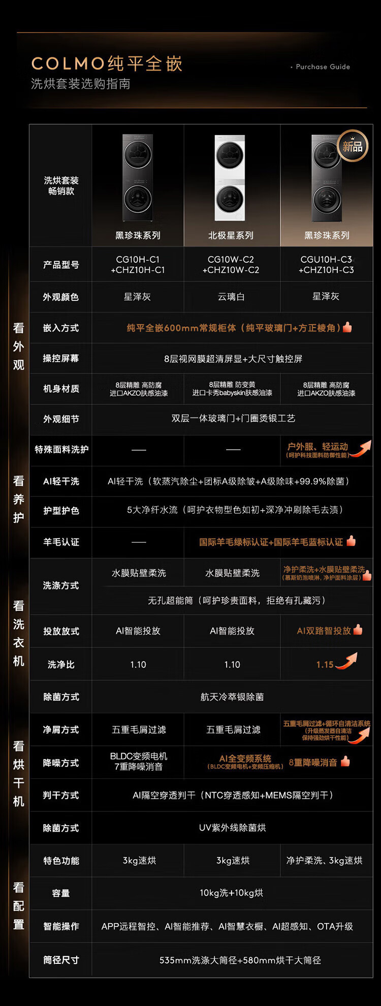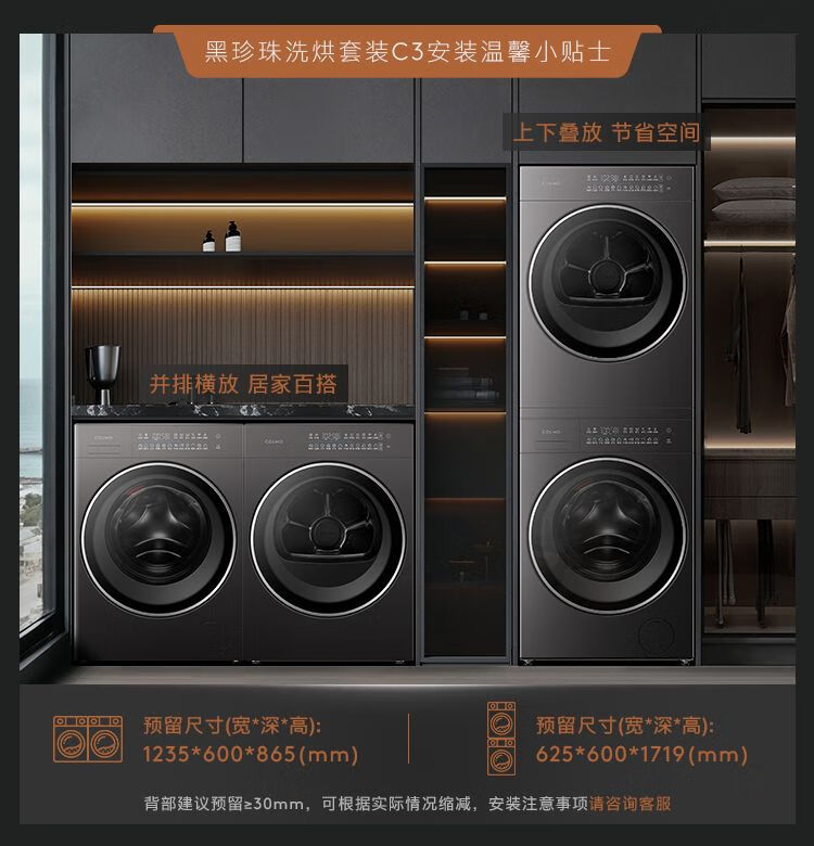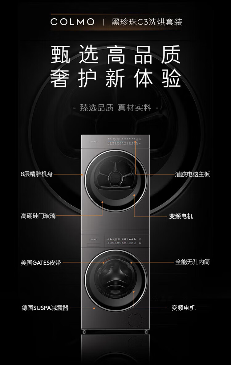 COLMO黑珍珠洗烘套装C3 10KG滚筒洗衣机+热泵烘干机 净护柔洗CGU10H-C3+CHZ10H-C3(支持鸿蒙智联)
