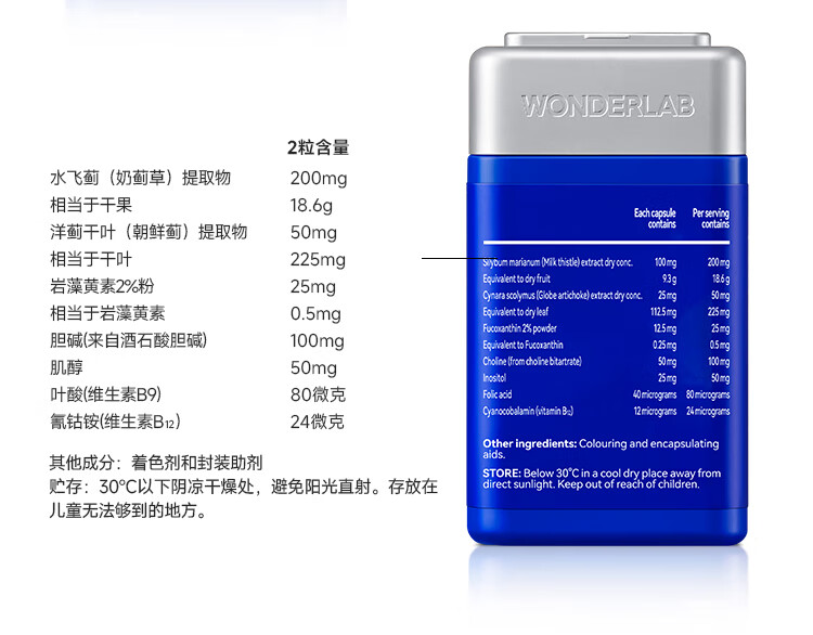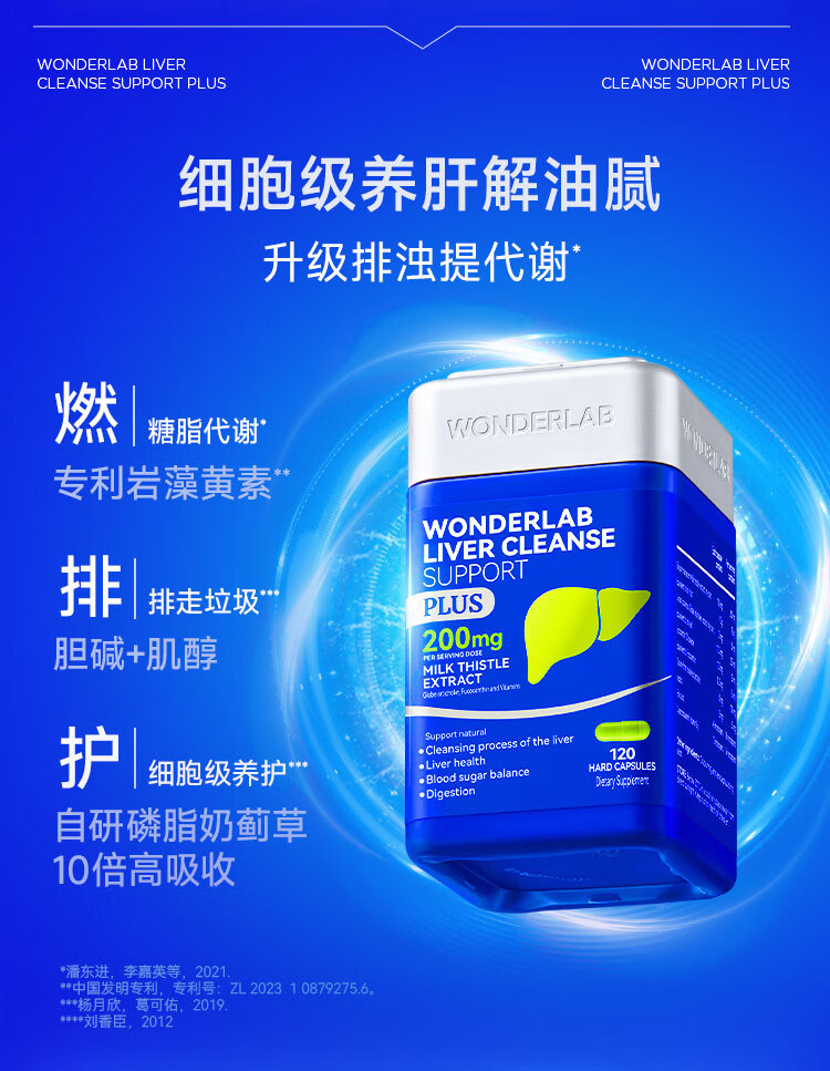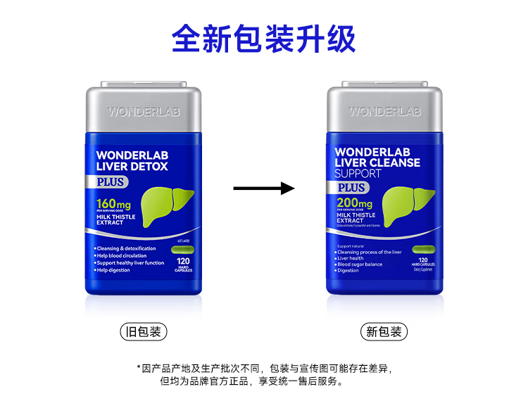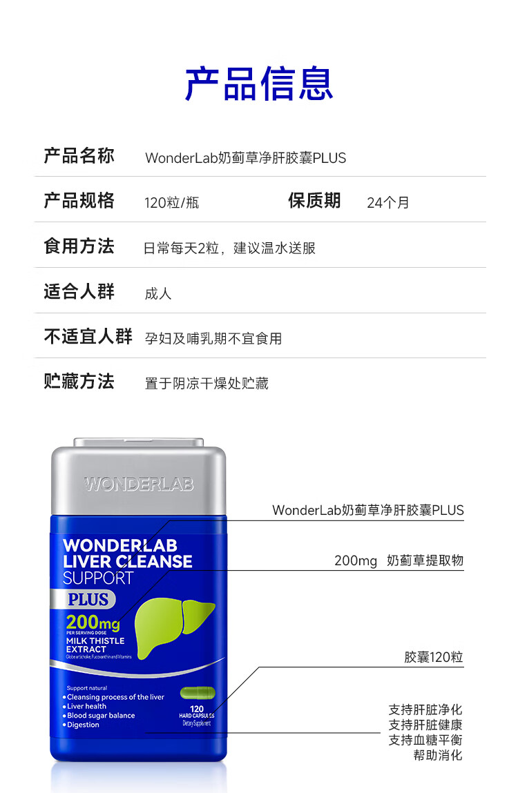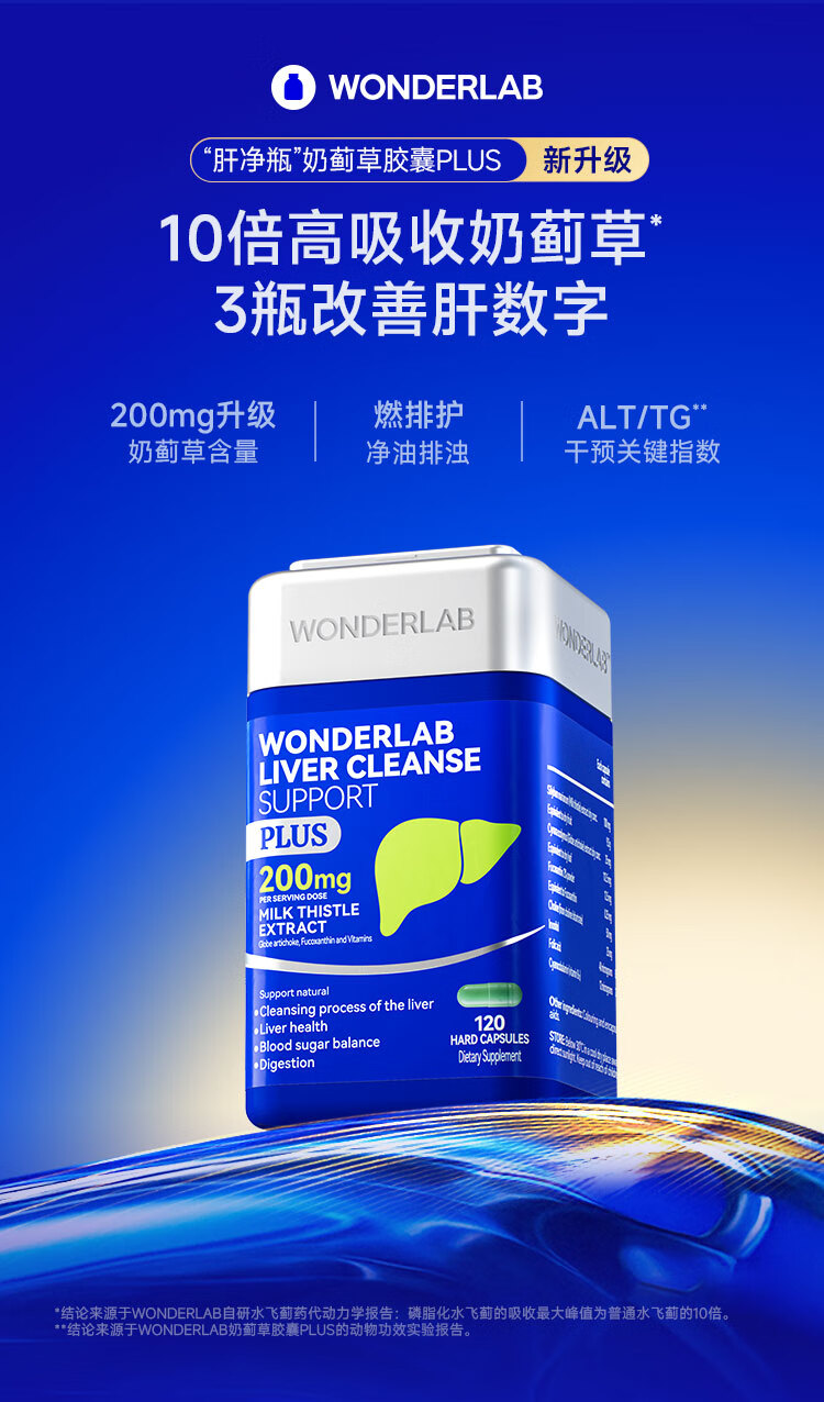 WONDERLAB奶蓟草净肝胶囊Plus120粒*1瓶进口水飞蓟朝鲜蓟护肝片熬夜应酬