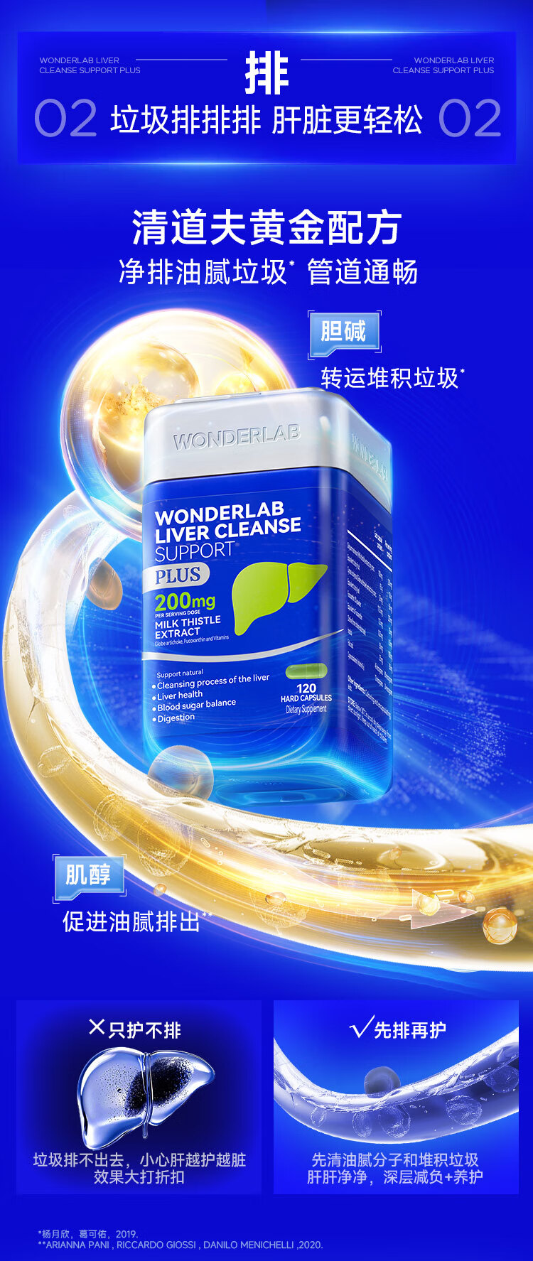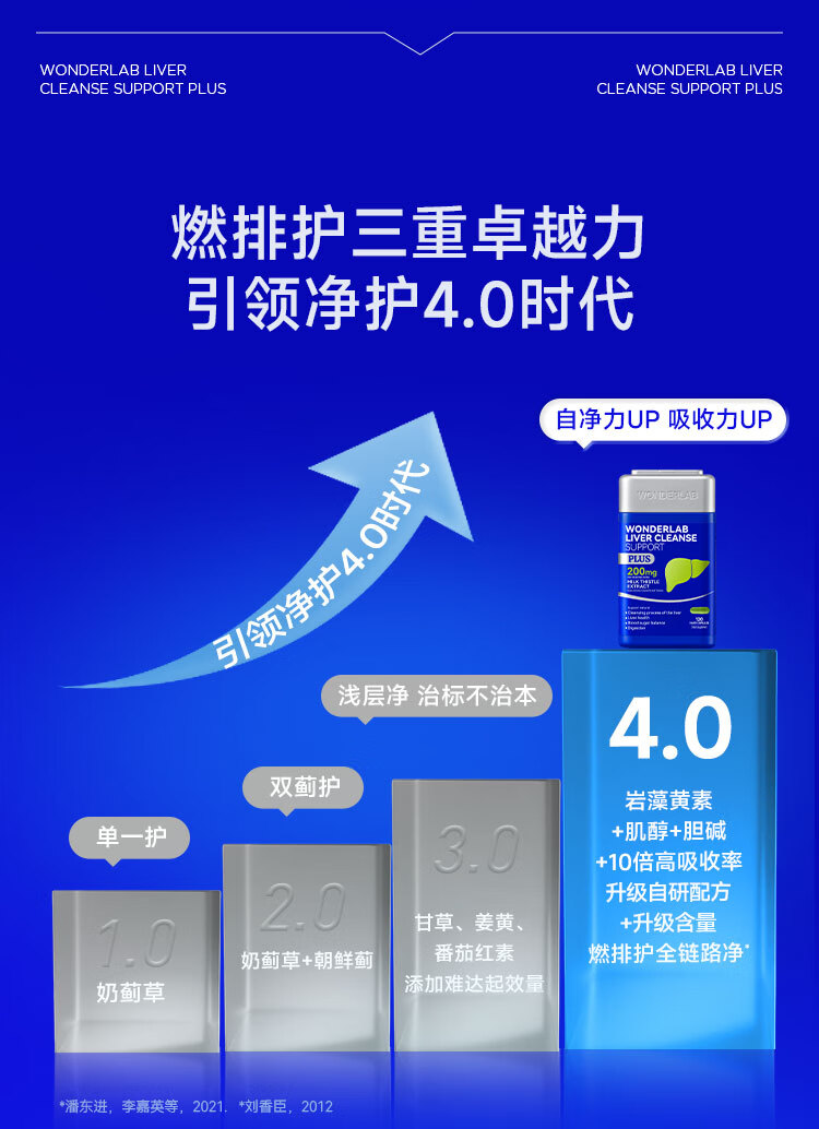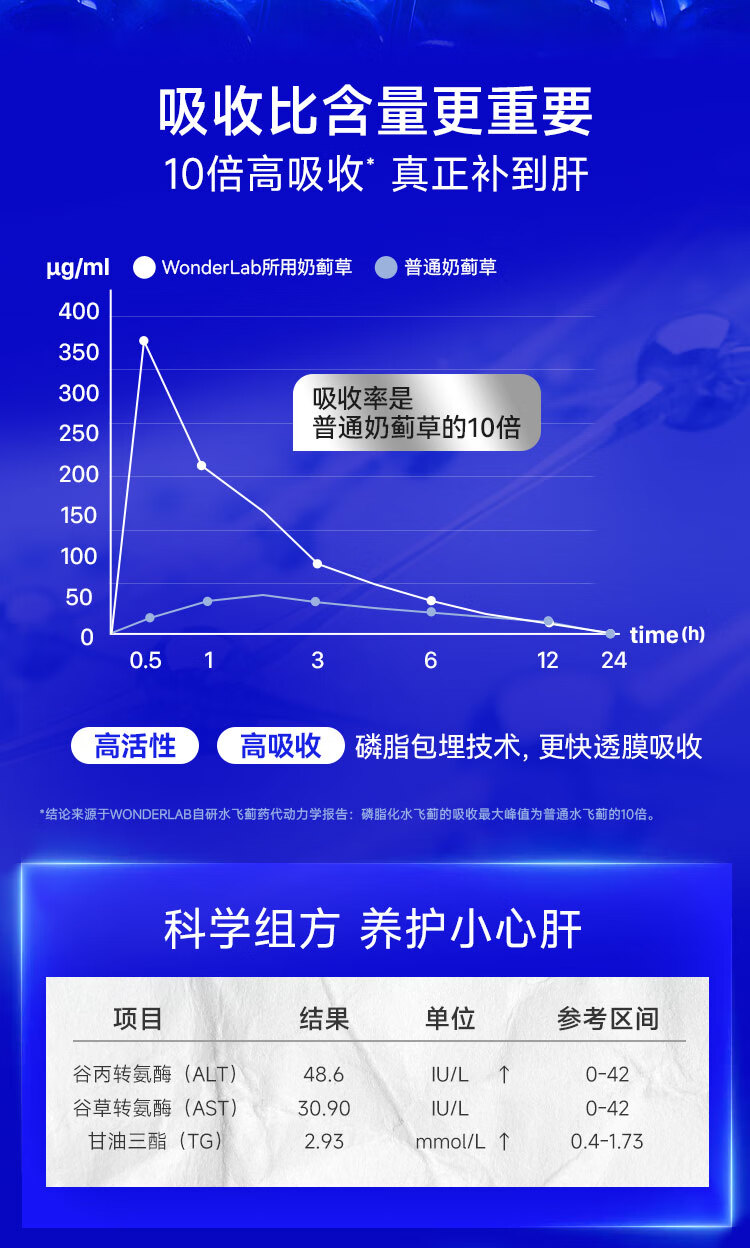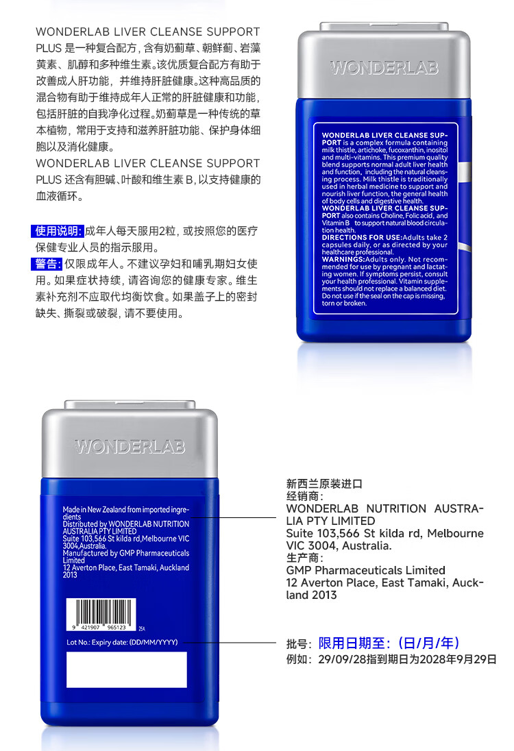 WONDERLAB奶蓟草净肝胶囊Plus120粒*1瓶进口水飞蓟朝鲜蓟护肝片熬夜应酬