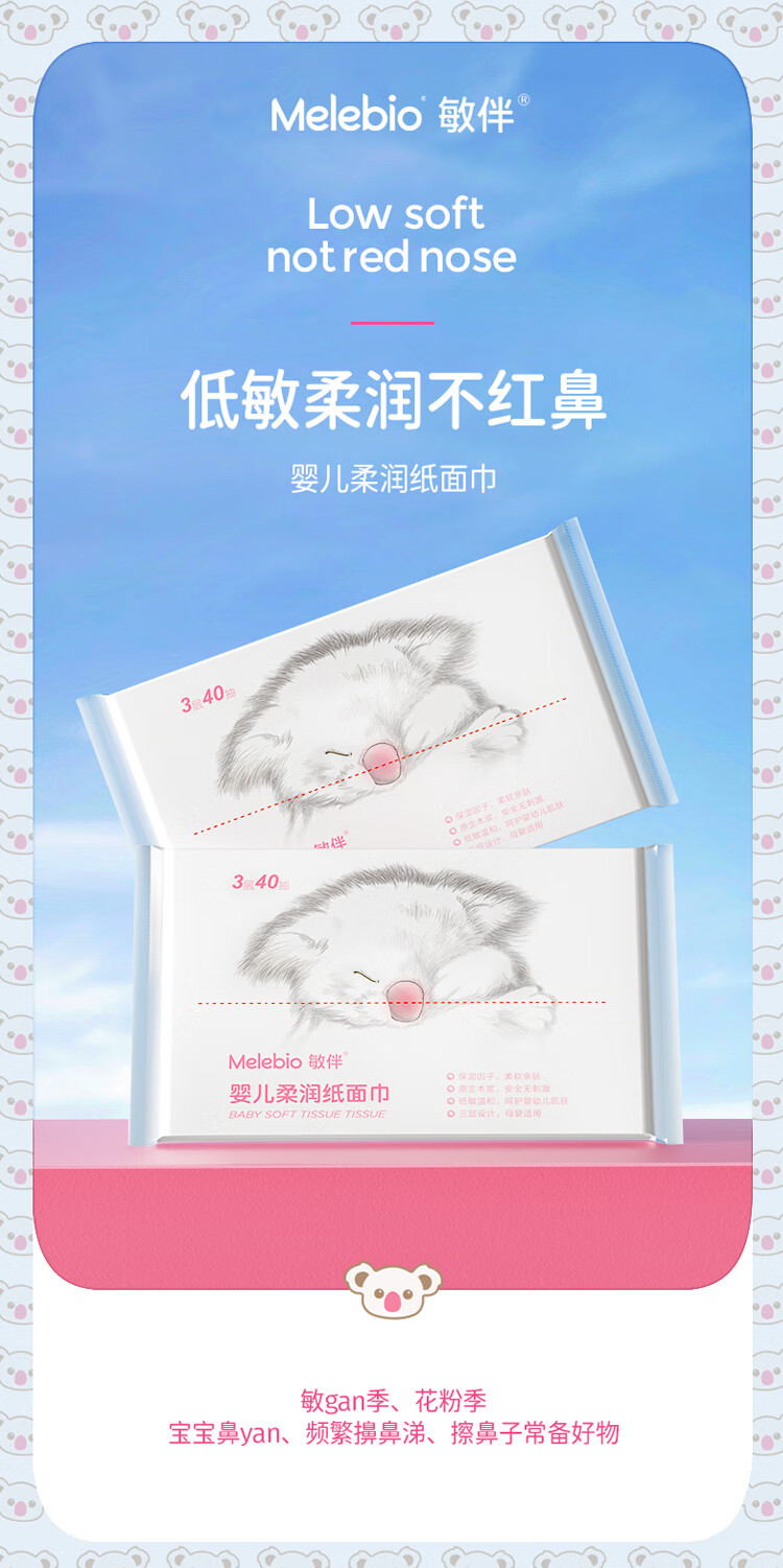 诺斯清自营敏伴抽纸低敏柔肤纸巾保湿面纸宝宝抽纸软抽纸巾40抽/包