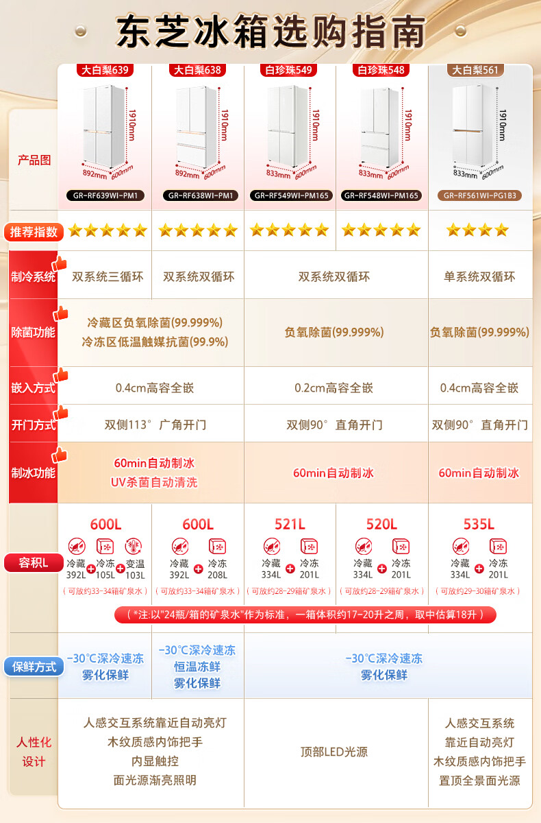 东芝(TOSHIBA)大白梨600L法式多门冰箱638双系统制冰嵌入超大容量家用变频【年度机皇】GR-RF638WI-PM1国家补贴