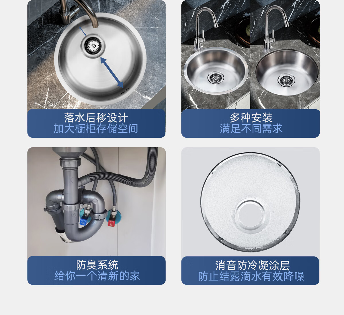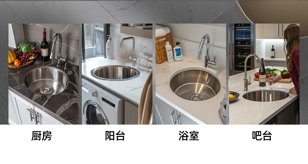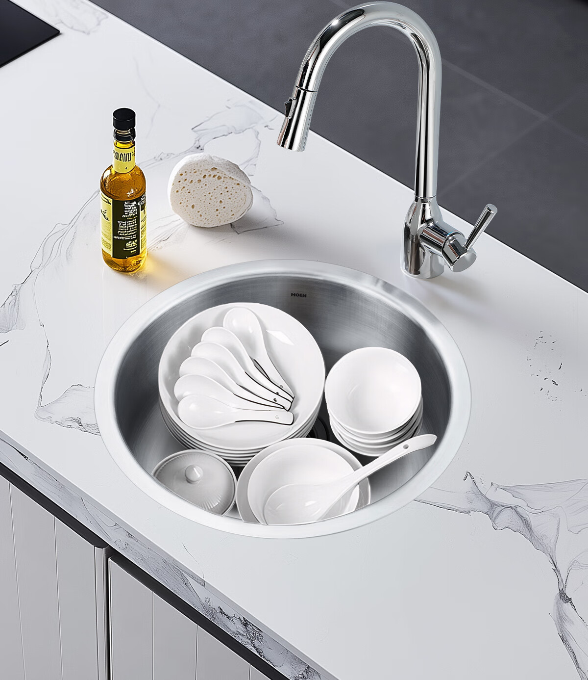 摩恩(MOEN)304不锈钢圆形水槽单槽套餐小户型阳台台下23607 435*165 不锈钢单圆槽(不含龙头)