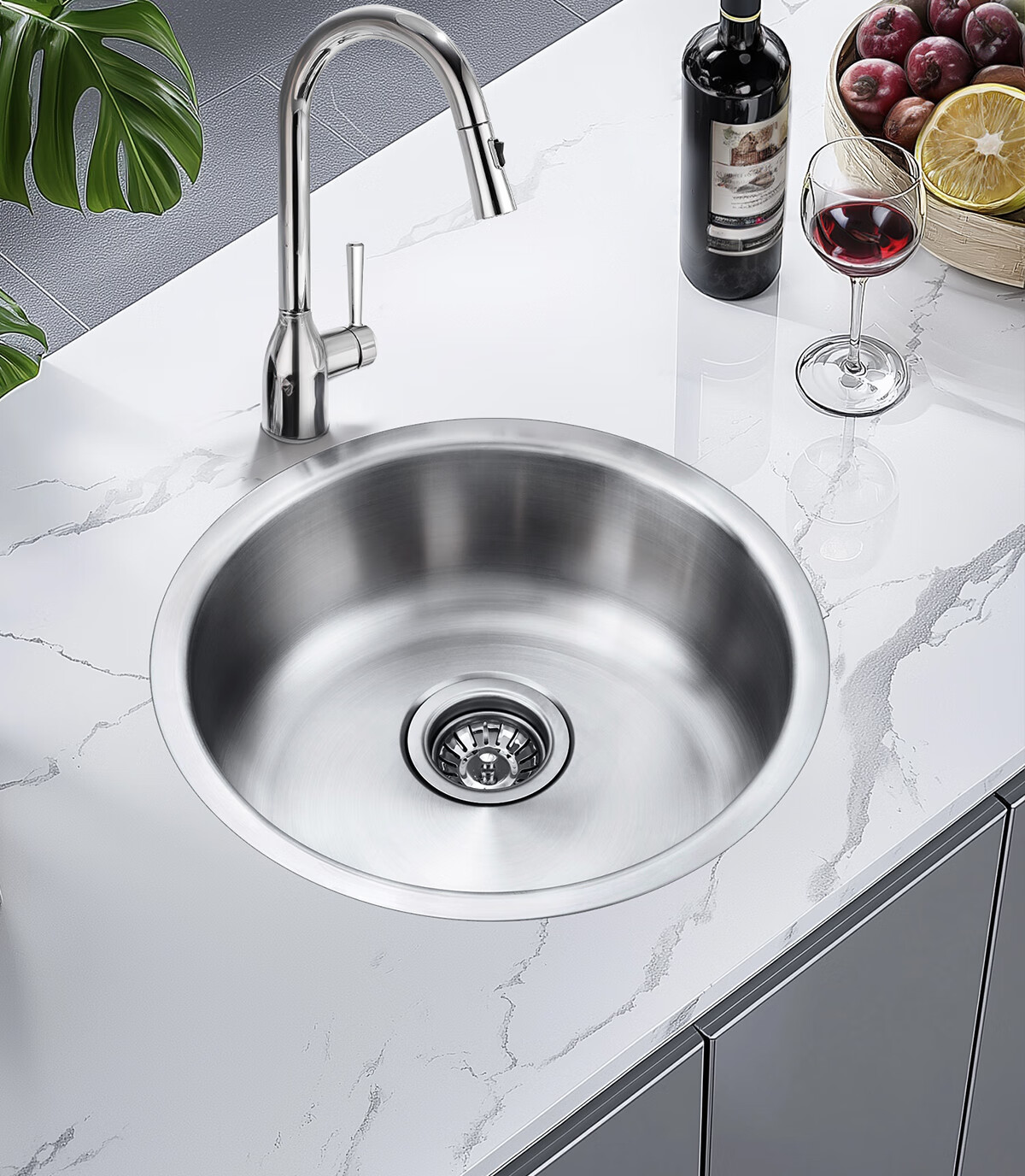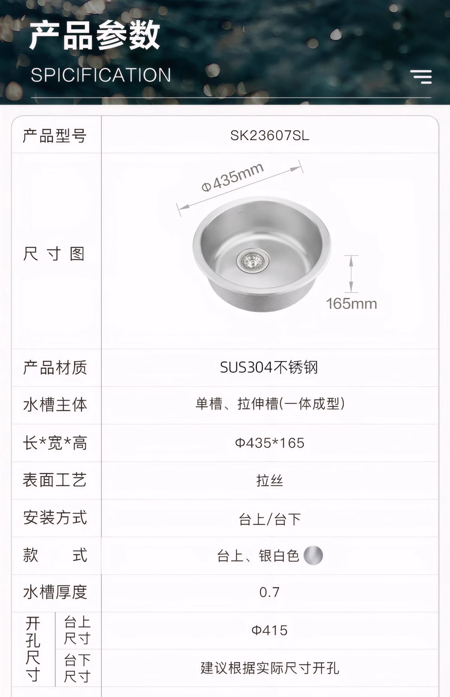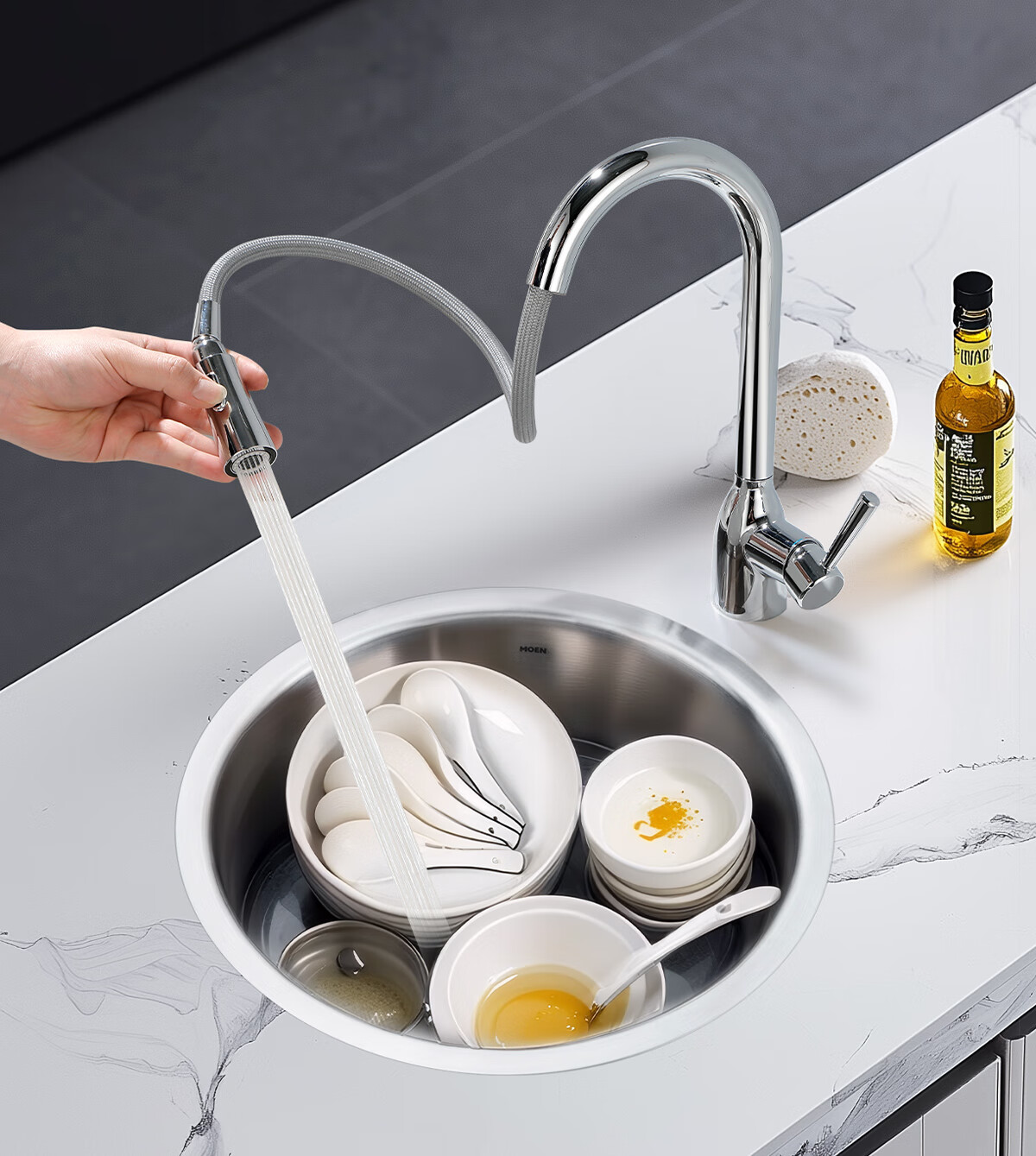 摩恩(MOEN)304不锈钢圆形水槽单槽套餐小户型阳台台下23607 435*165 不锈钢单圆槽(不含龙头)