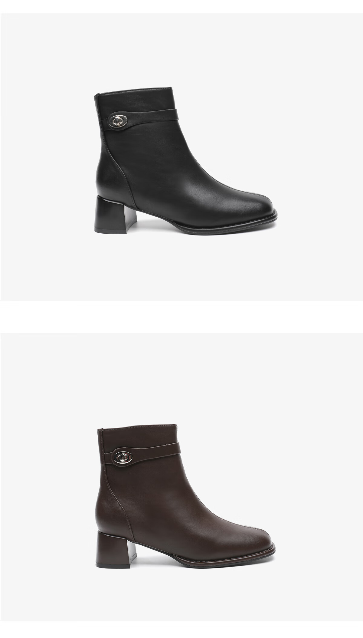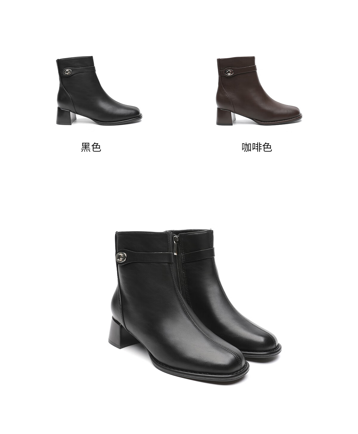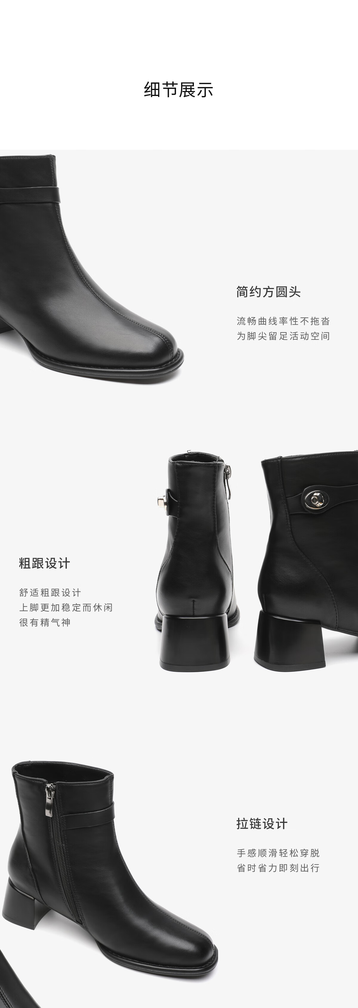 月芽儿2025年秋季季新款法式方头短靴女瘦瘦靴气质百搭靴子英伦风 绒里黑色01T 34