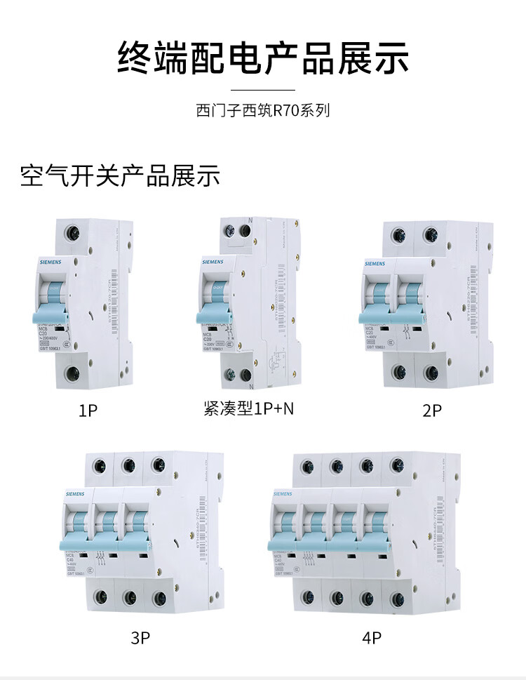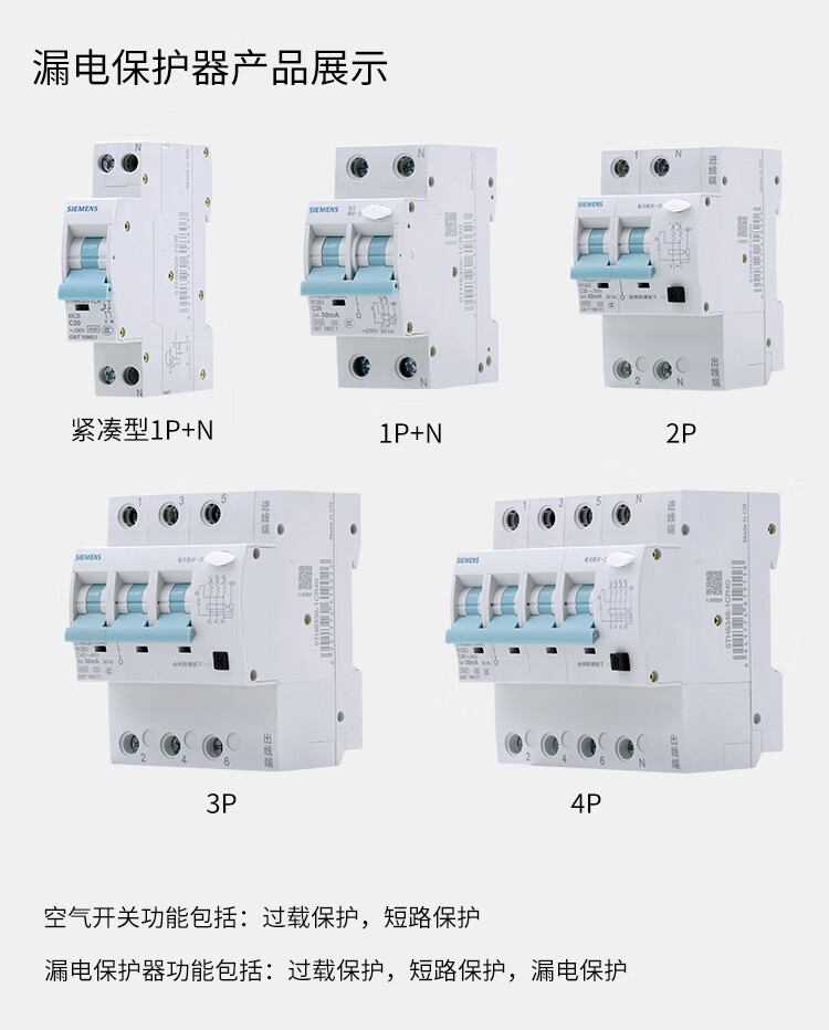 西门子(SIEMENS)新款西筑R70系列空气开关带漏电保护断路器家用安全开关漏保总控 1+N 漏电保护 紧凑型 16A