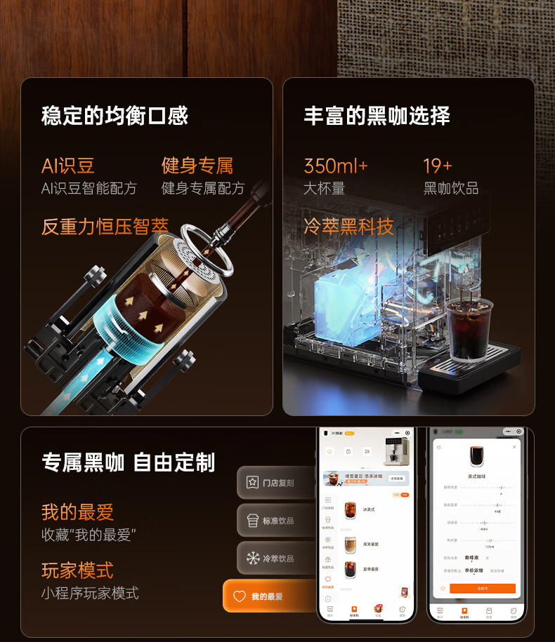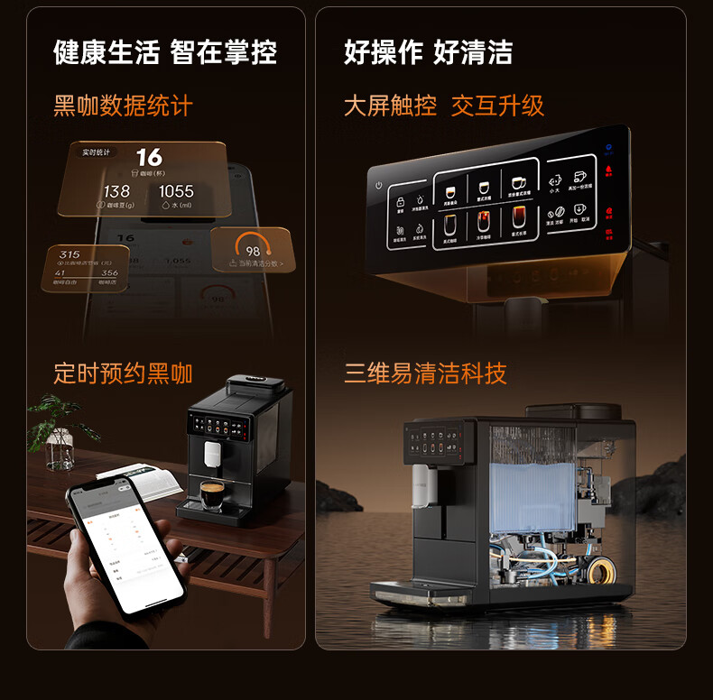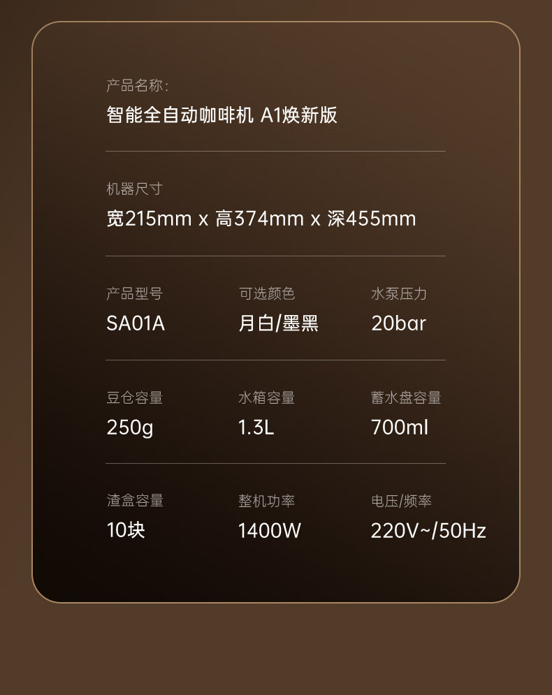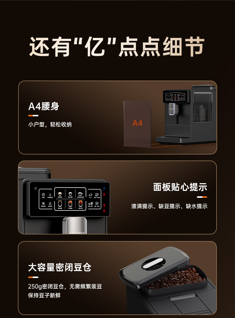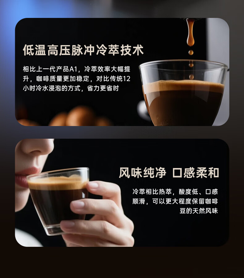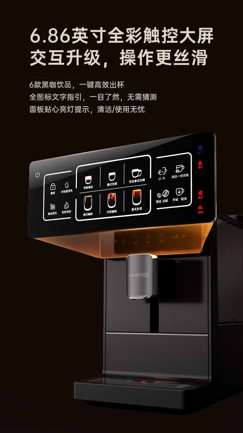 咖啡自由(KAxFREE)A1焕新全自动智能咖啡机研磨一体家用意式美式冷萃咖啡机 墨黑