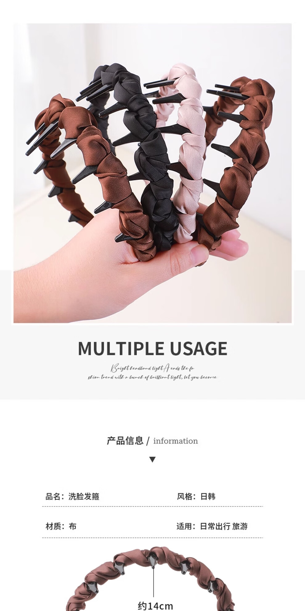 LVPASA高颅顶波浪发箍女2025新款带齿防滑洗脸不压发头箍显脸小发卡头饰 【深咖色】发箍