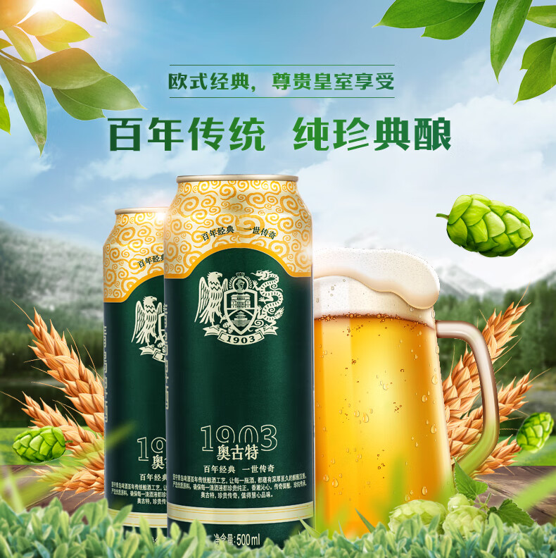 奥古特啤酒500ml*18听+ 480mL 6瓶 组合装