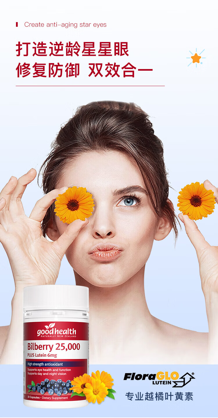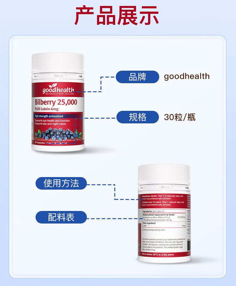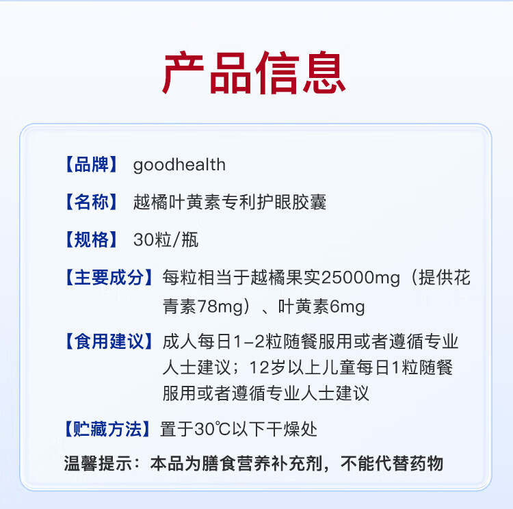goodhealth好健康 蓝莓叶黄素胶囊护眼片儿童成人青少年花青素眼疲劳眼部保健用品 30粒 蓝莓叶黄素胶囊30粒