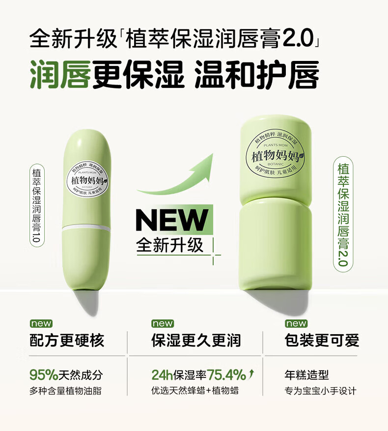植物妈妈唇膏儿童唇膏6-12岁女孩男孩润唇膏3-6岁纯天然保湿滋润防干裂 【全网热销10W+】儿童植萃唇膏3.5g*2丨赠皲裂膏