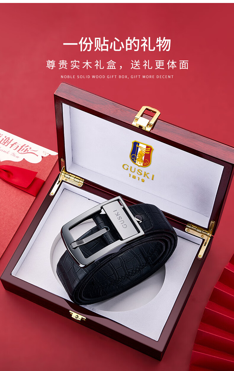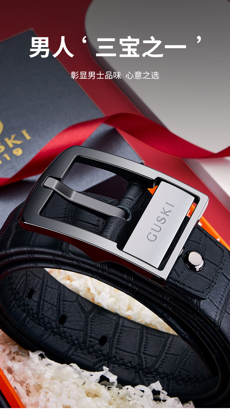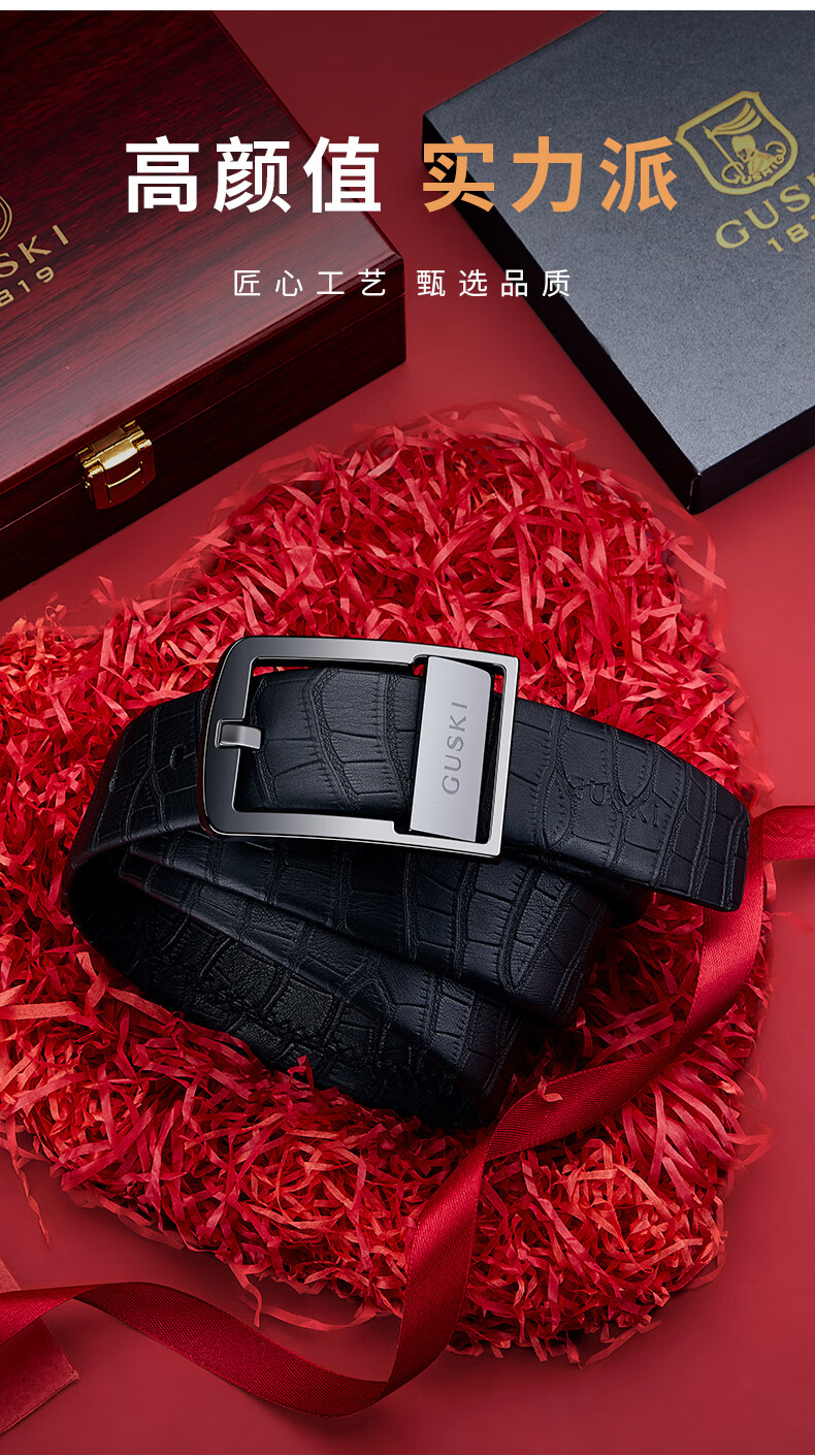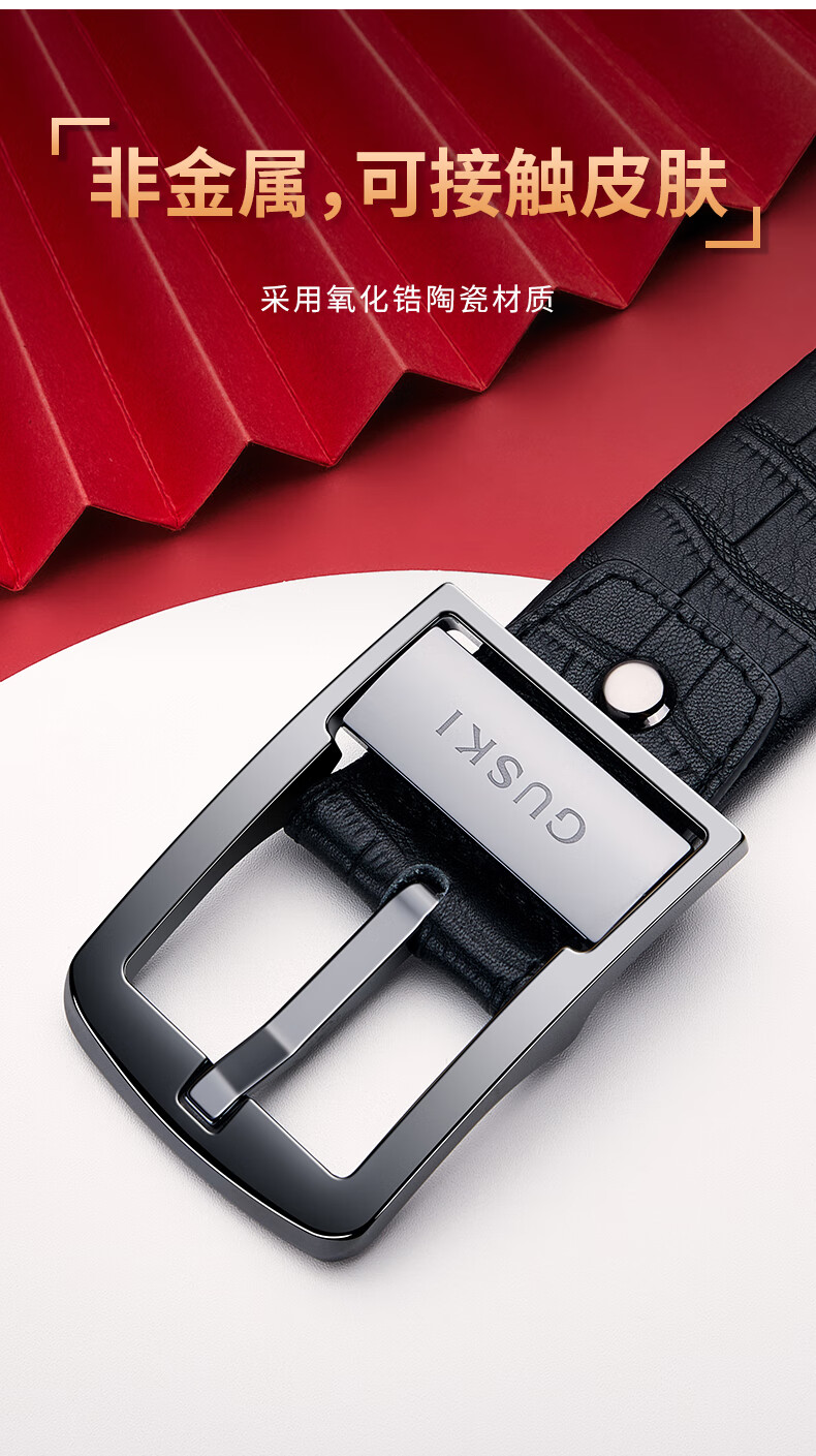 古士旗(GUSKI)品牌男士皮带男陶瓷针扣腰带真牛皮高端新年生日情人节礼物送男友 专柜礼盒/代写贺卡/头层牛皮 105cm -130cm/联系客服备注长度
