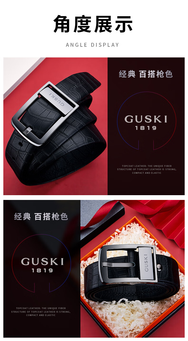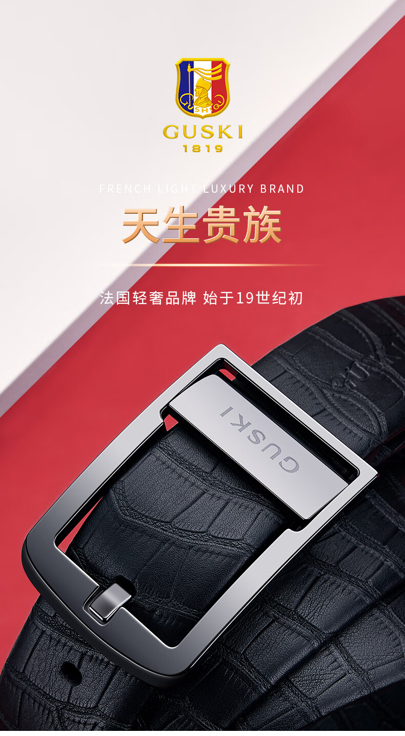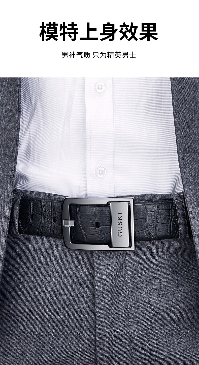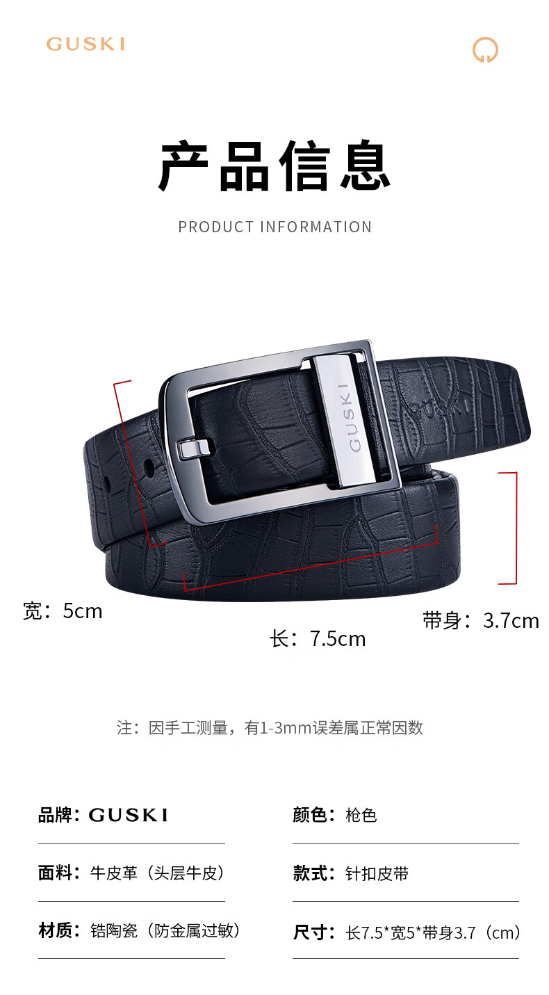 古士旗(GUSKI)品牌男士皮带男陶瓷针扣腰带真牛皮高端新年生日情人节礼物送男友 专柜礼盒/代写贺卡/头层牛皮 105cm -130cm/联系客服备注长度