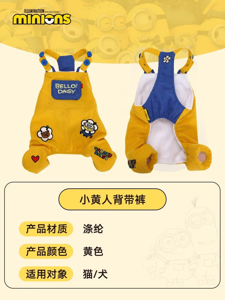 华元宠具(hoopet)小黄人联名背带裤宠物秋冬天款泰迪比熊小型犬小狗狗冬季衣服保暖