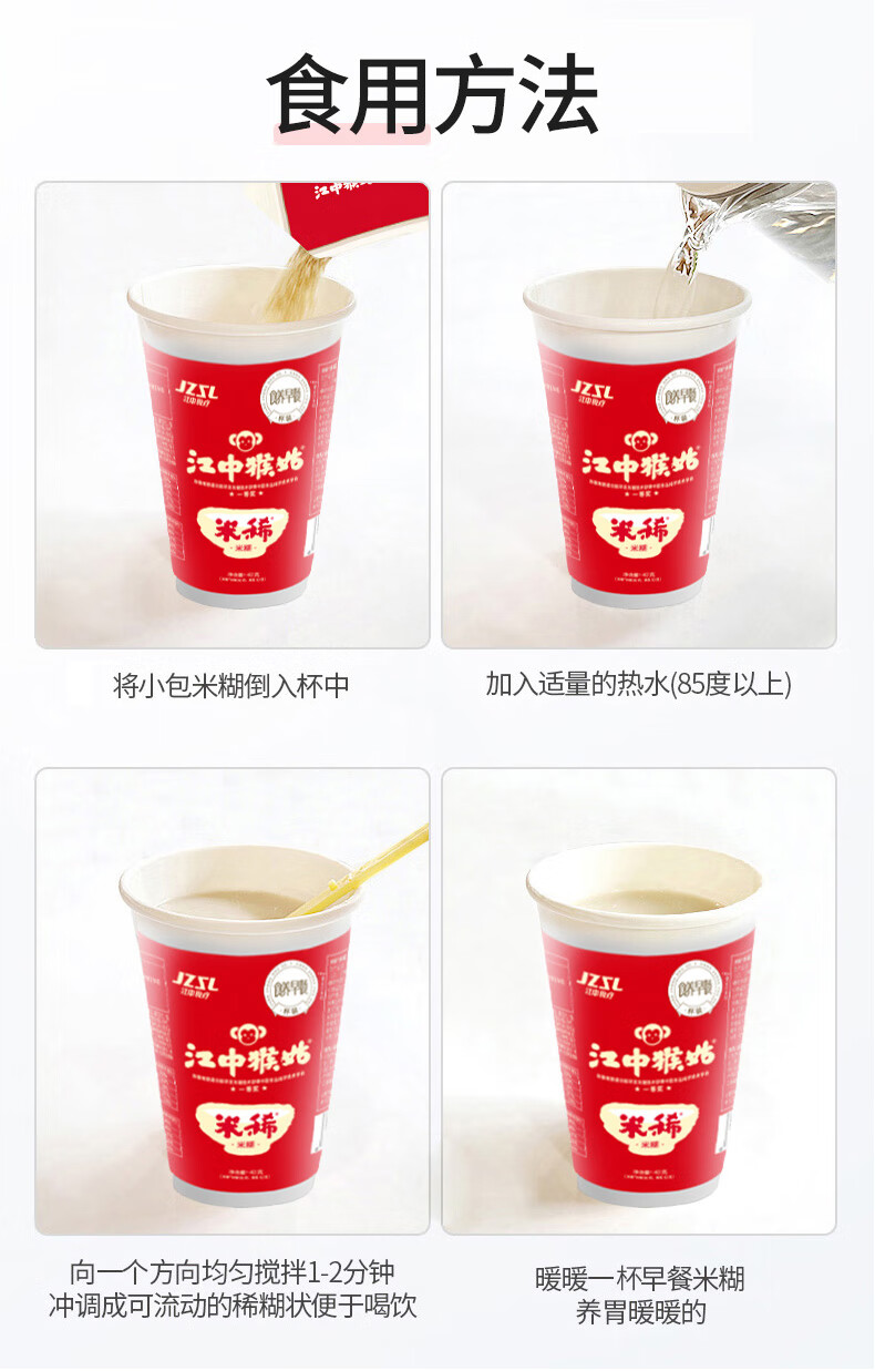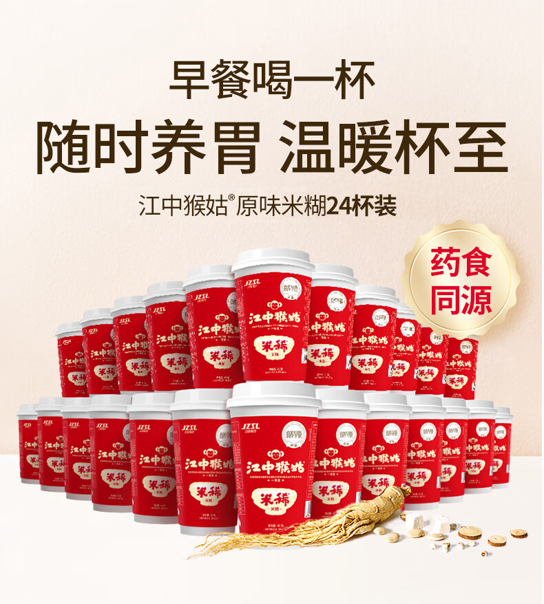 江中猴姑米稀养胃猴头菇米糊杯装便携免洗办公室早晚营养代餐礼盒独立包装 含炼乳-单杯35g丨24杯原味米糊