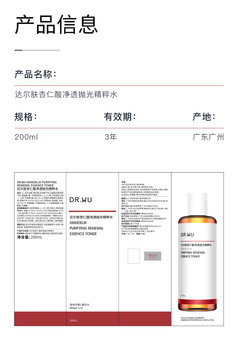 达尔肤(DR.WU)杏仁酸净透抛光精粹爽肤水去角质提亮控油保湿200ml*3新年礼物