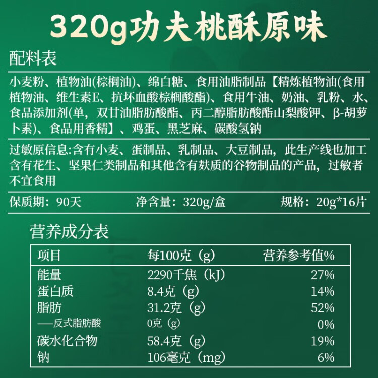 泸溪河原味经典功夫桃酥320g 春节日礼品面包糕点心礼盒休闲零食
