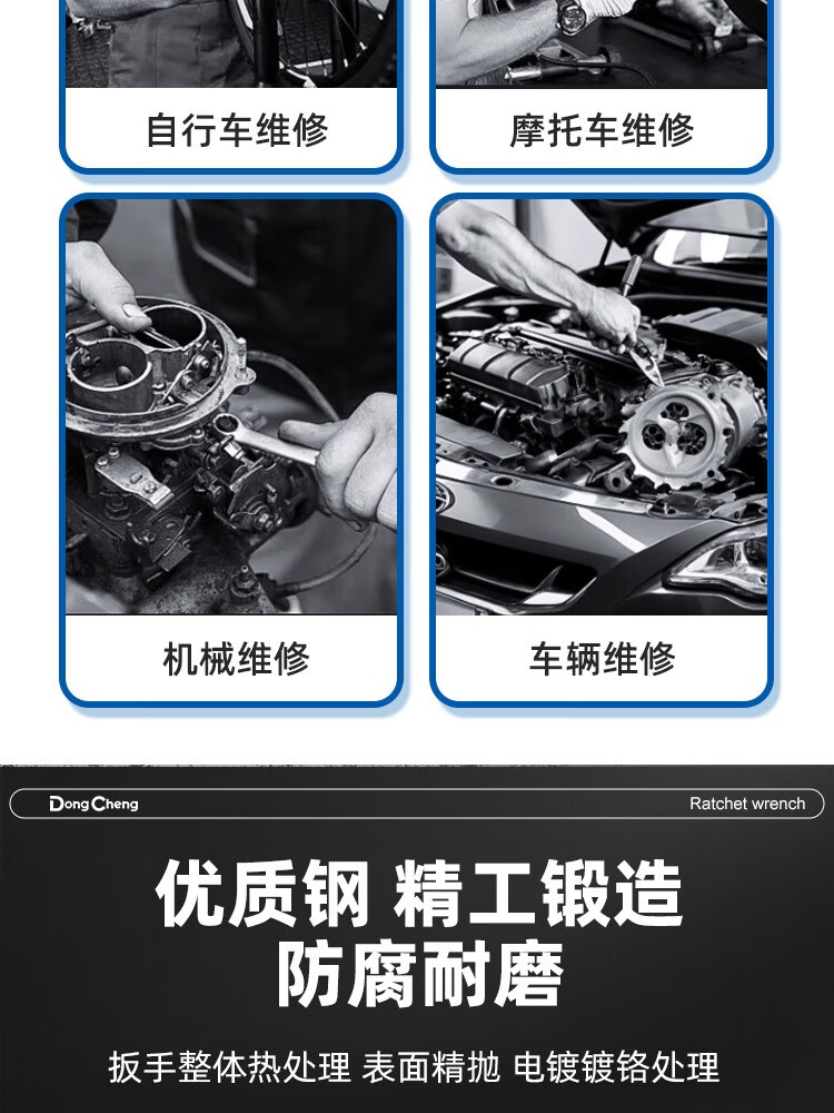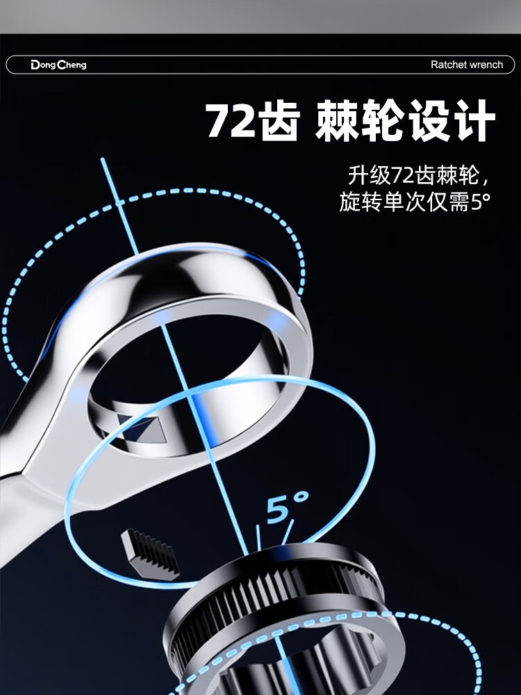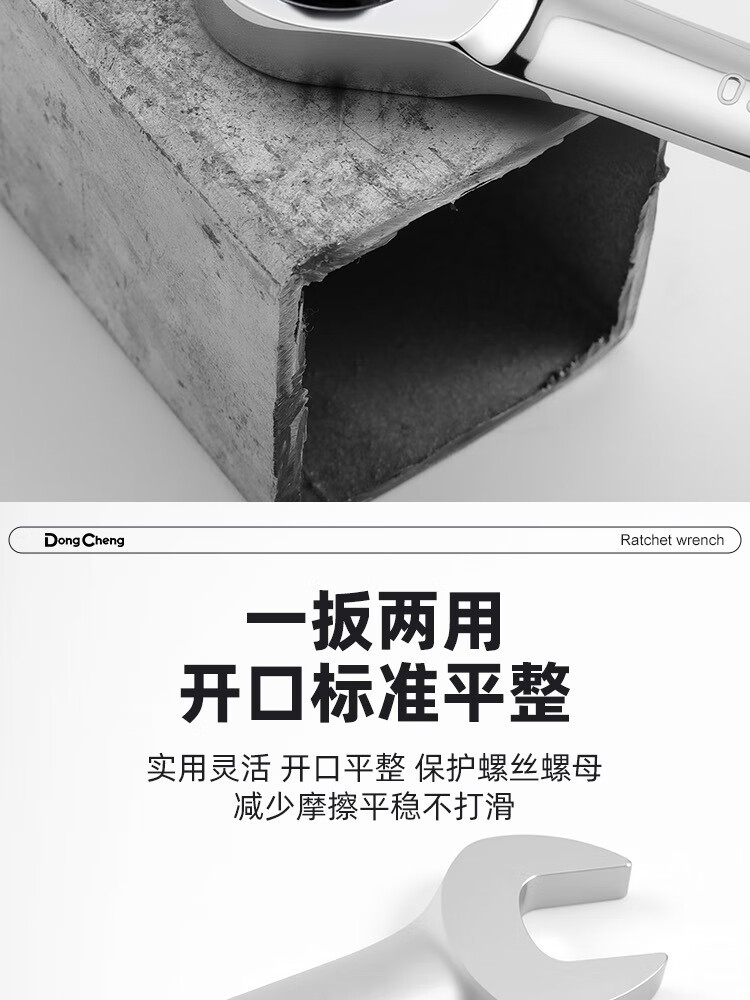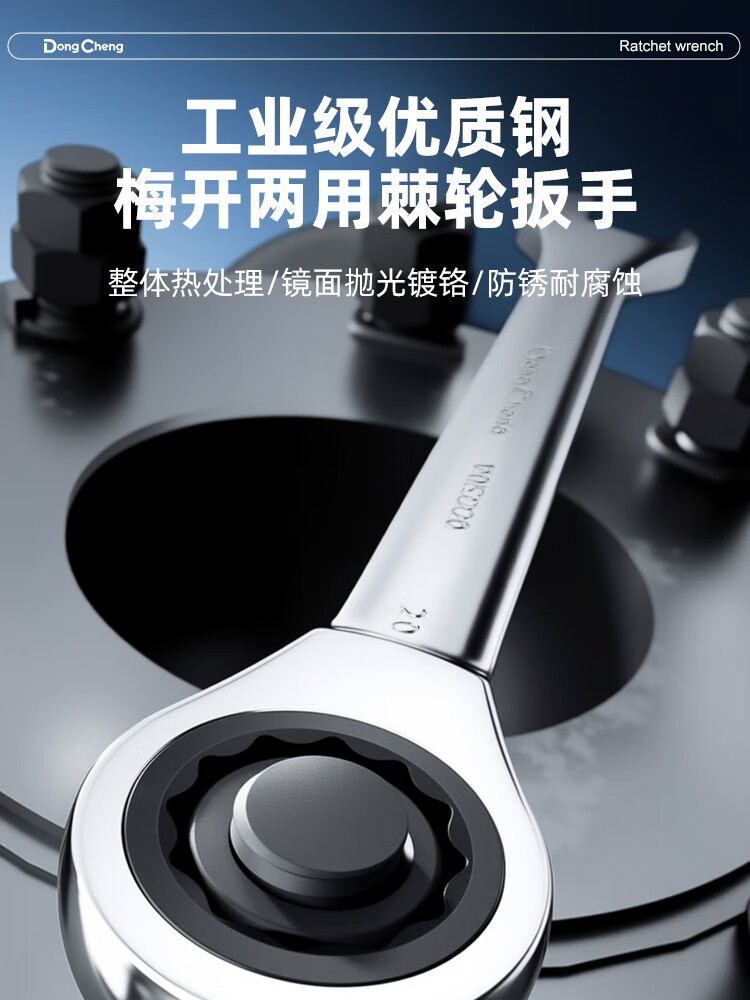 东成 镜面棘轮两用快扳省力快扳快速扳手扳子多功能家用维修棘轮两用 8mm镜面棘轮两用快扳D052208