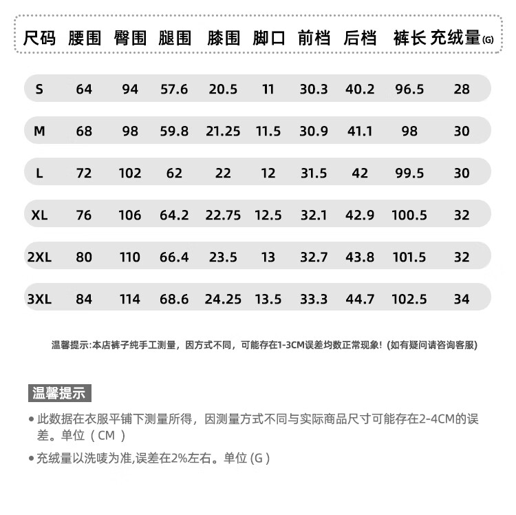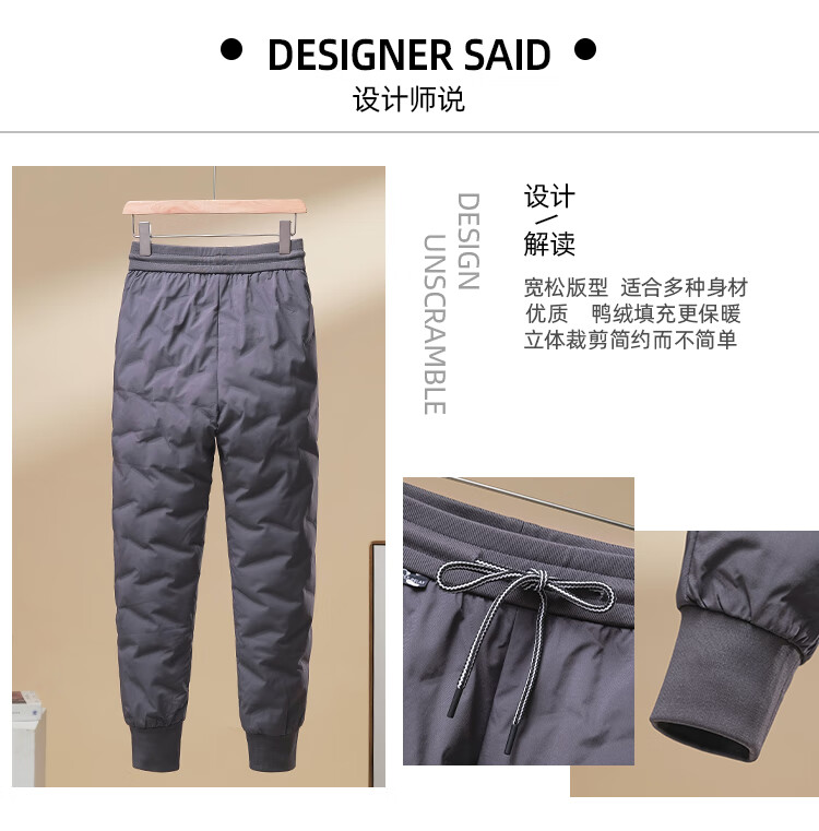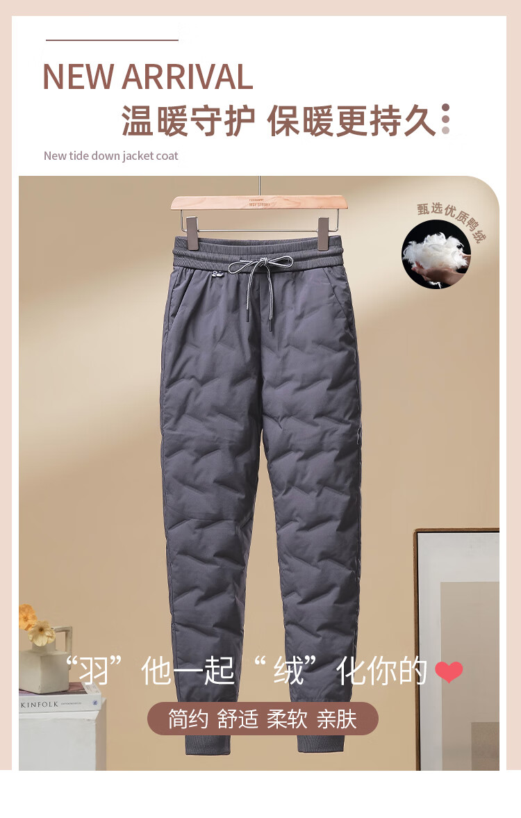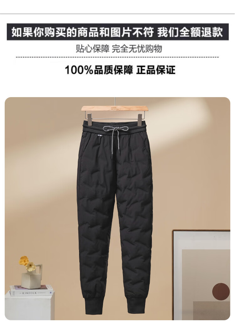 雪中飞羽绒裤男女内穿内胆秋冬季2025新款女裤加厚保暖裤冬季棉裤701 黑色 S 80-95斤