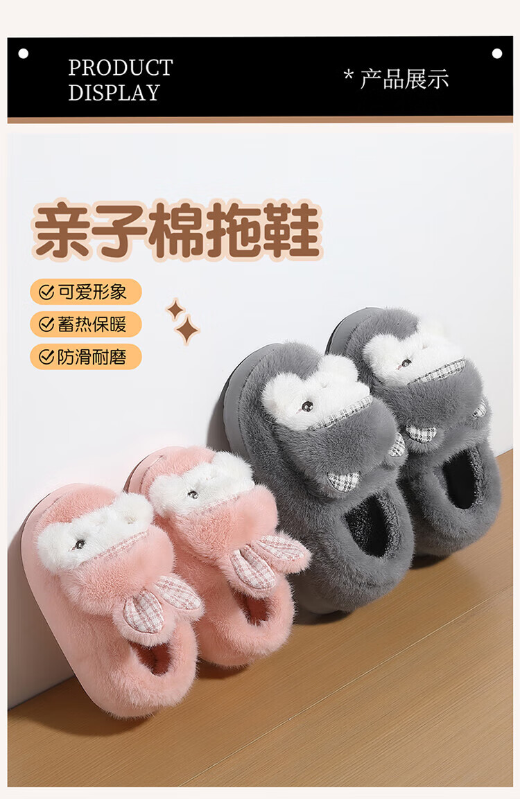 FZT棉拖鞋女童冬季2025新款卡皮巴拉冬季室内家居保暖亲子加绒棉鞋男 沙漠灰 28 -29正码(内长175mm)