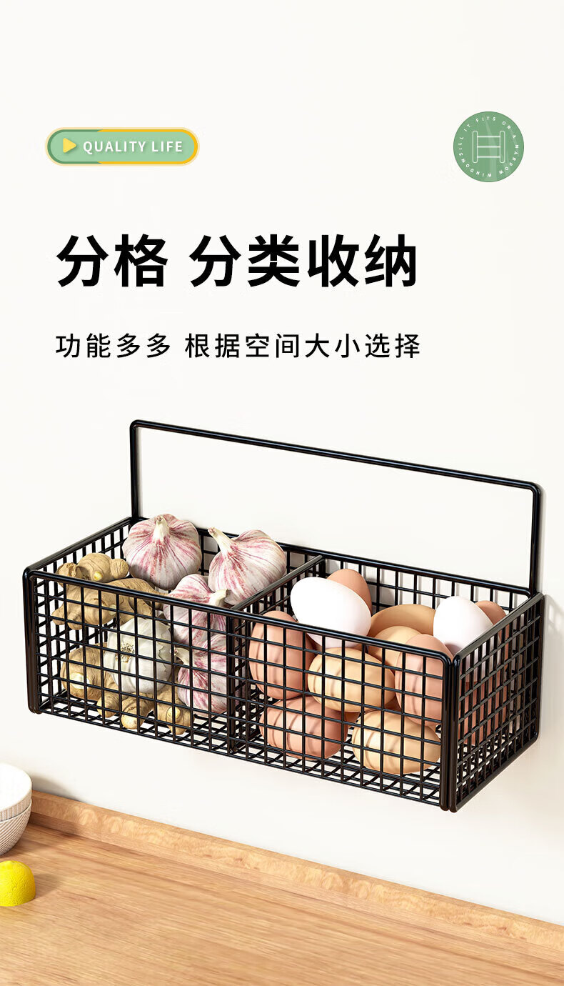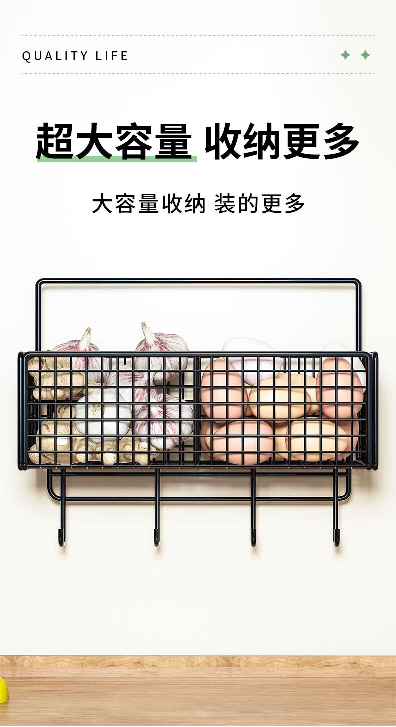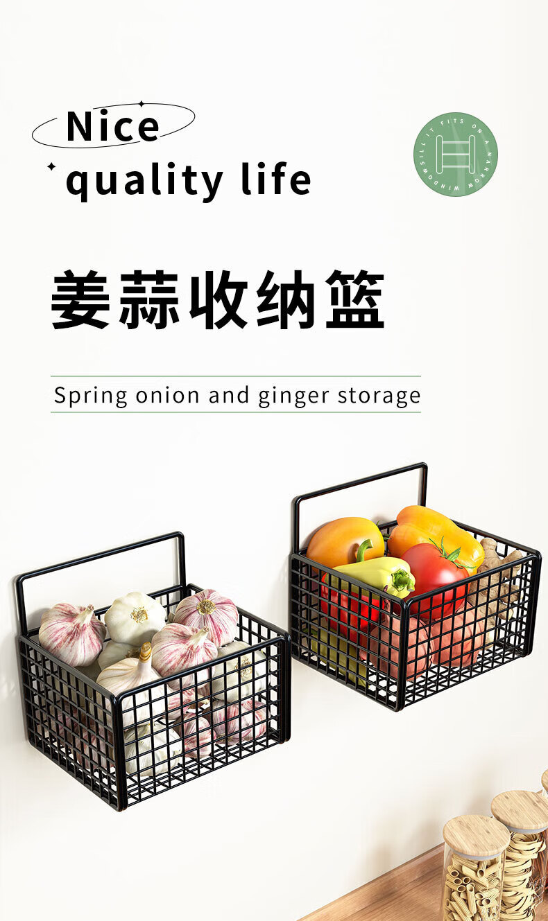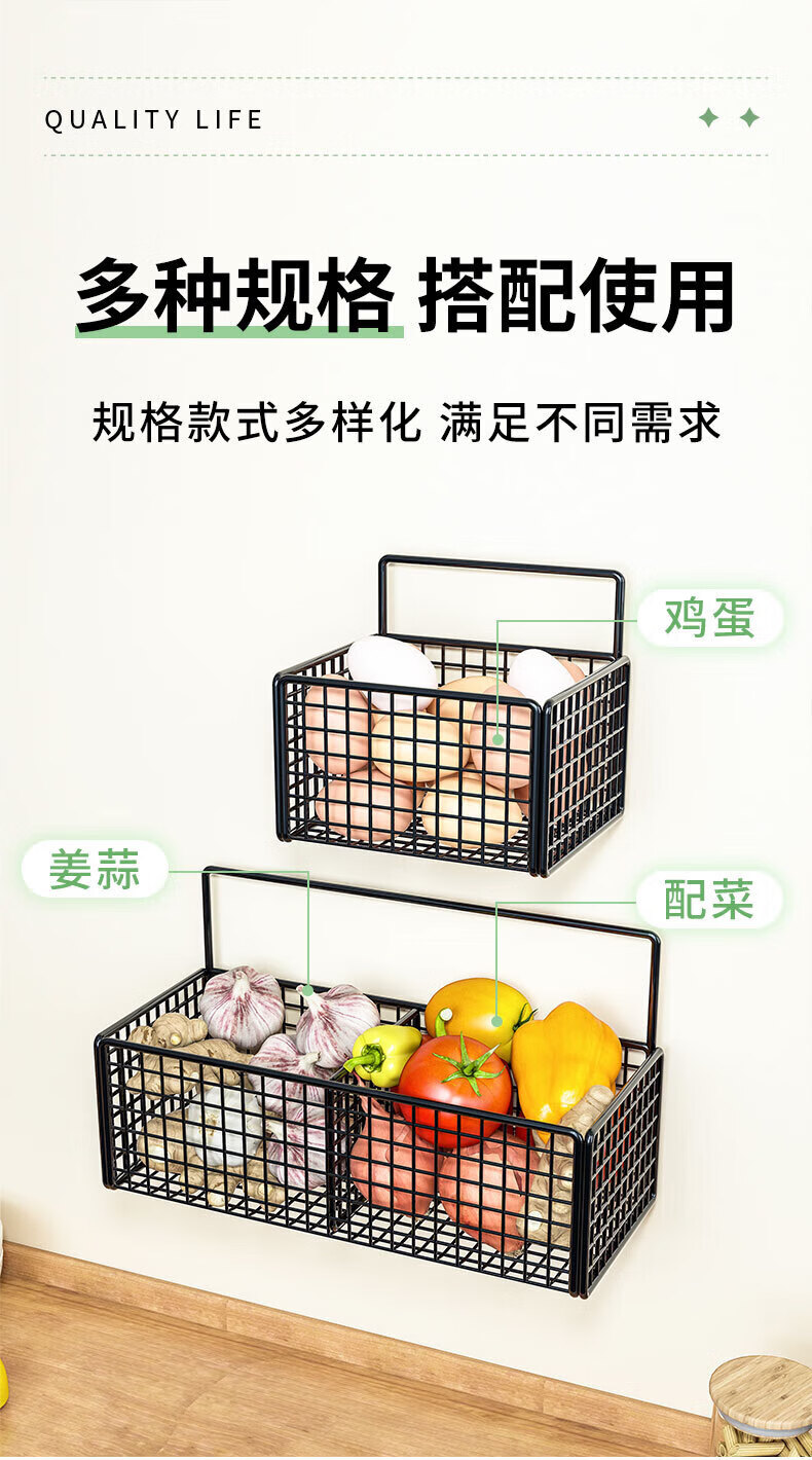 馨婺家厨房置物架葱姜蒜收纳筐菜篮子生姜大蒜挂篮墙挂式调料盒壁挂神器 黑色-单格小号【常规款】