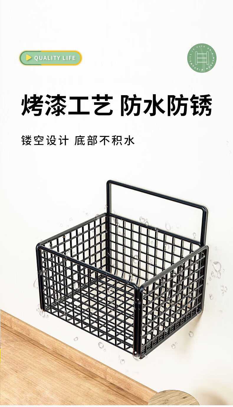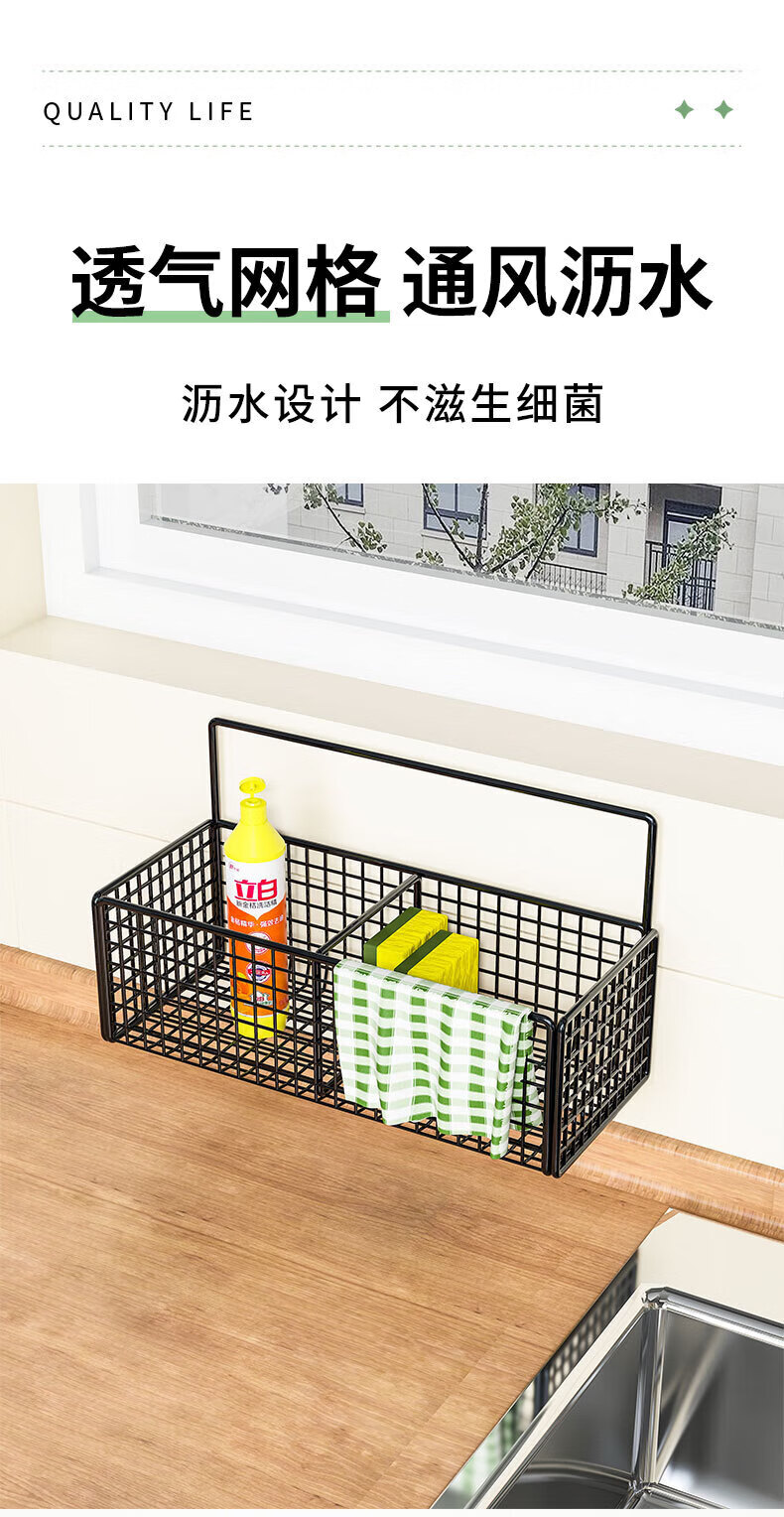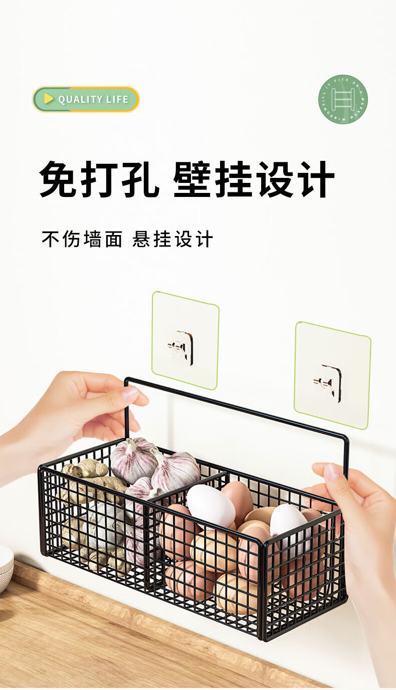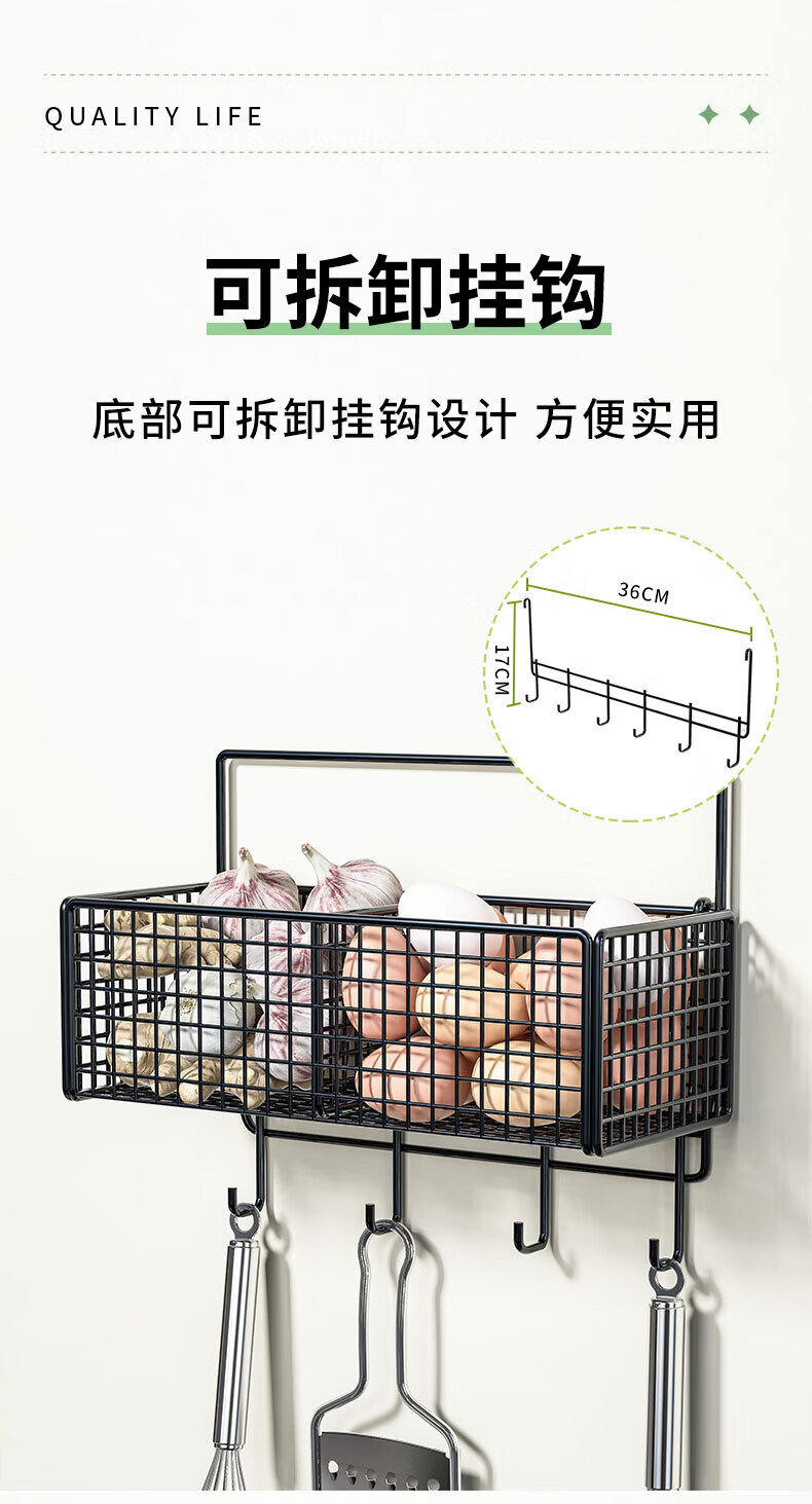 馨婺家厨房置物架葱姜蒜收纳筐菜篮子生姜大蒜挂篮墙挂式调料盒壁挂神器 黑色-单格小号【常规款】