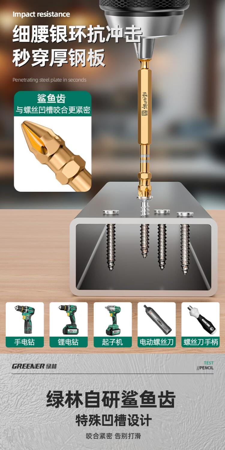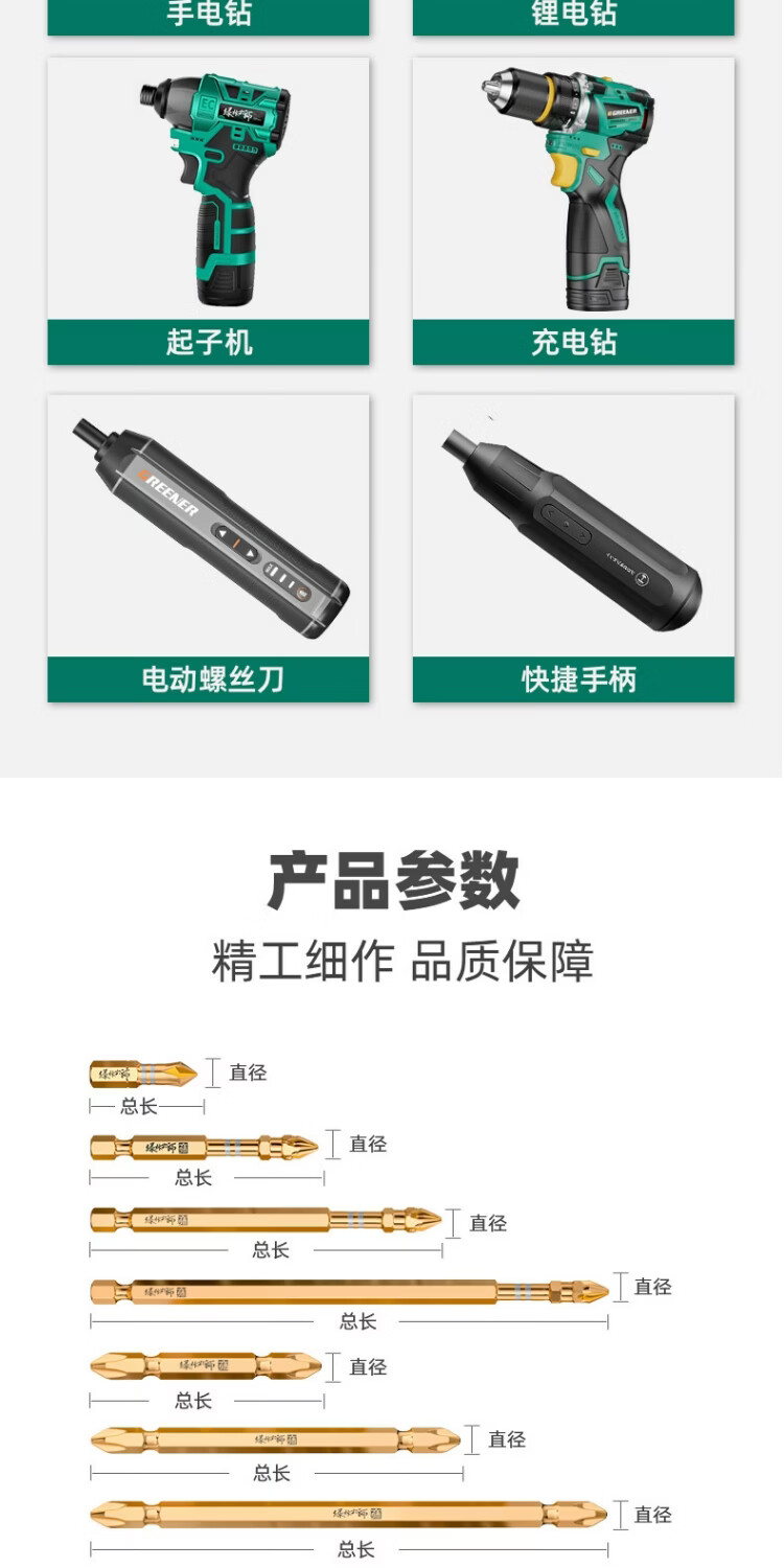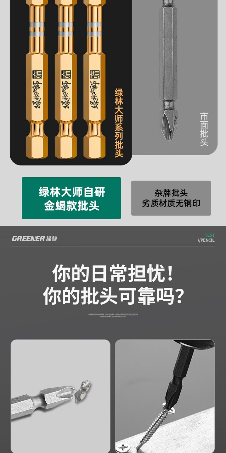 绿林大师强磁十字批头高硬度电动螺丝刀手电钻起子机加长披头套装 1支25mm【S2合金钢】鲨鱼齿