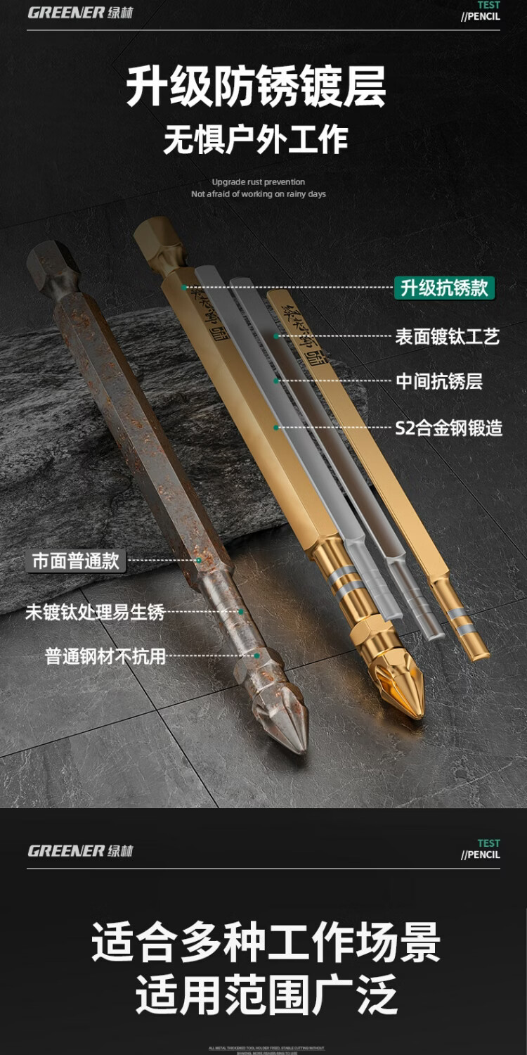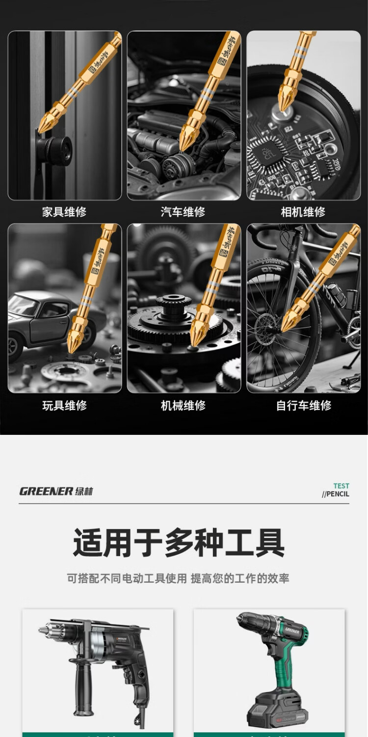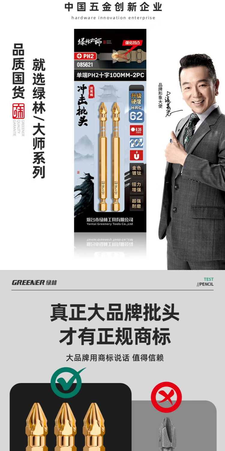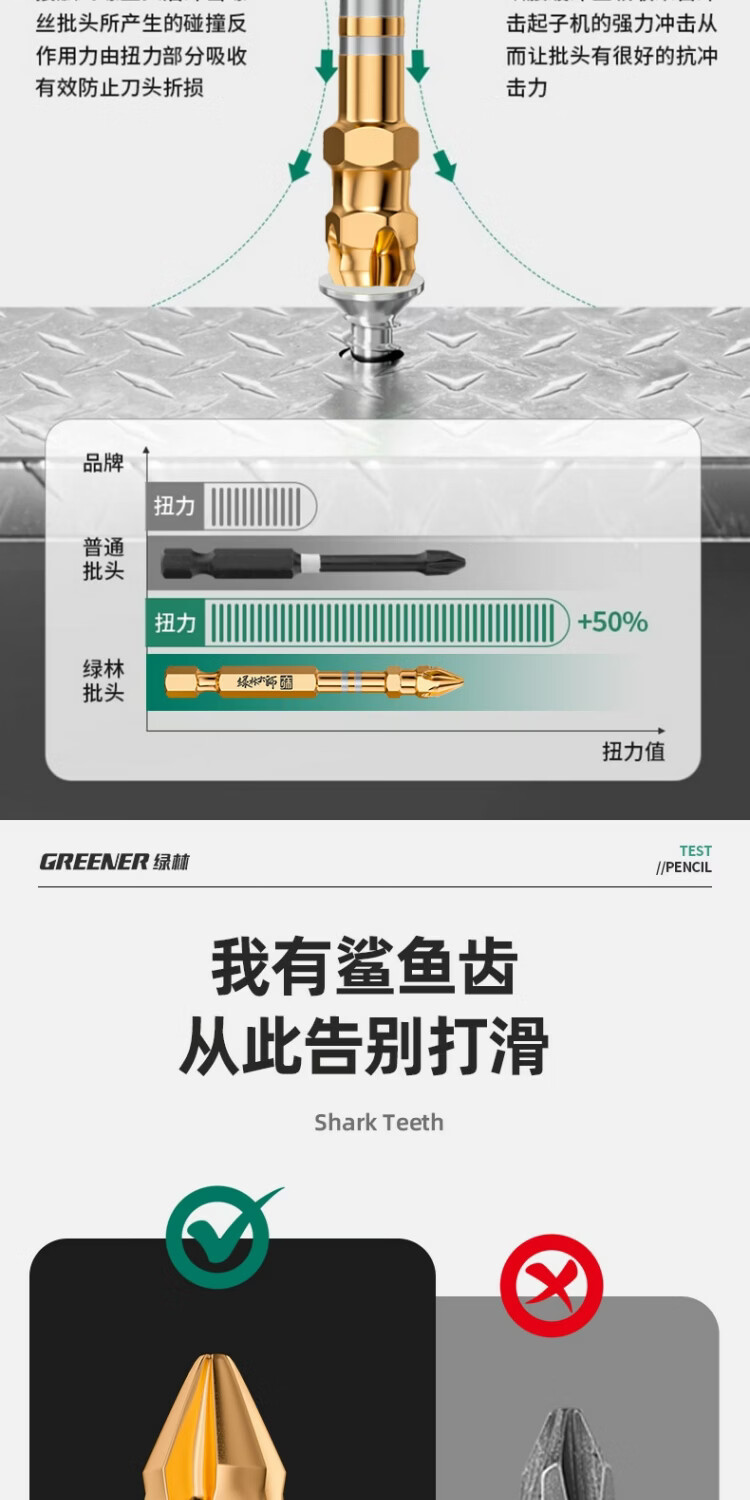 绿林大师强磁十字批头高硬度电动螺丝刀手电钻起子机加长披头套装 1支25mm【S2合金钢】鲨鱼齿