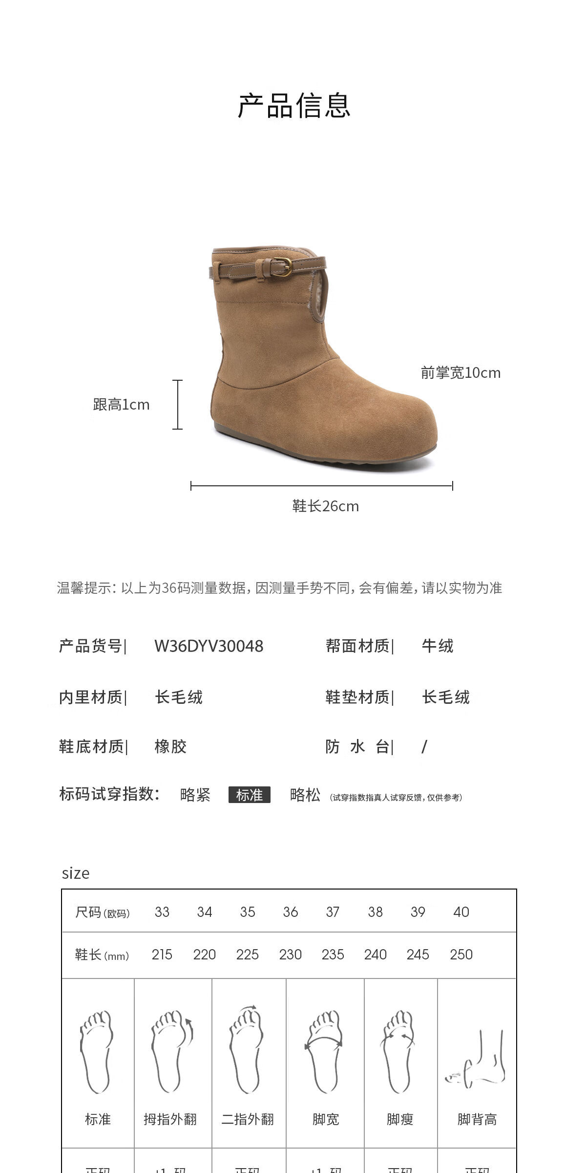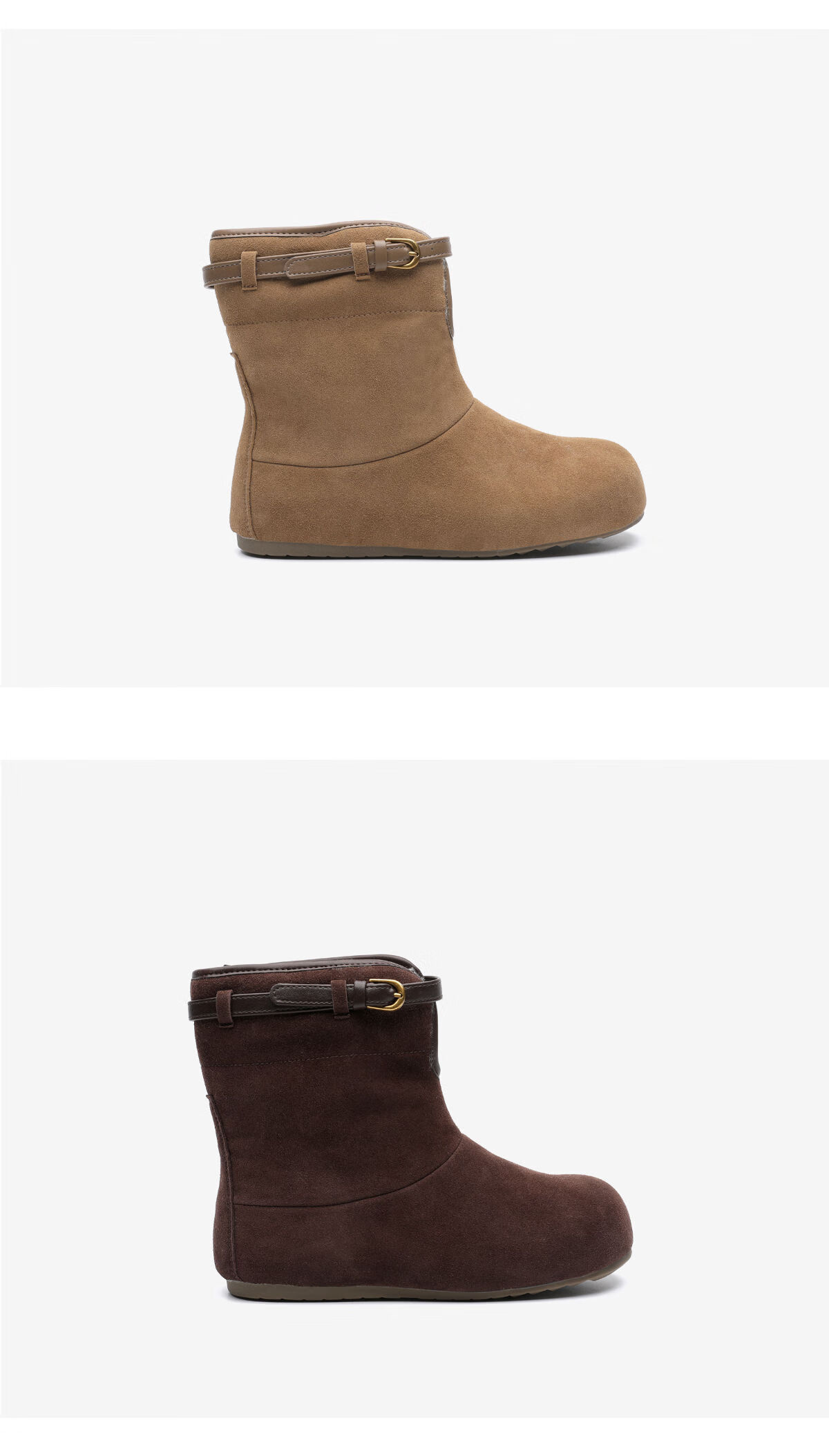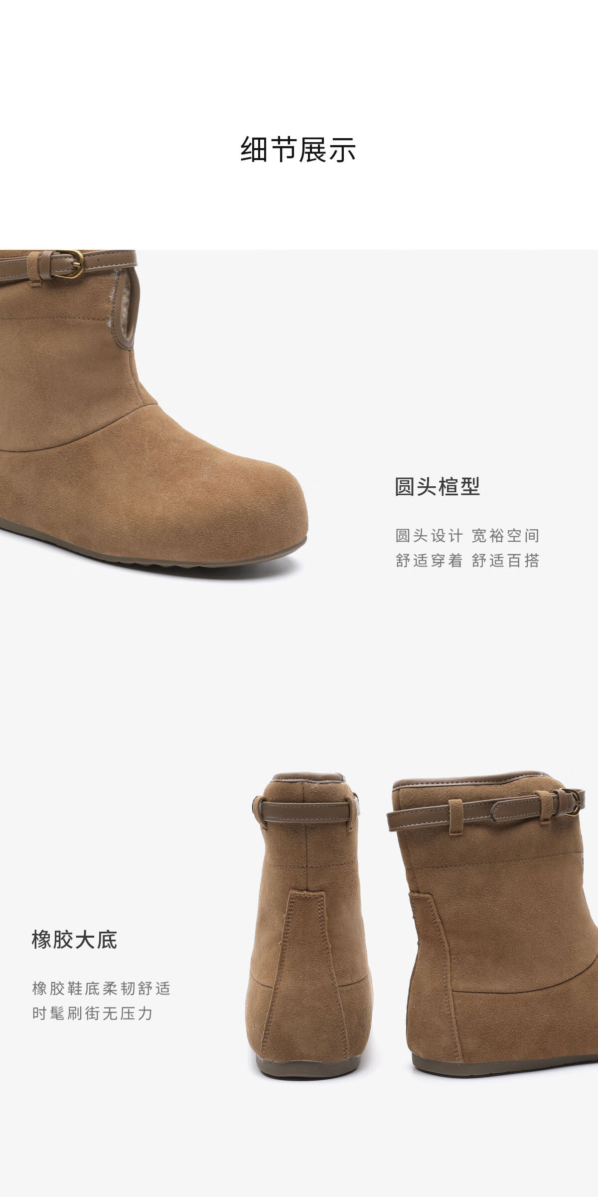 月芽儿2025冬季新款复古雪地靴短筒靴女皮带扣瘦瘦靴百搭短靴 绒里棕色03T 34