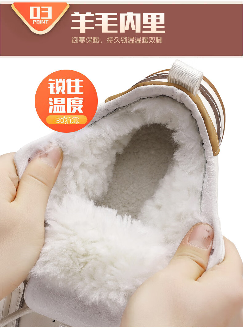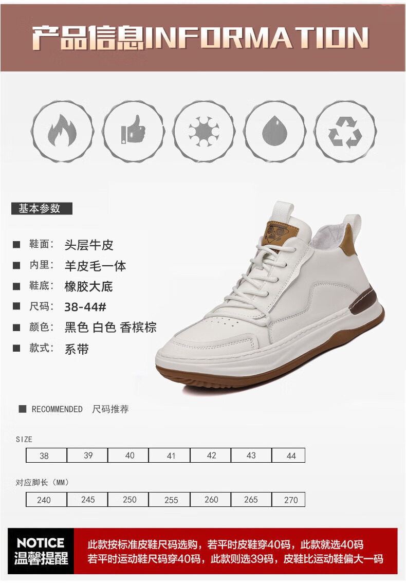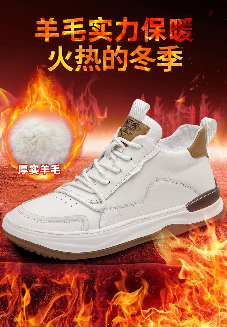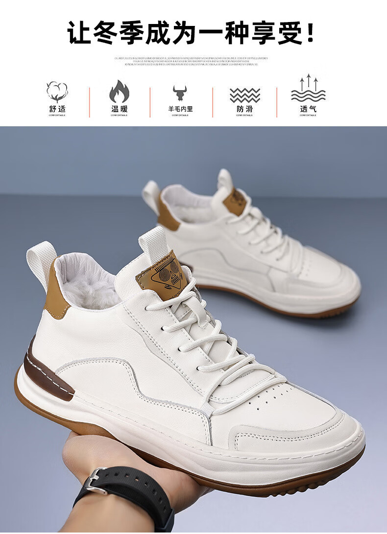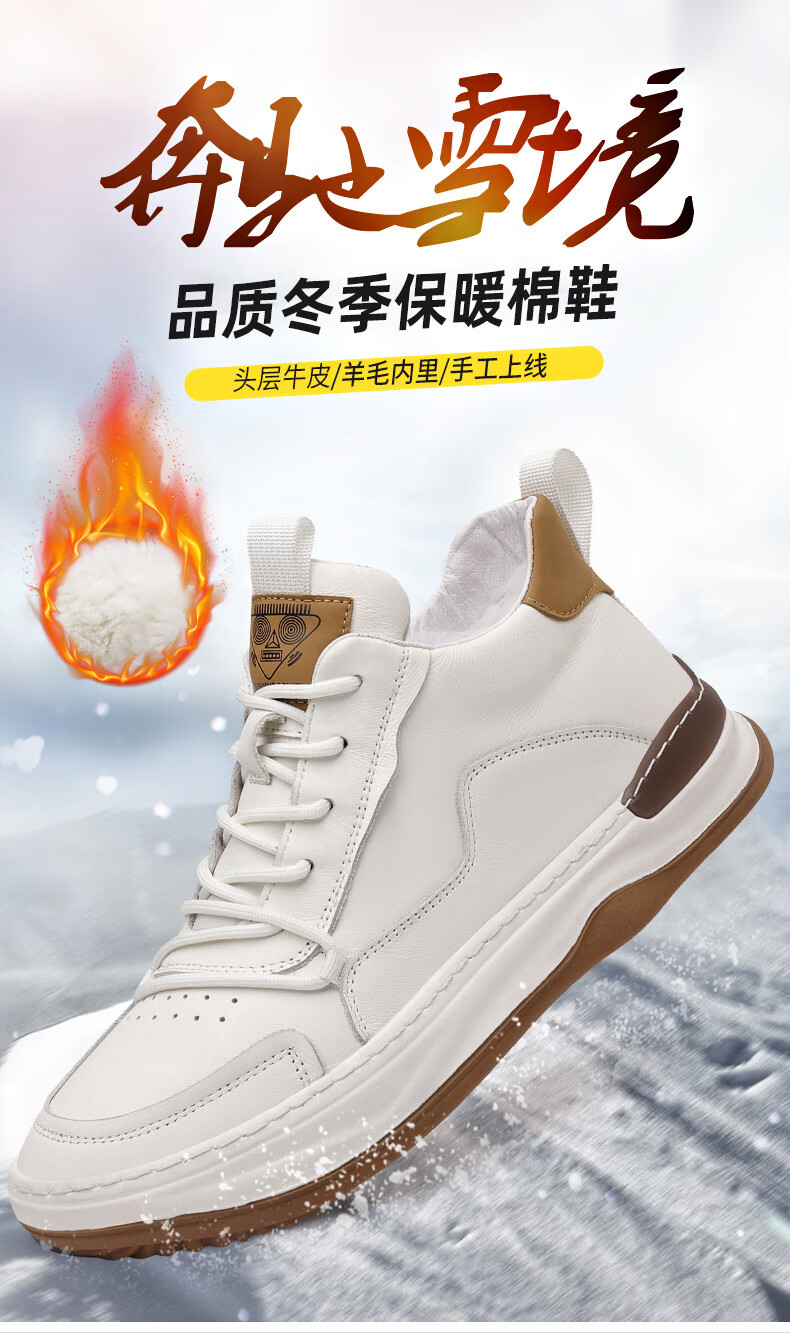 稻草人(MEXICAN)头层牛皮冬季男士棉鞋真皮羊毛皮毛一体保暖休闲男款潮鞋加绒 白色 38 38标准皮鞋码