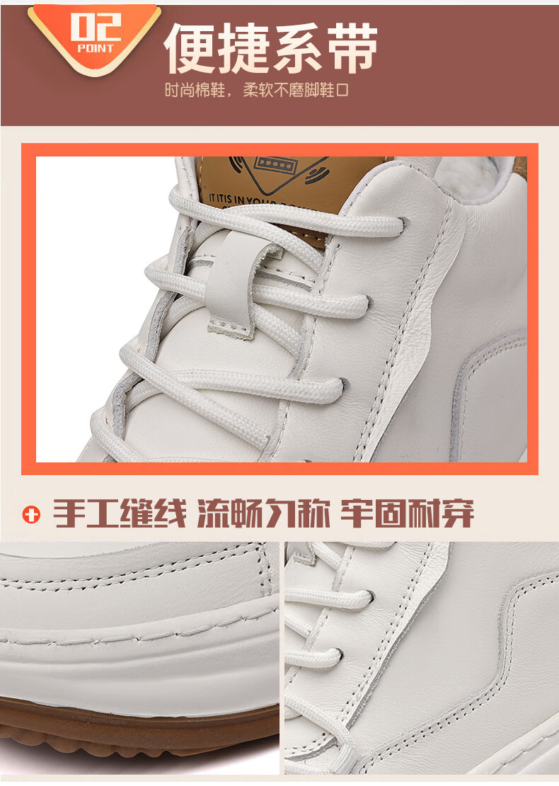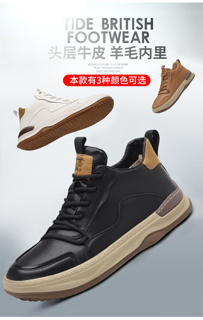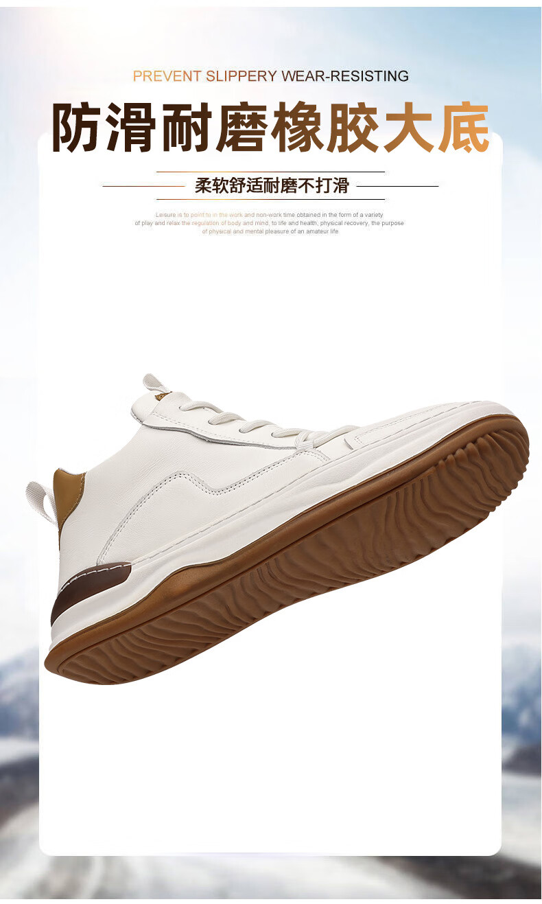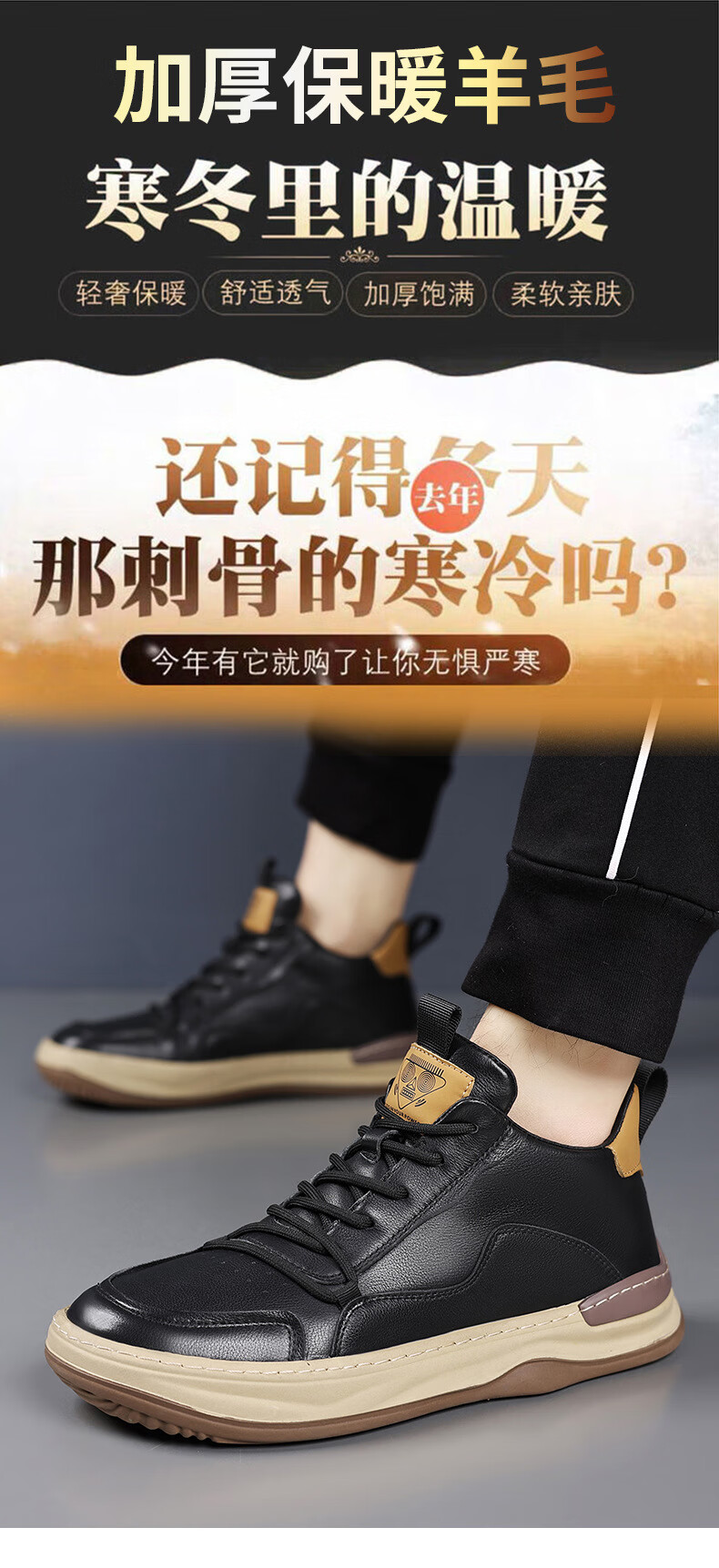 稻草人(MEXICAN)头层牛皮冬季男士棉鞋真皮羊毛皮毛一体保暖休闲男款潮鞋加绒 白色 38 38标准皮鞋码
