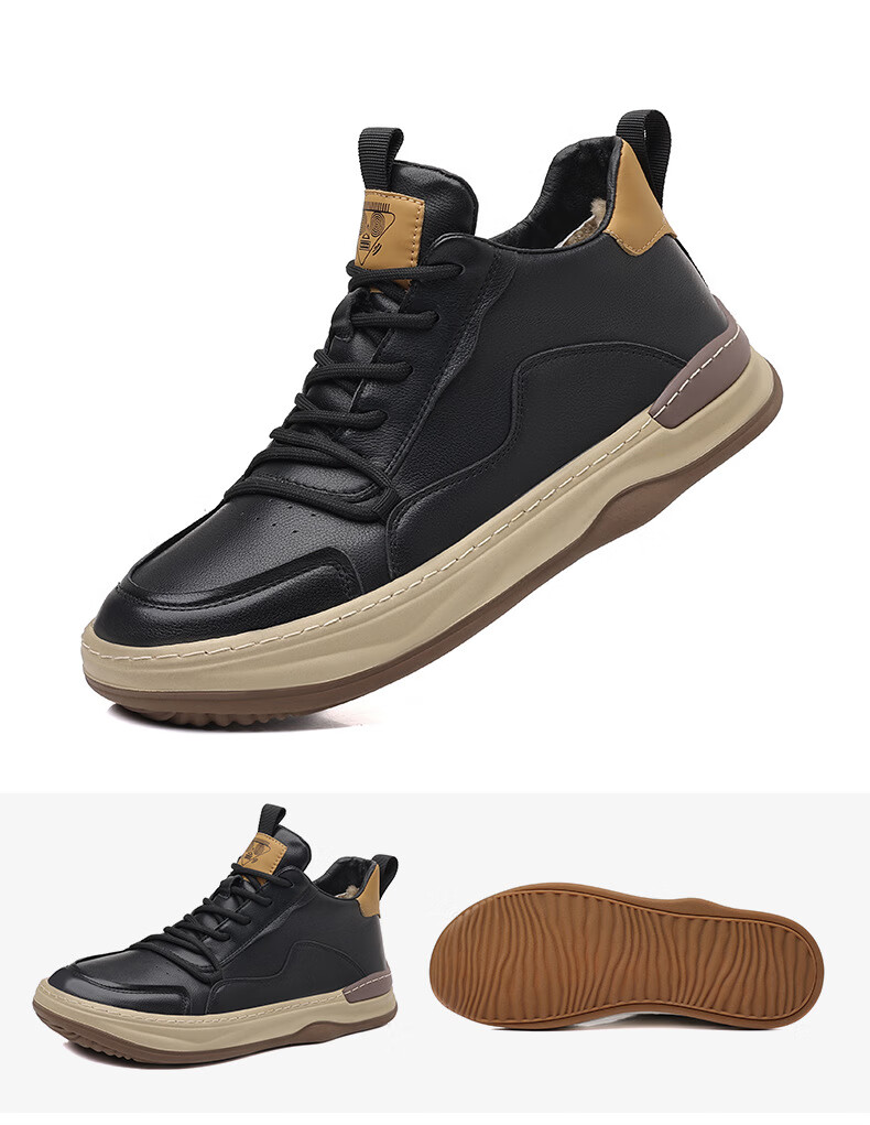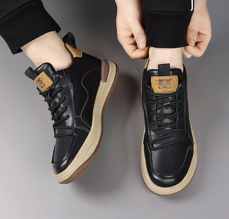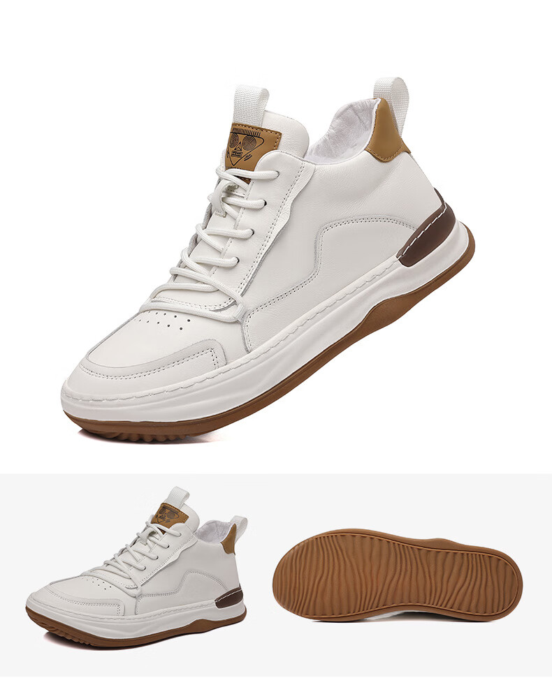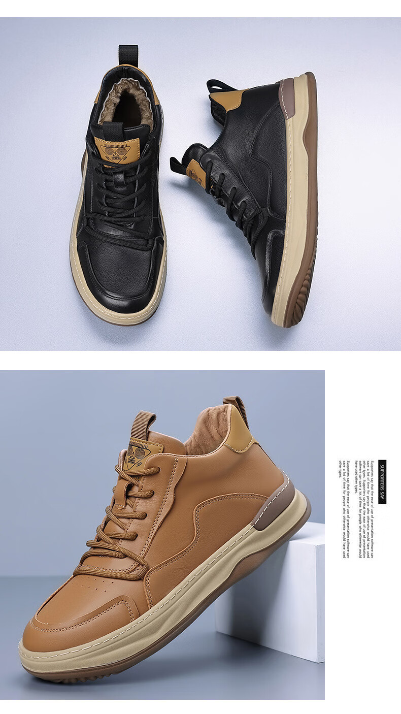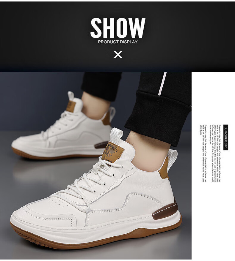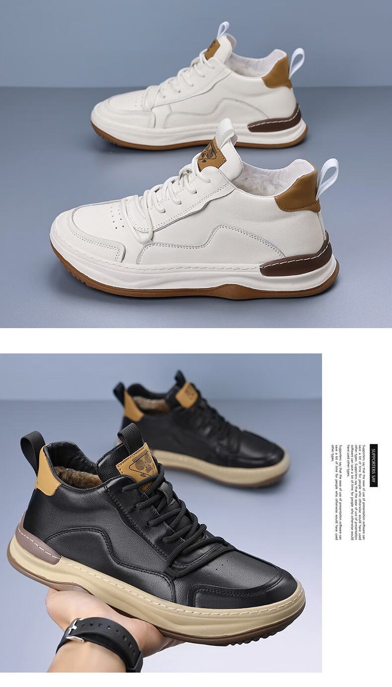 稻草人(MEXICAN)头层牛皮冬季男士棉鞋真皮羊毛皮毛一体保暖休闲男款潮鞋加绒 白色 38 38标准皮鞋码