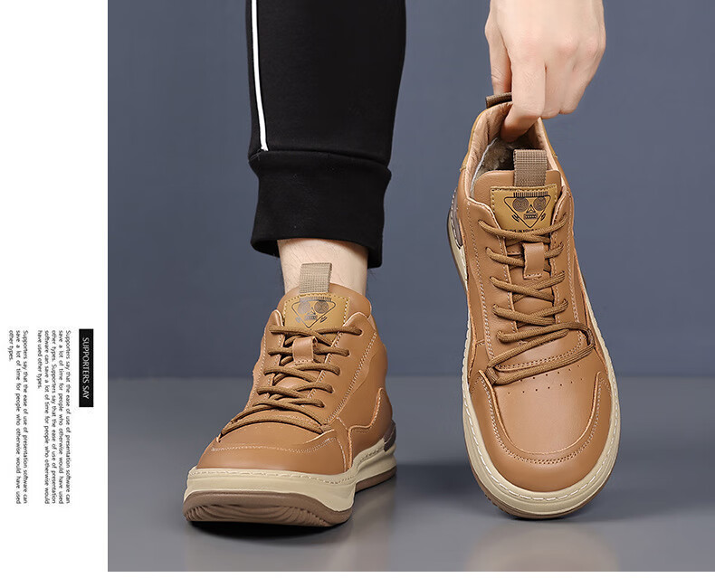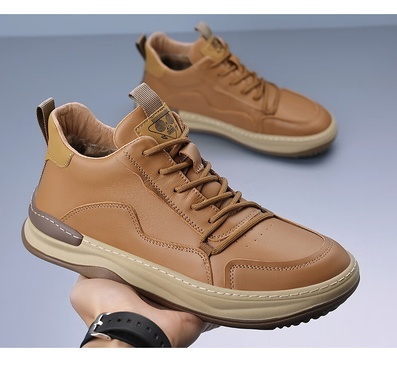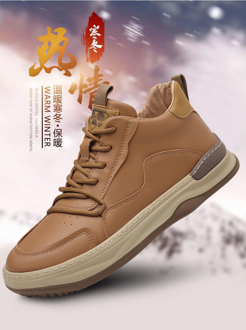 沙驰(SATCHI)男鞋【羊毛皮】防寒保暖雪地靴秋冬棉鞋舒适轻底休闲鞋男靴 卡其(H12A9G0320) 加绒 38 欧码(选小一码)