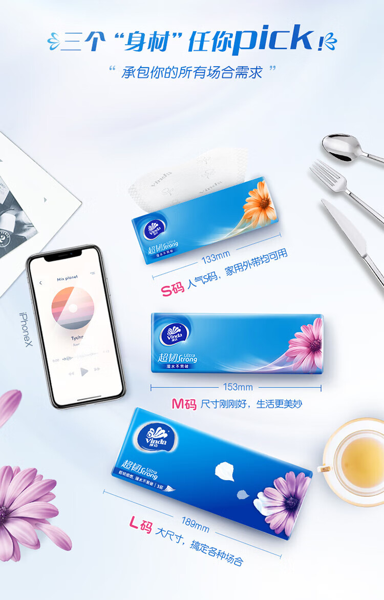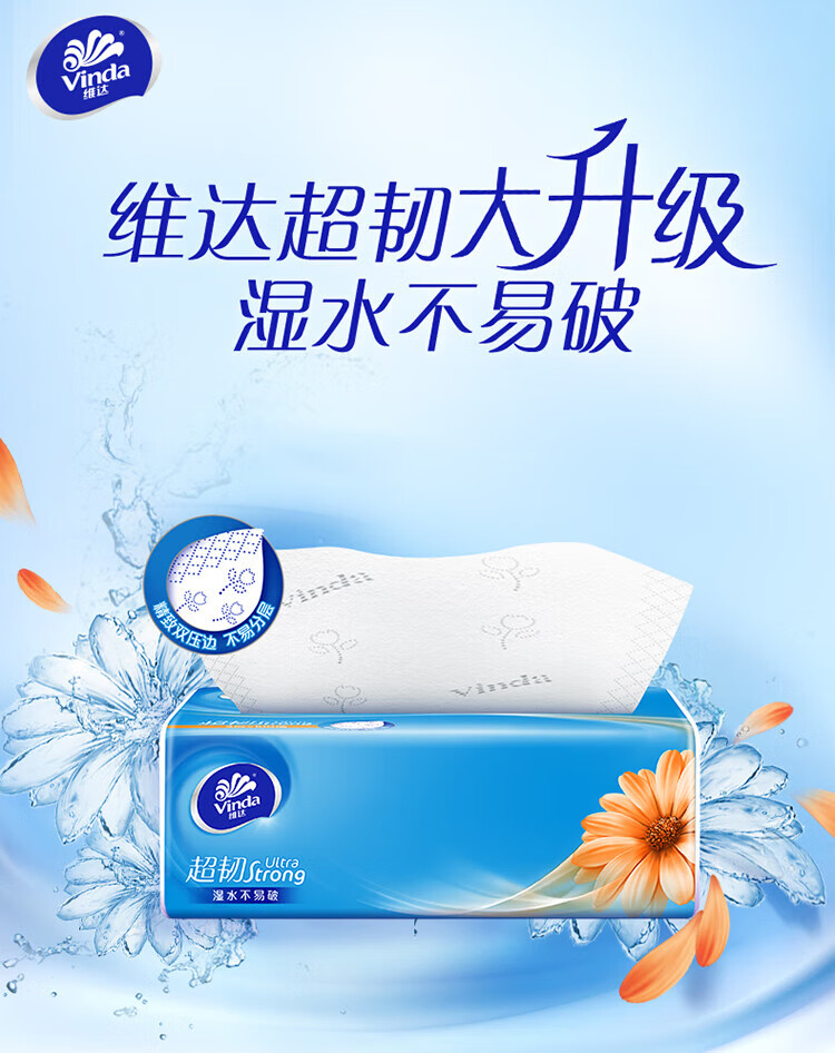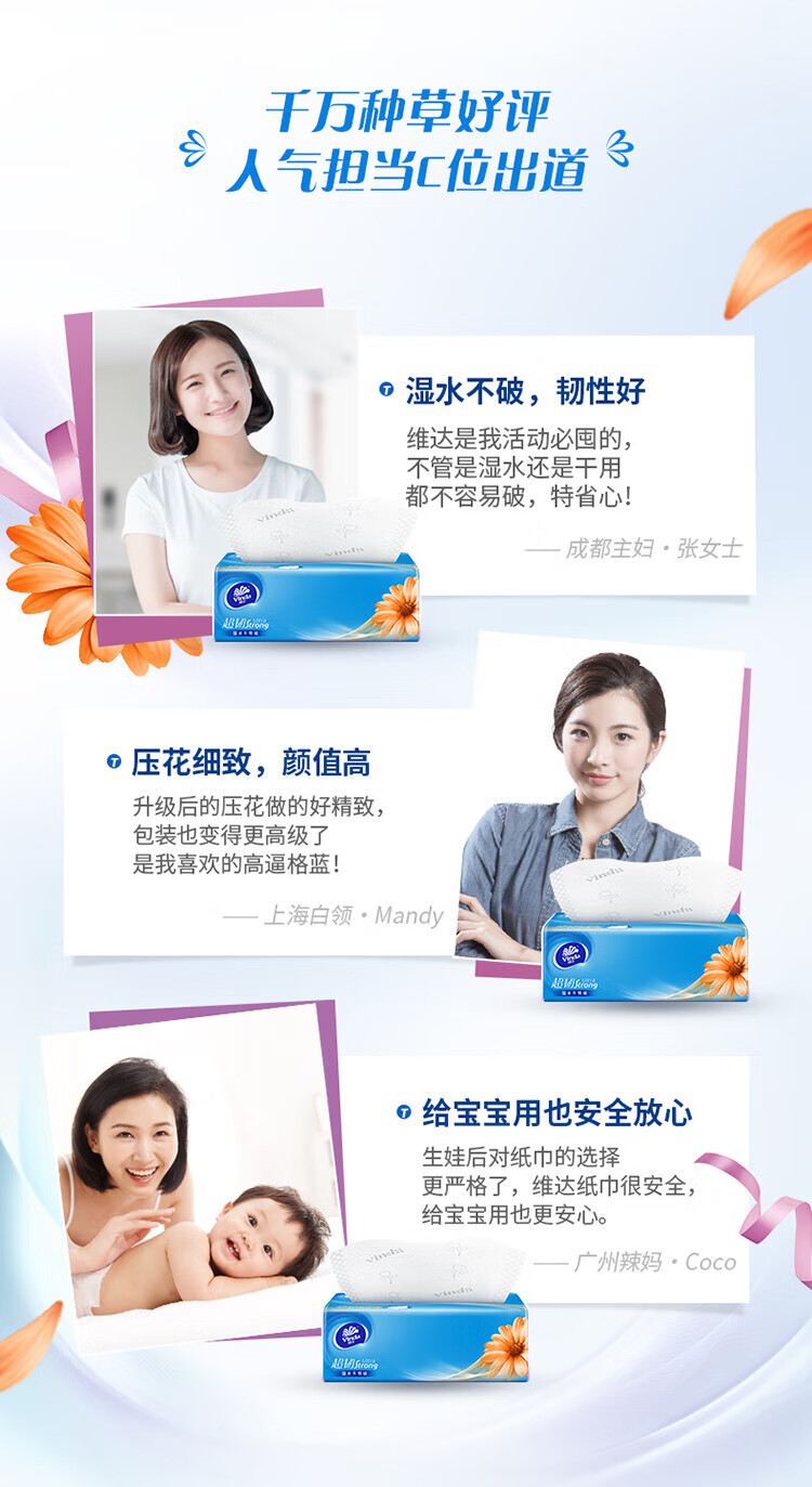 维达超韧抽纸S码 餐巾纸抽纸巾 软抽卫生纸【新旧版本随机发】 3层 100抽*72包