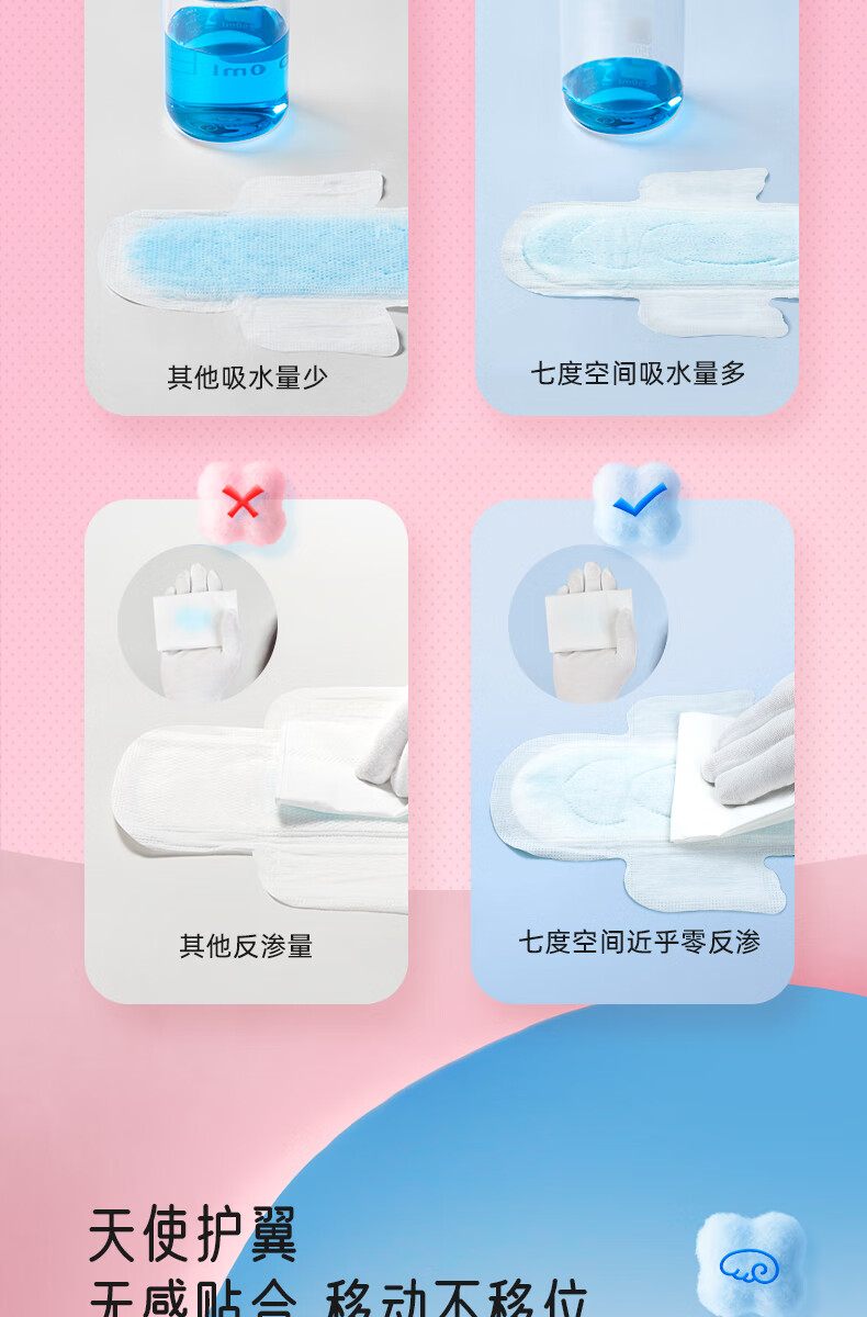 七度空间优雅卫生巾棉柔超薄透气夜用姨妈巾338mm组合32片【新国标认证】