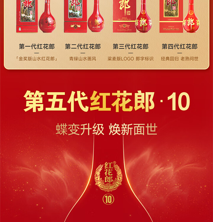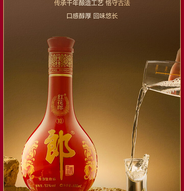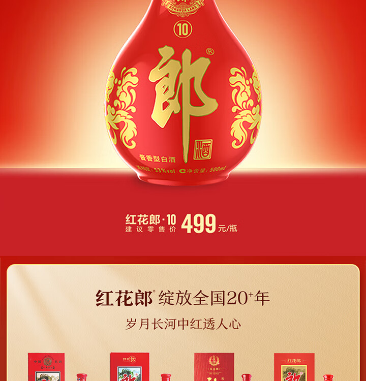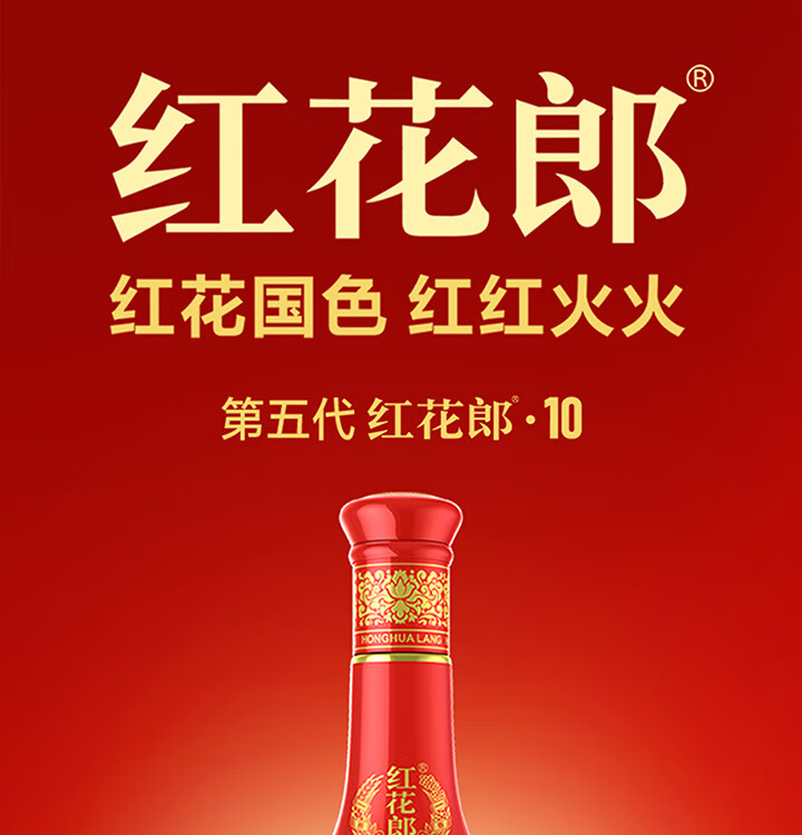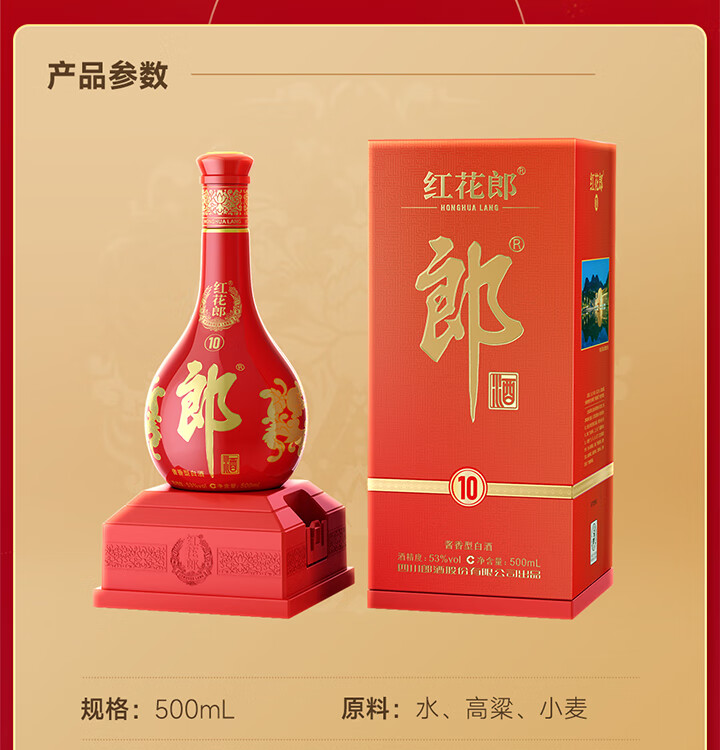 郎酒 红花郎10 酱香型白酒 53度 500ml*4 四瓶装 (包装随机) 年货送礼