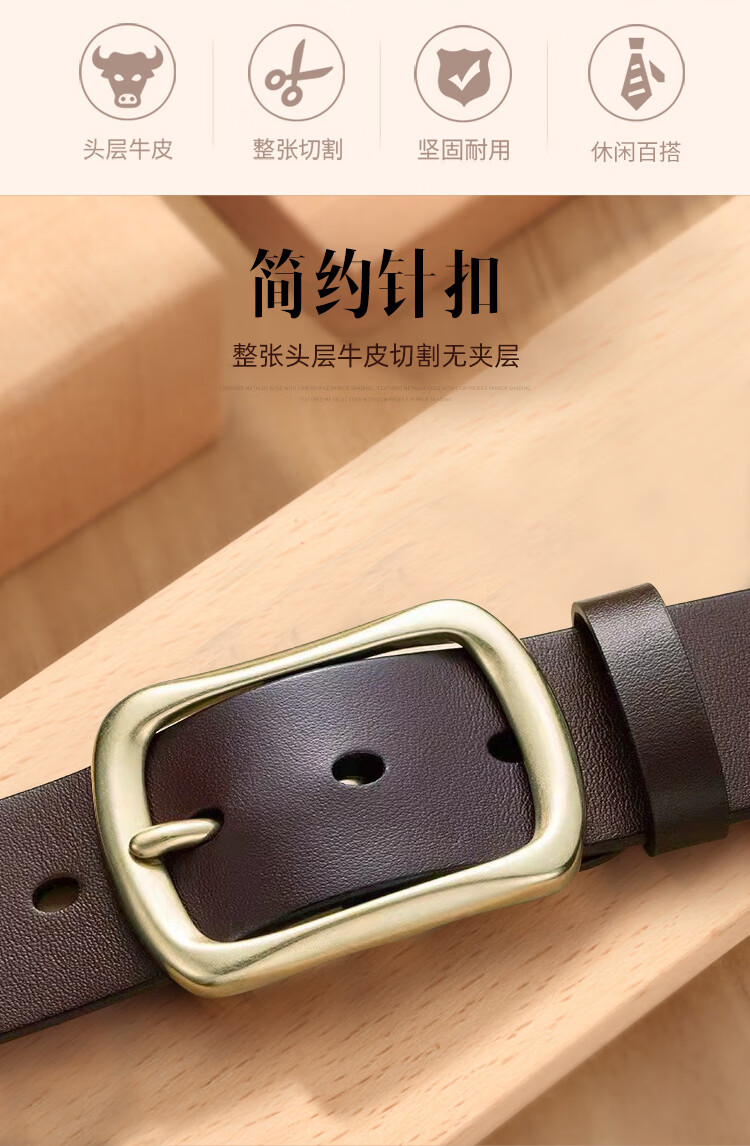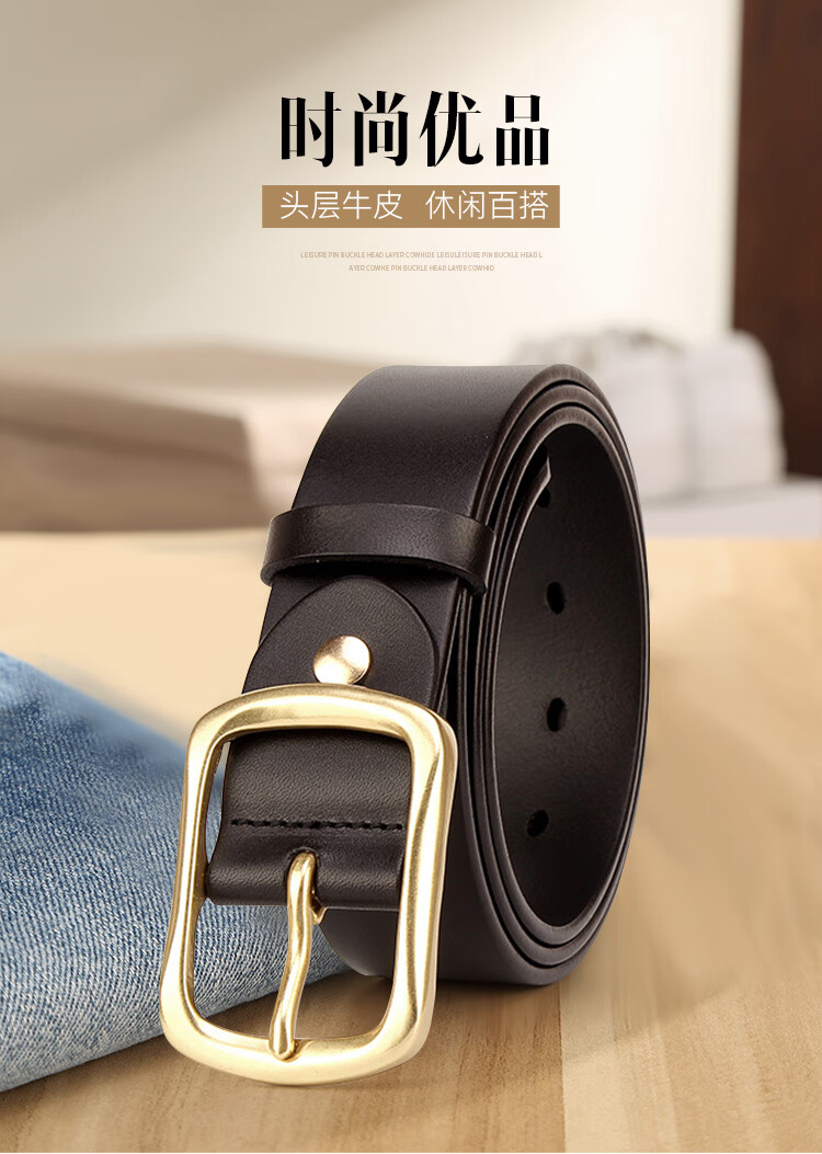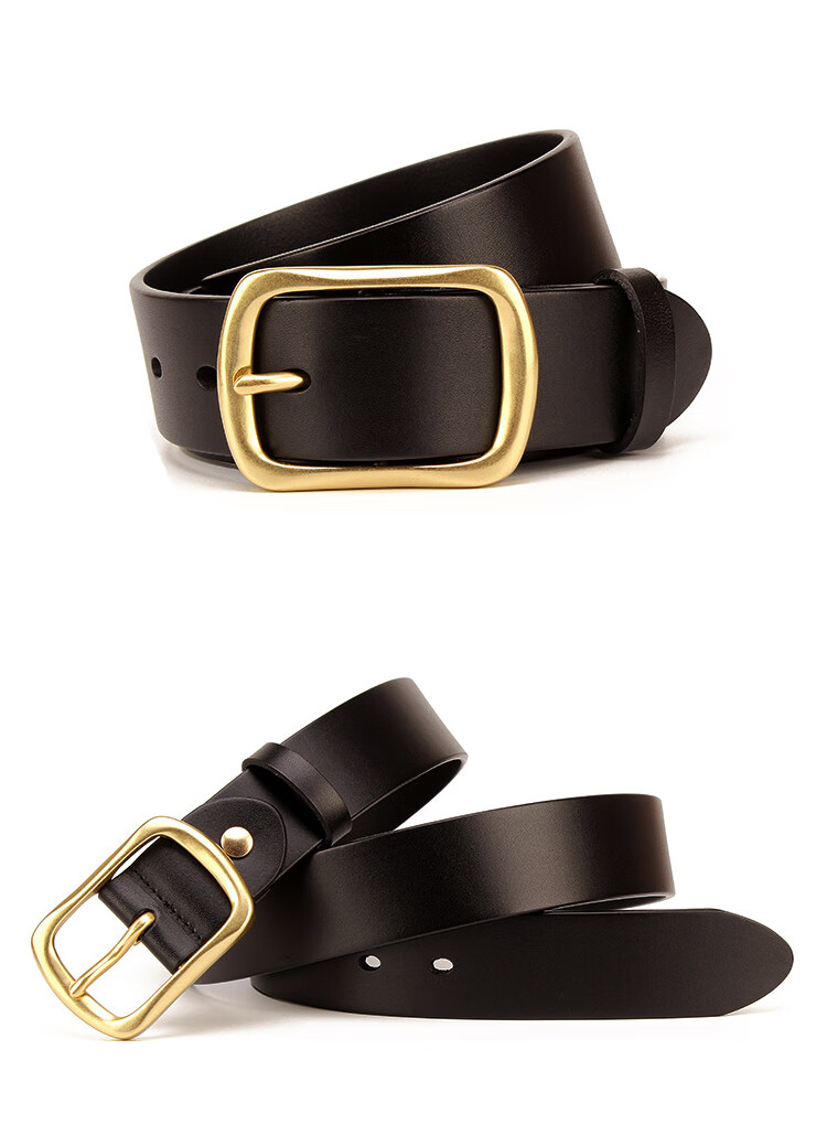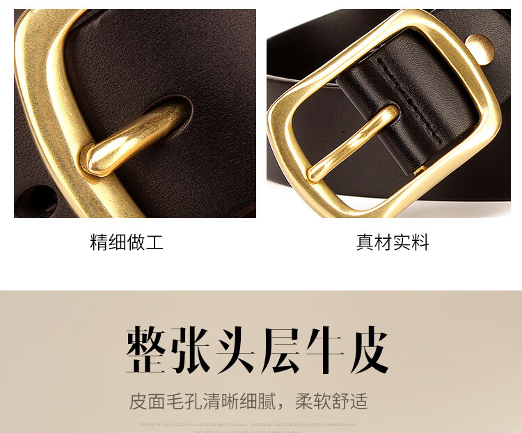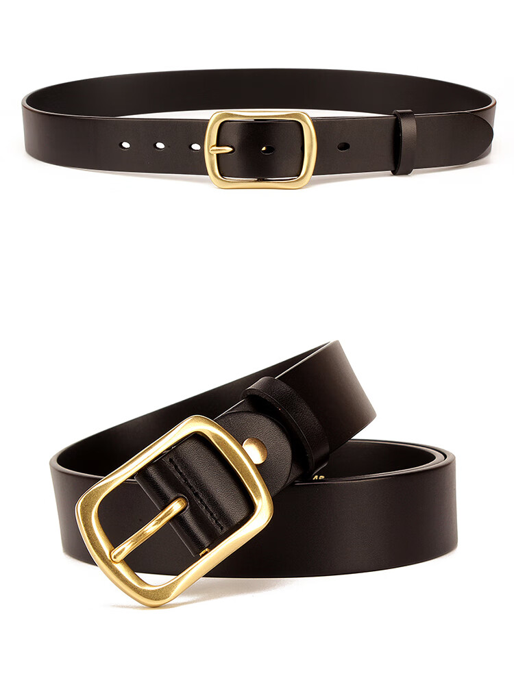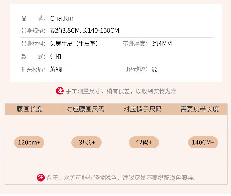 CHALKIN加长皮带男士真皮黄铜针扣式无夹层头层纯牛皮休闲百搭大码腰带 黑色/加长140-150CM