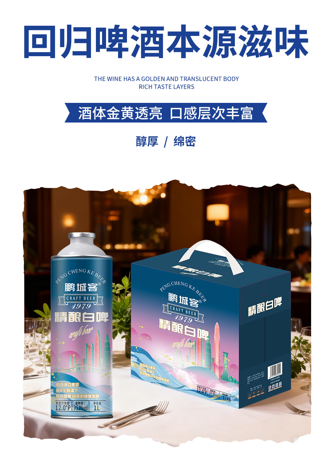 鹏城客比利时风味精酿原浆啤酒白啤整箱深圳品牌澳洲进口全麦芽 精酿白啤 1L 6瓶 整箱装 1箱