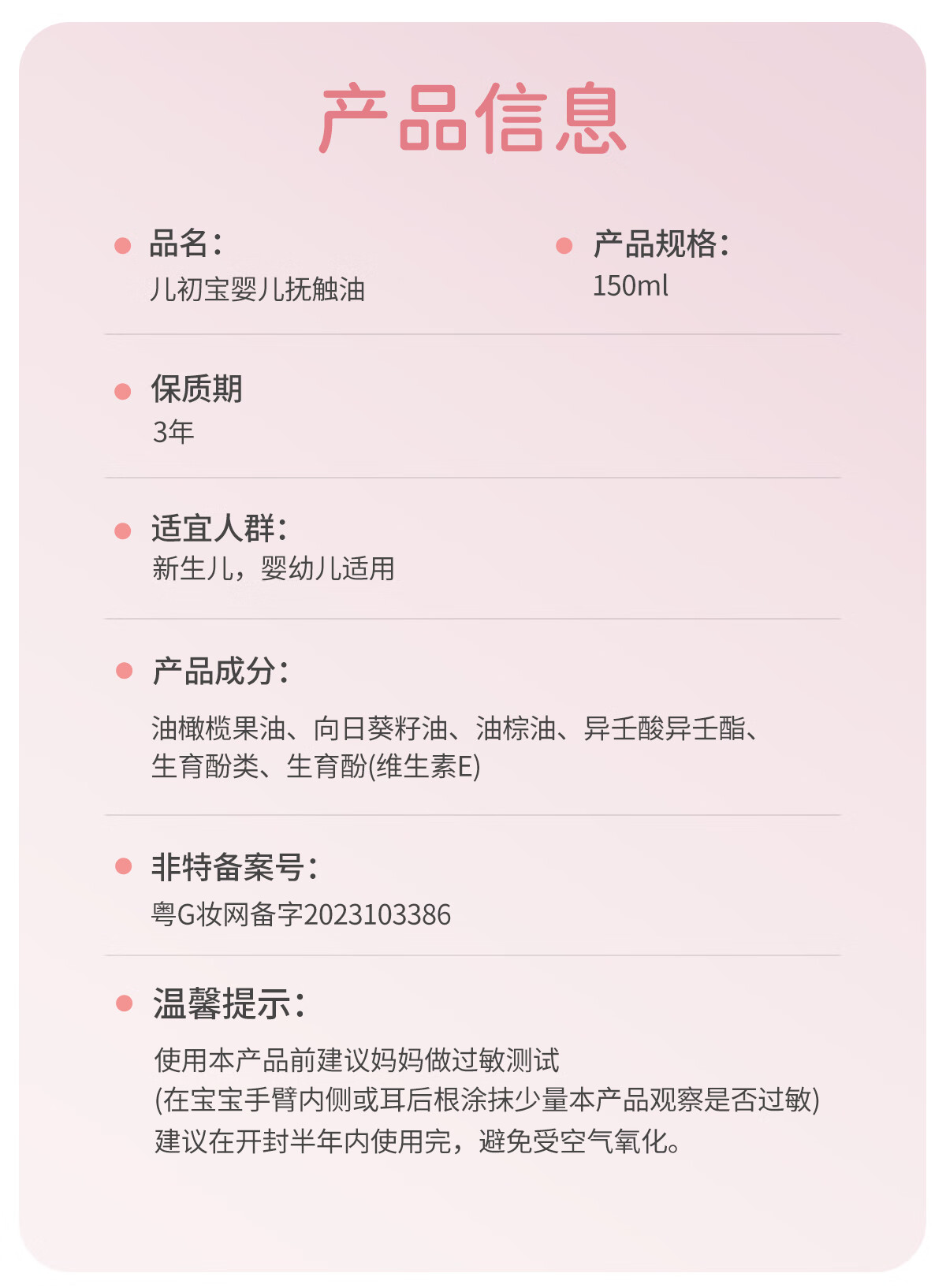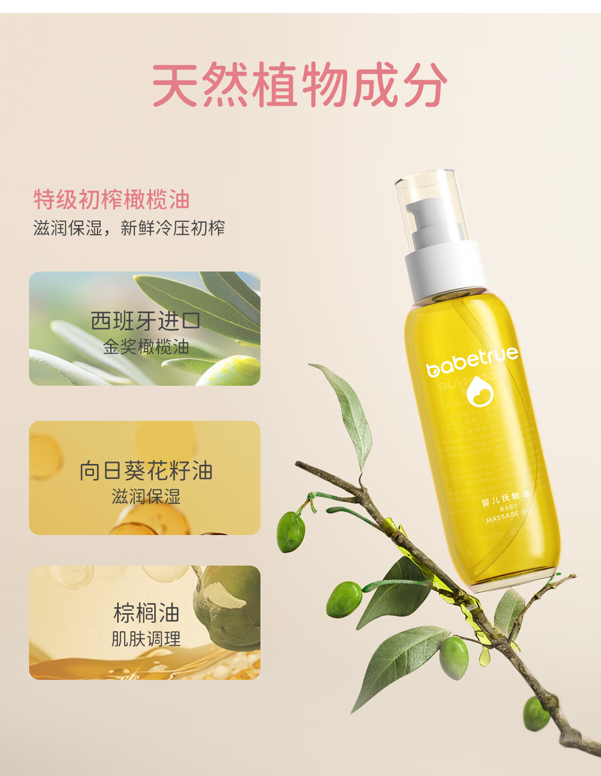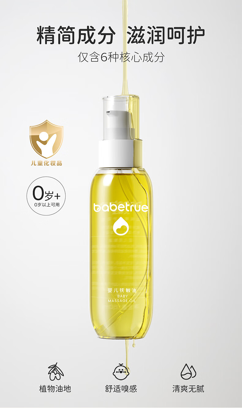 儿初宝(babetrue)婴儿抚触油儿童润肤油按摩油新生儿宝宝专用护肤橄榄油 【亲肤不腻】抚触油1瓶装