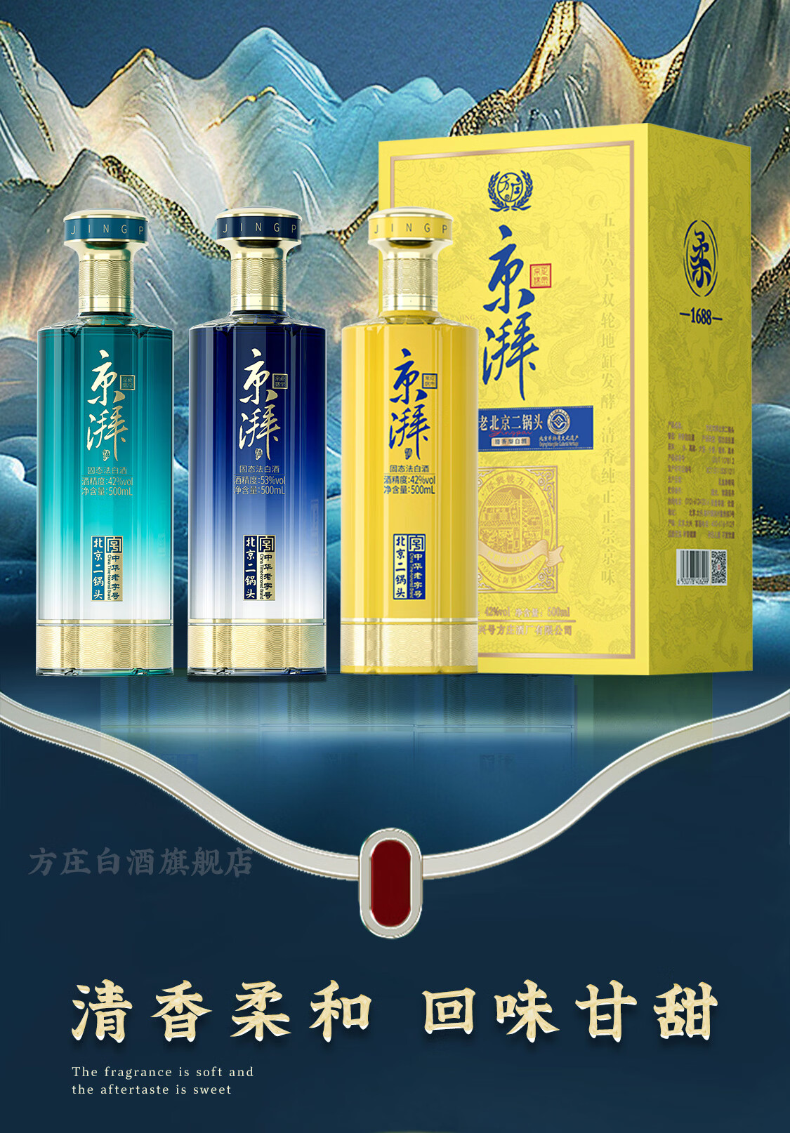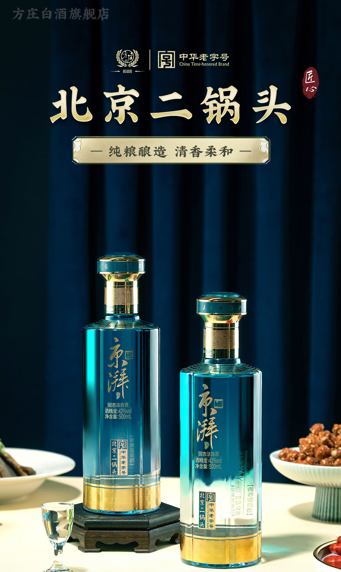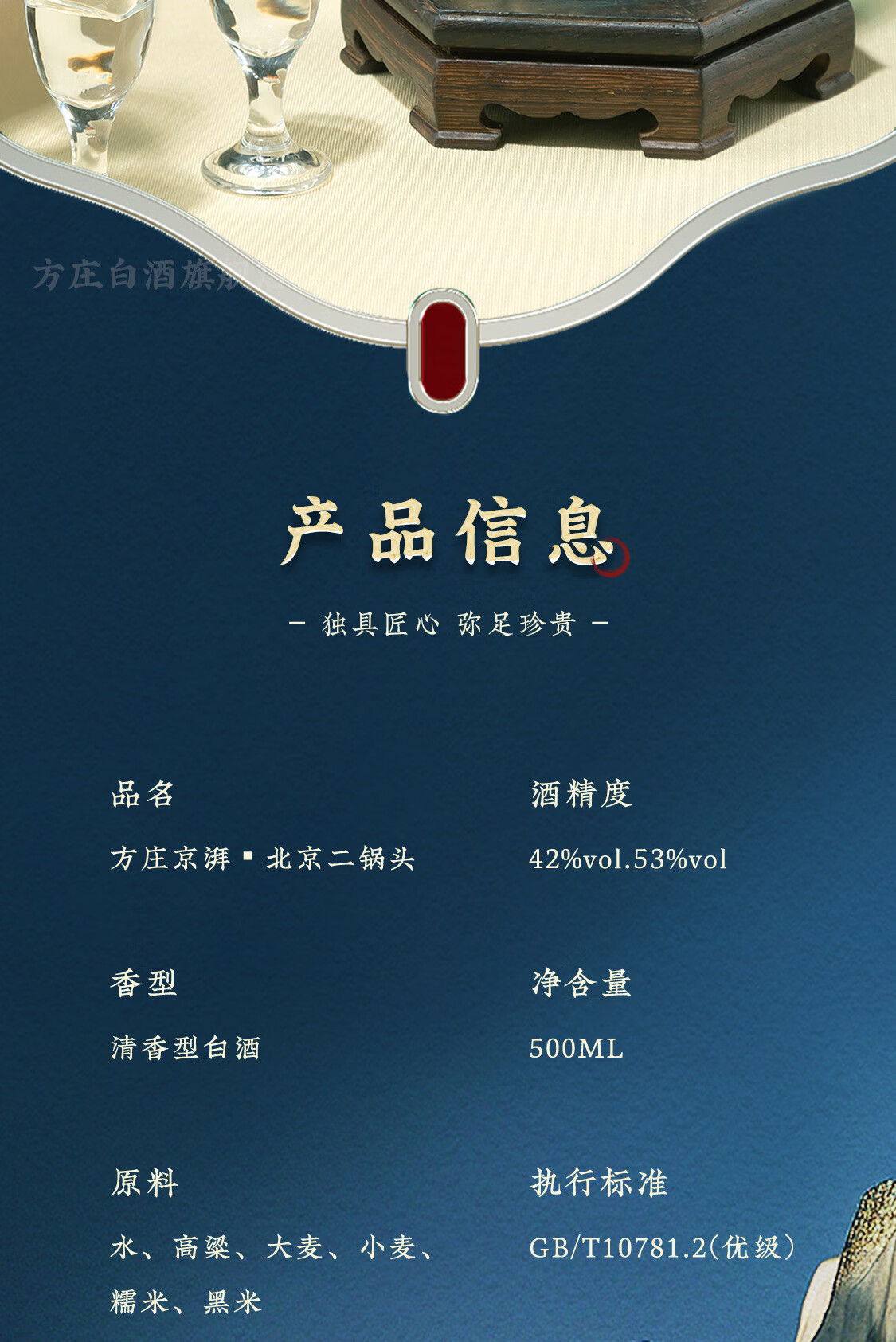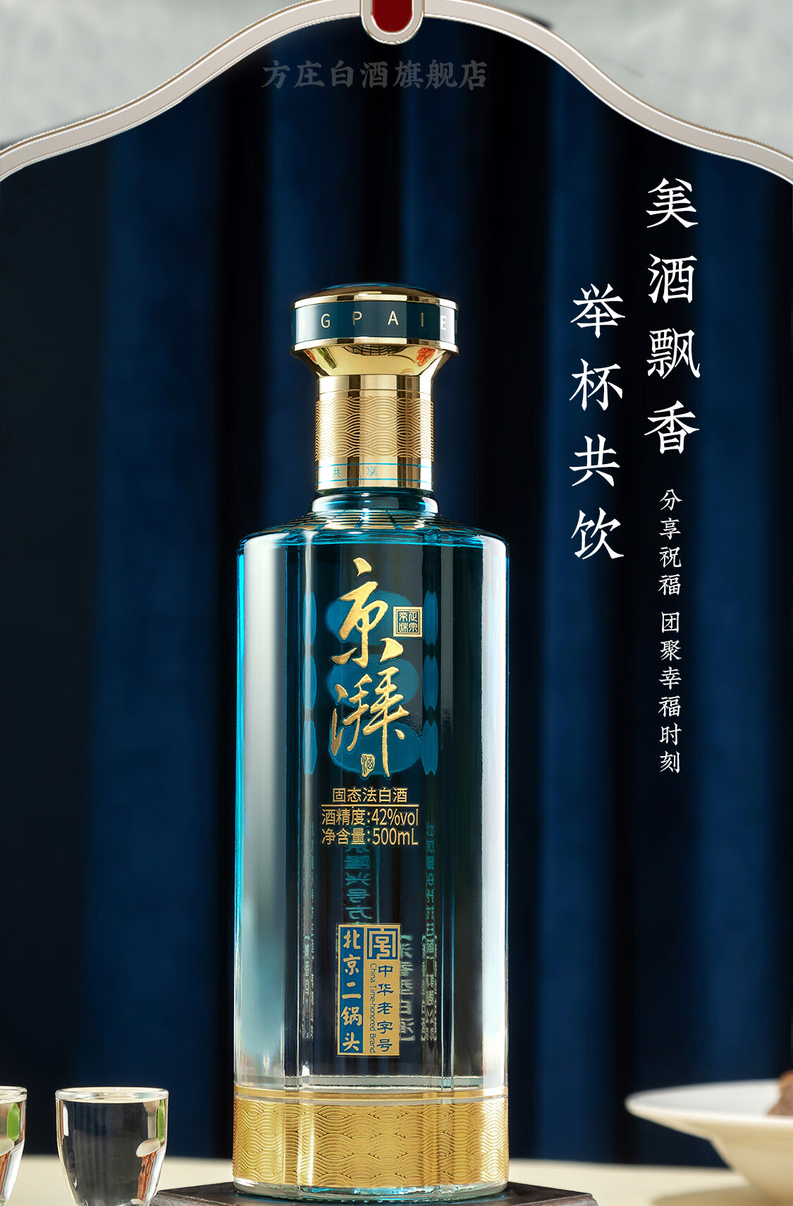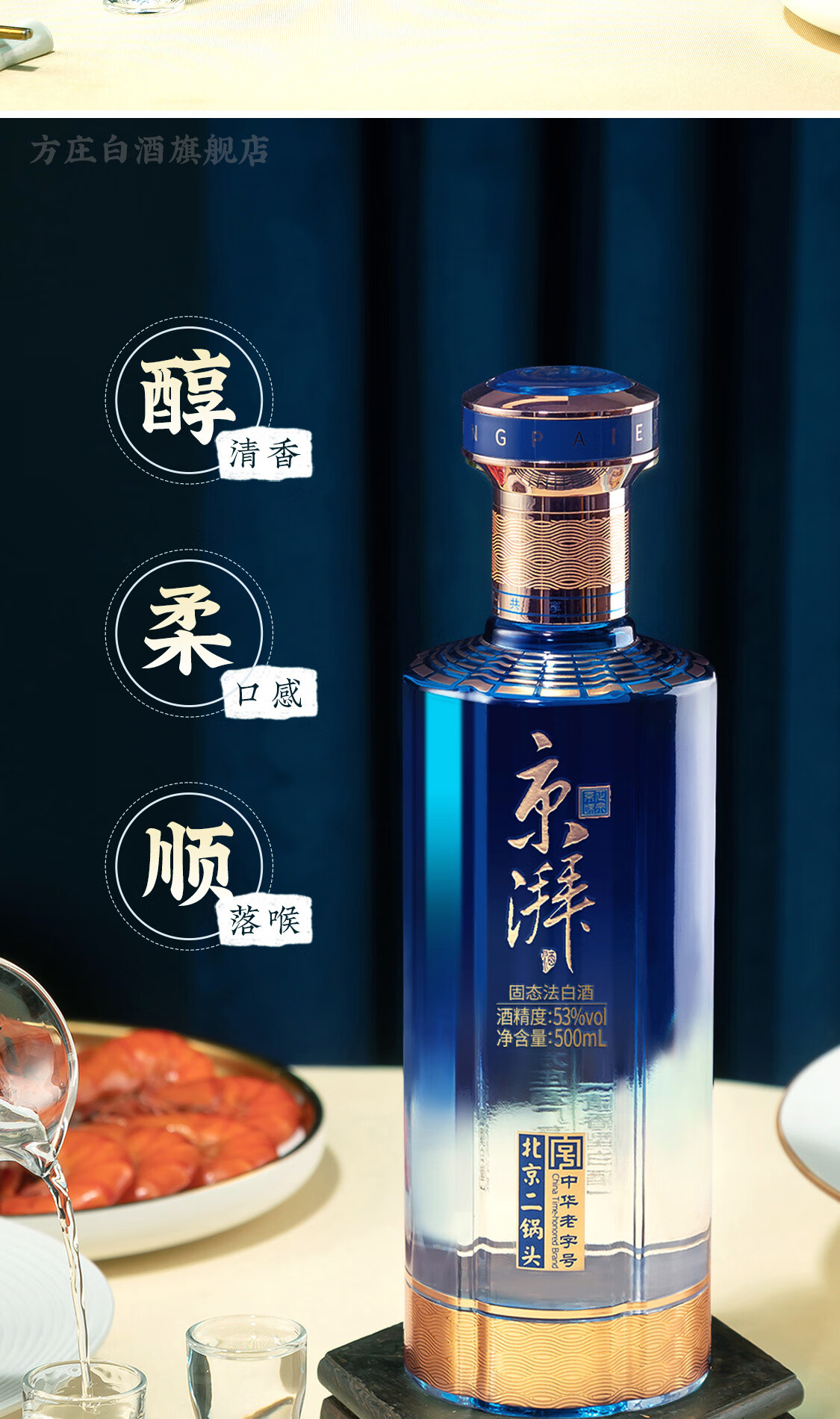 方庄北京二锅头 优级清香型白酒 送长辈宴请酒席高粱纯粮固态白酒整箱 53度 500mL 6瓶 [蓝柔]