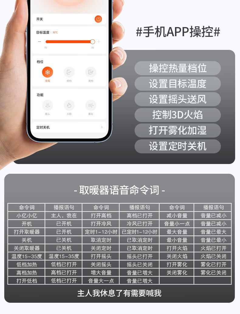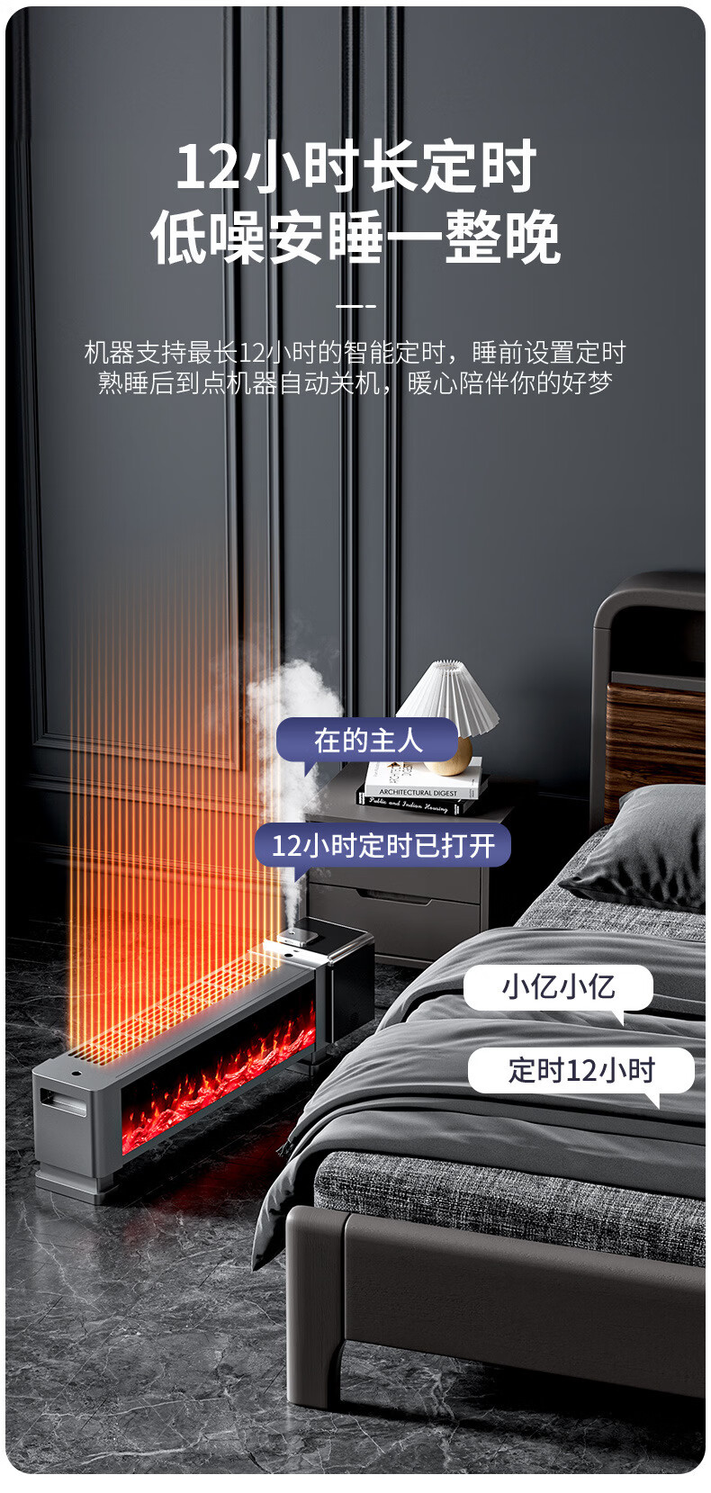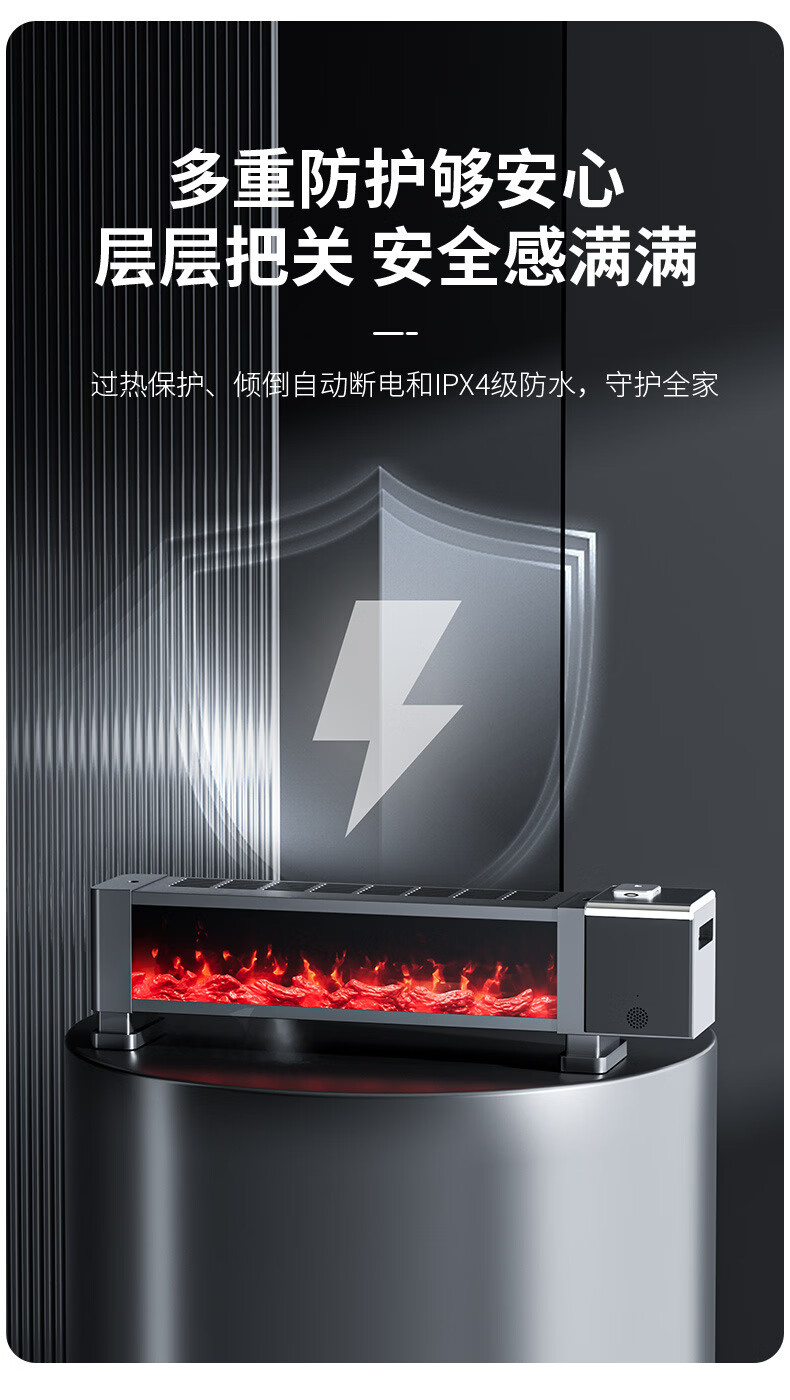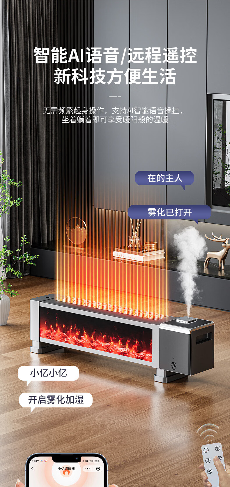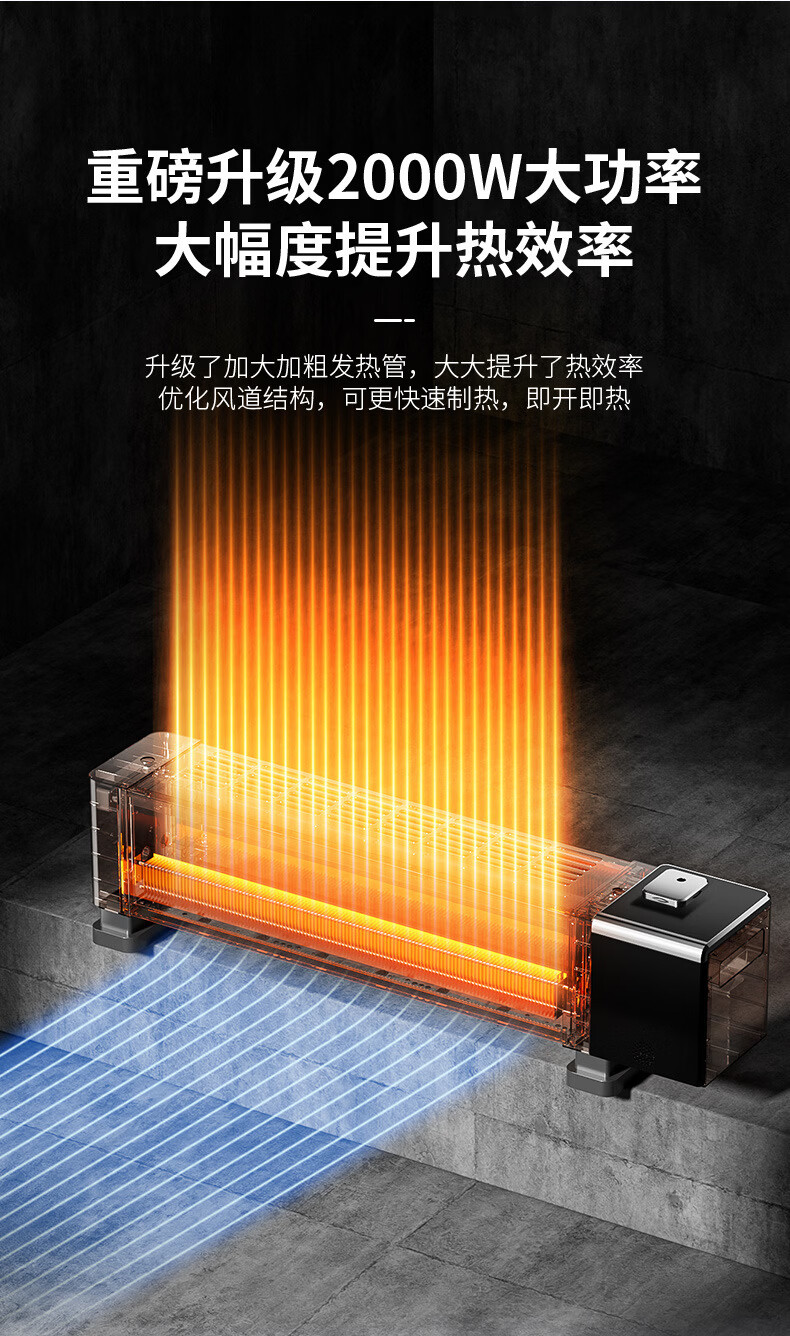 新款德国速热石墨烯踢脚线家用节能仿真火焰暖风机智能语音电暖气 语音取暖器+加湿器 重磅升级