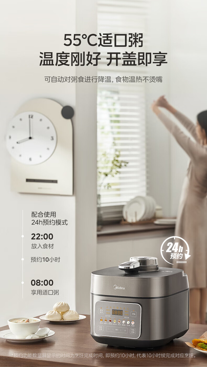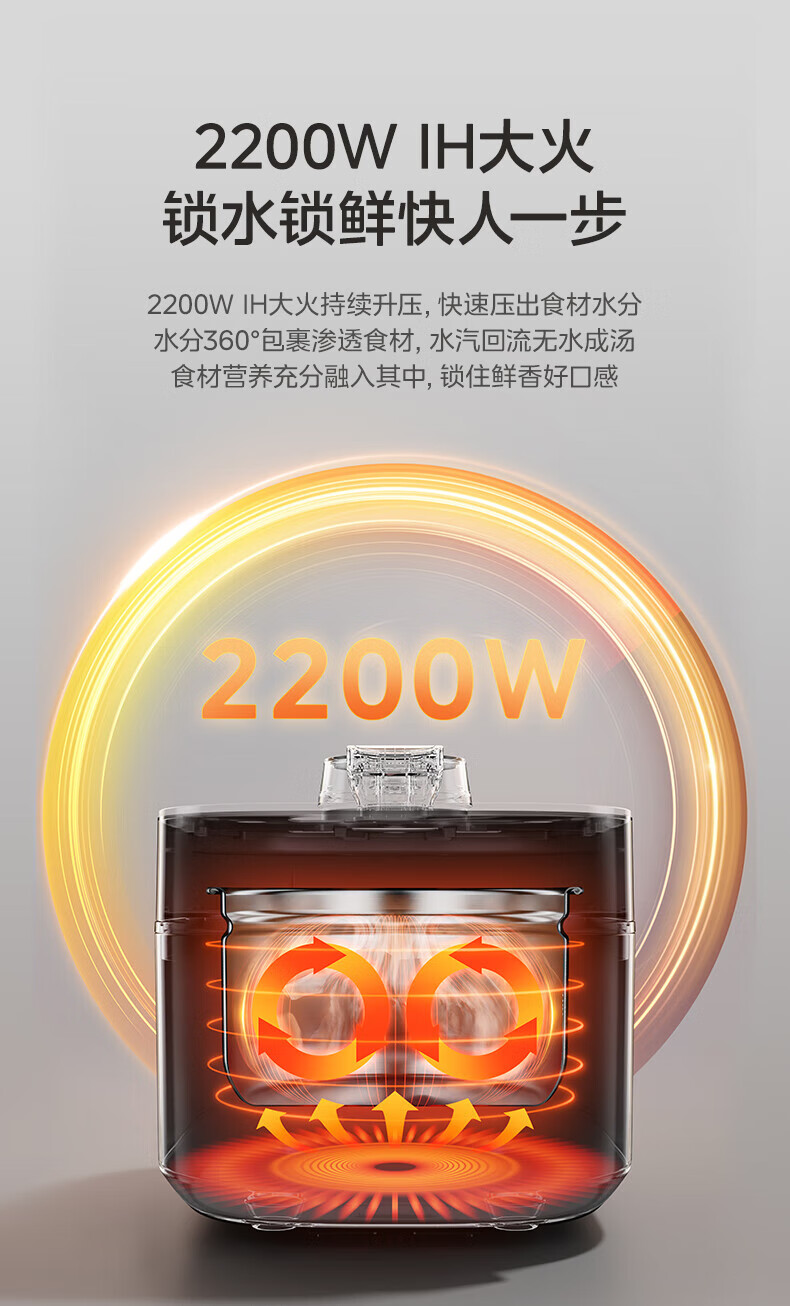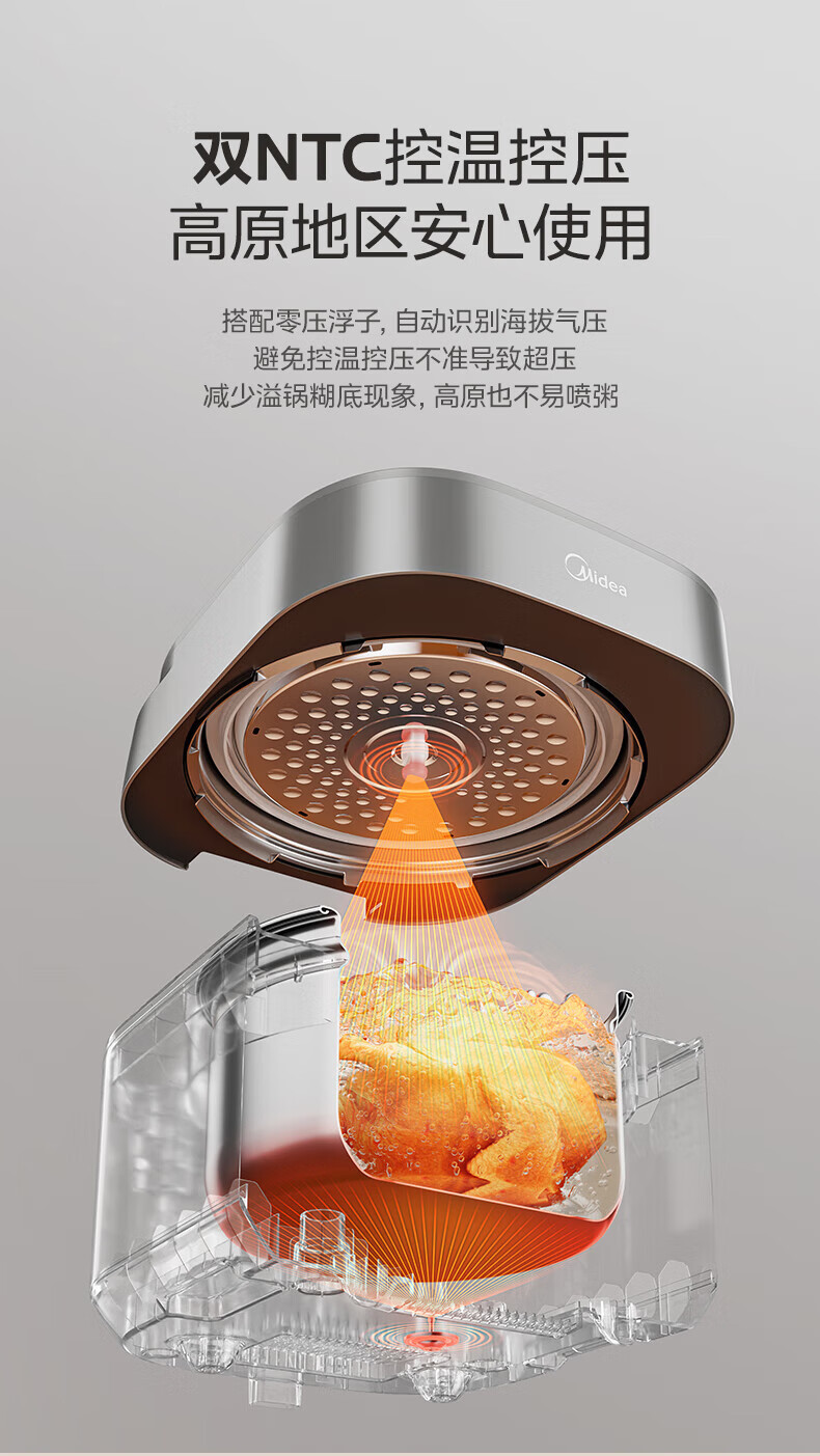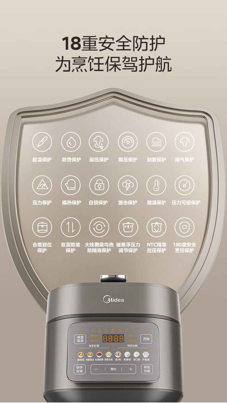 美的(Midea)IH电压力锅2200W风冷5L双胆家用智能预约无感降压0涂层高压锅4-6人电饭煲 MY-S5175C IH电压力锅 MY-S5175C 5L