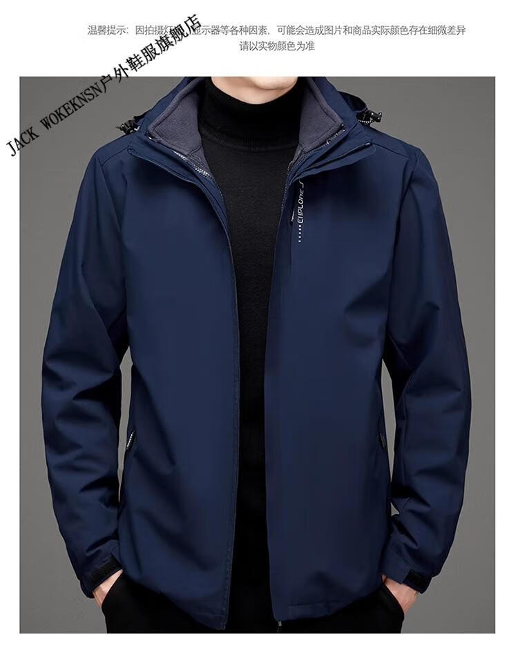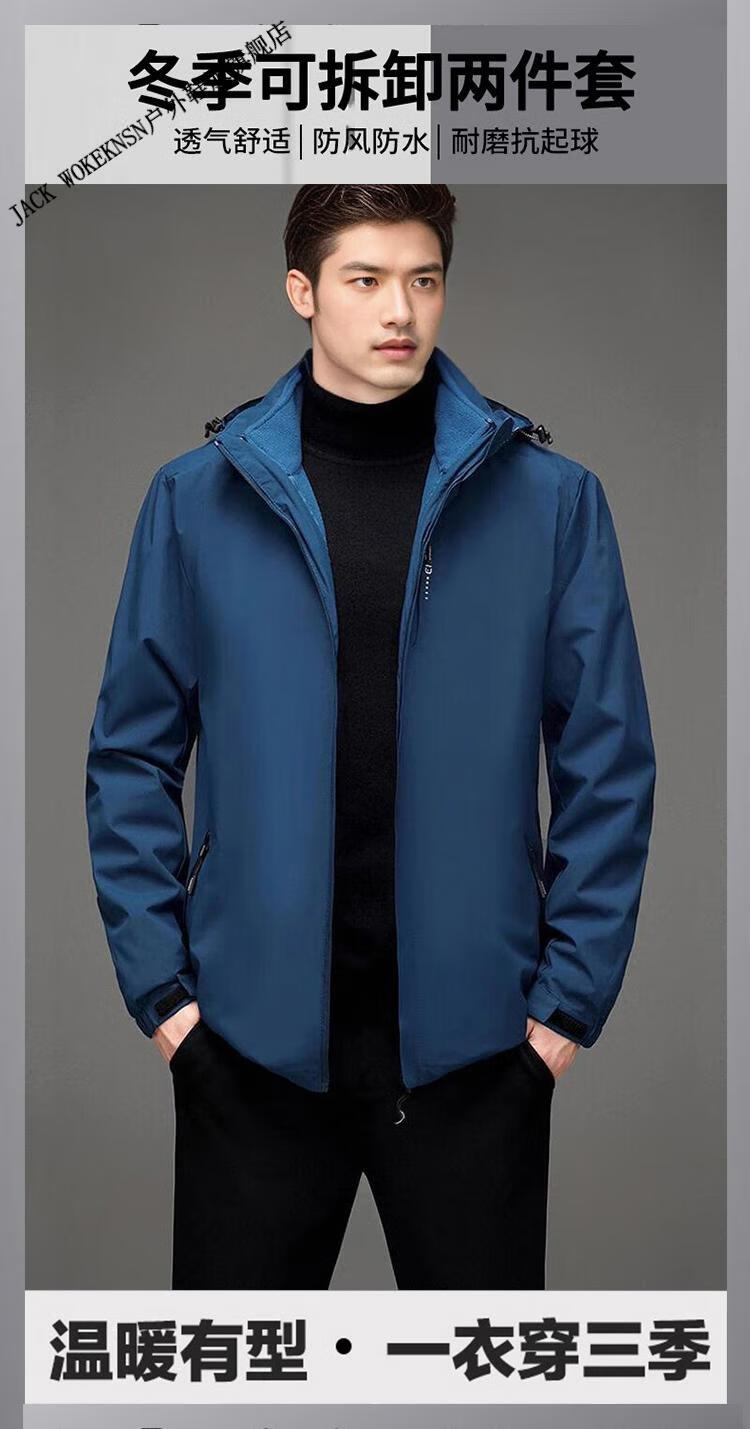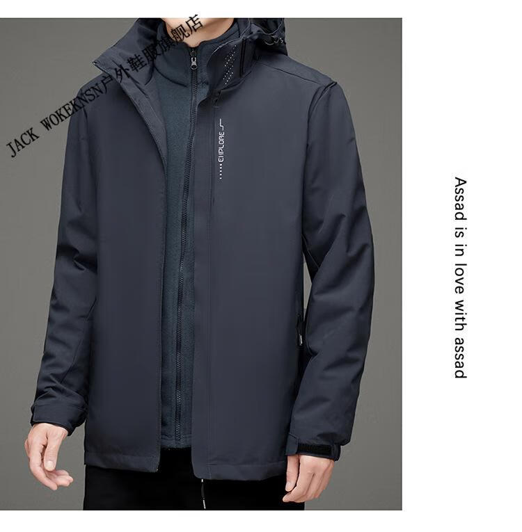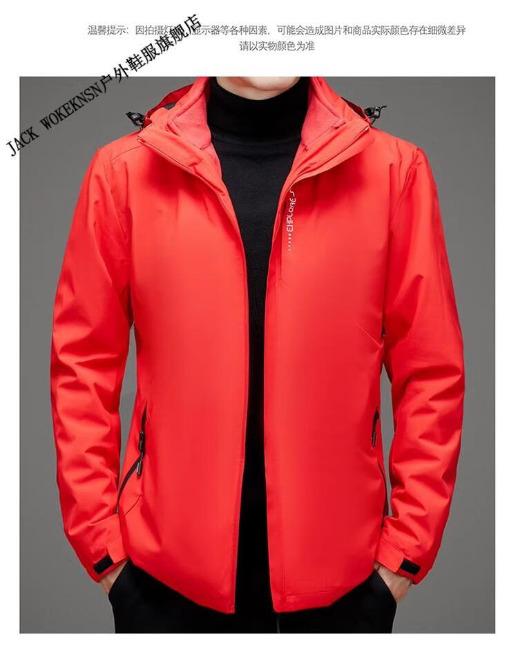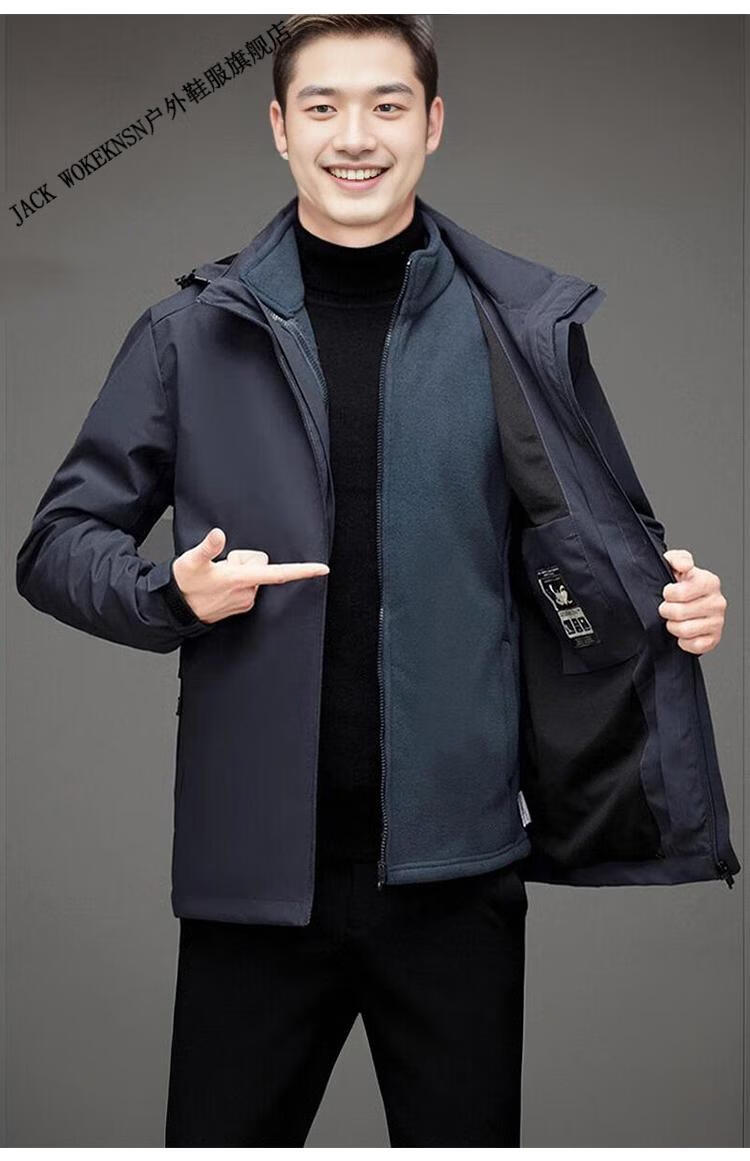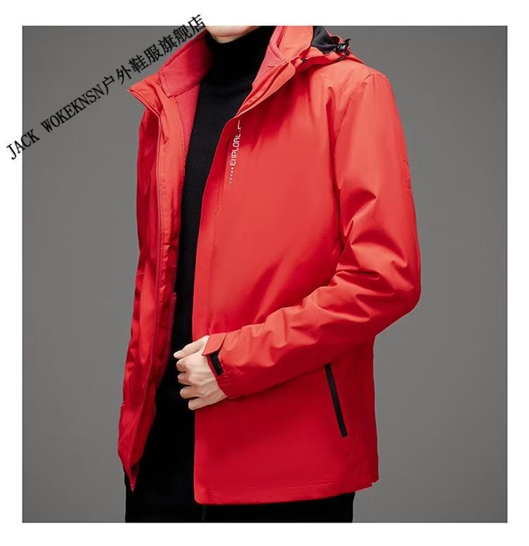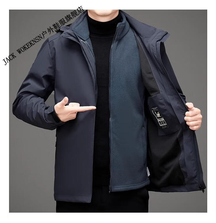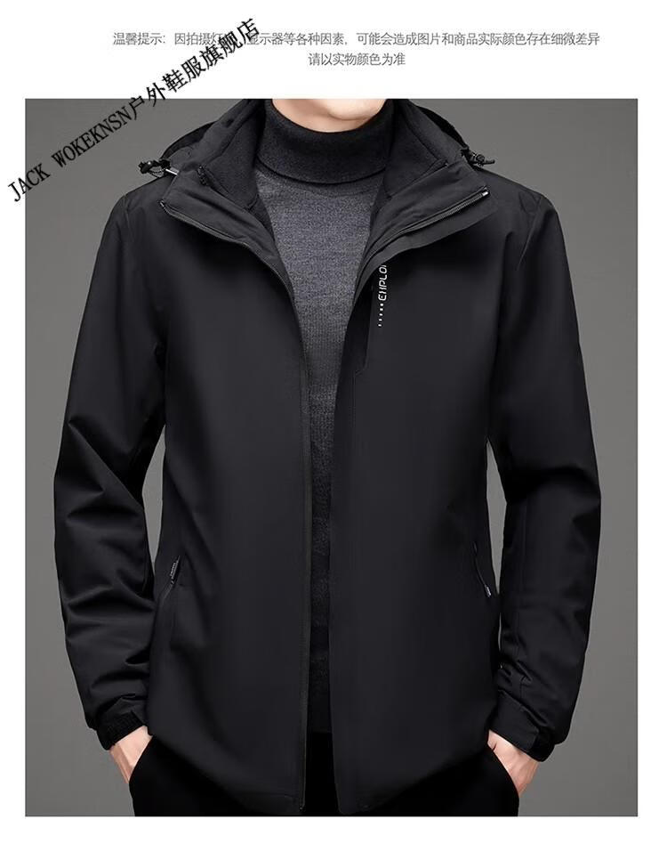 JACK WOKEKNSN狼爪云冲锋衣男三合一内胆可拆卸秋冬加厚户外防风防水登山服外套 黑色 XL/【推荐125-140斤】