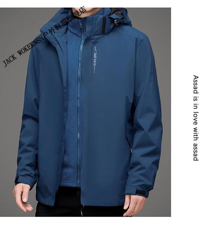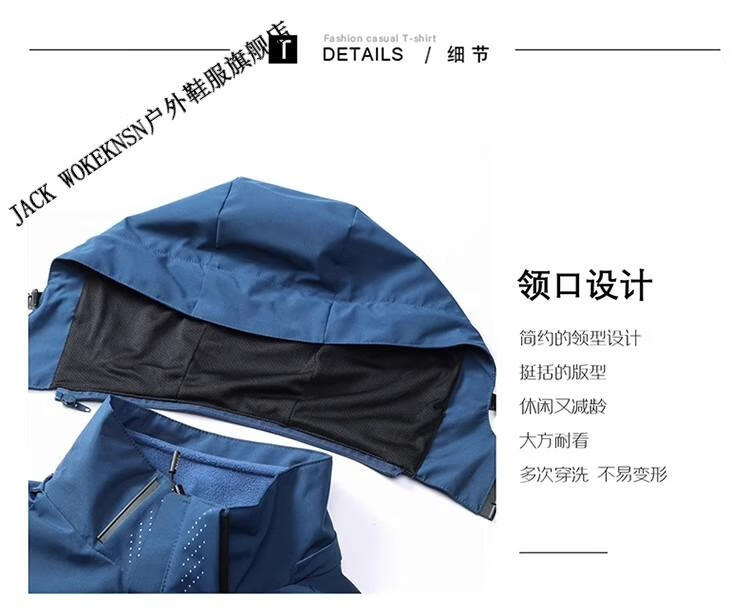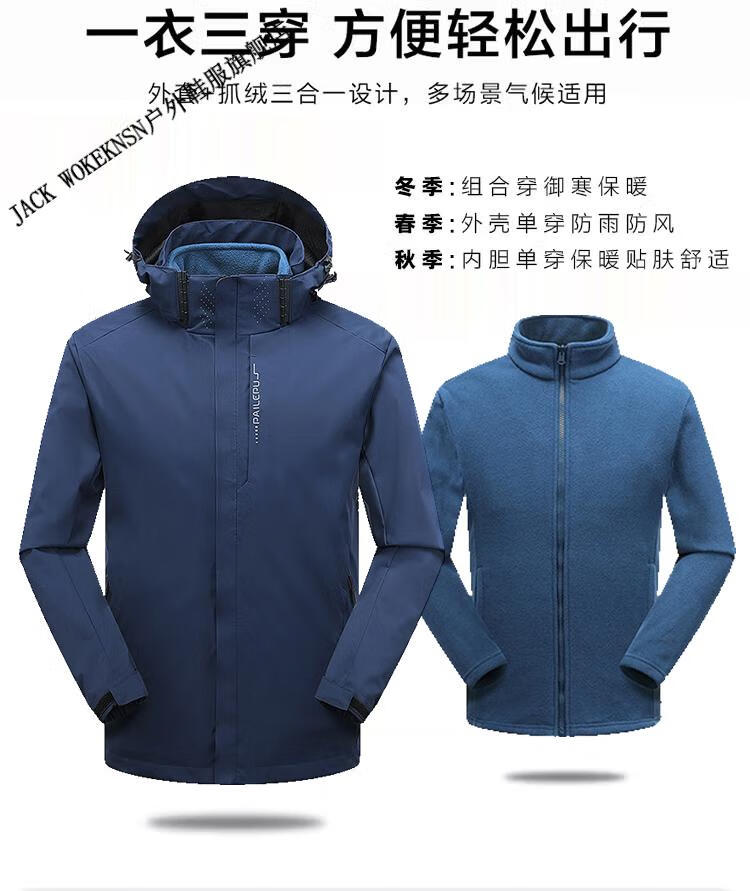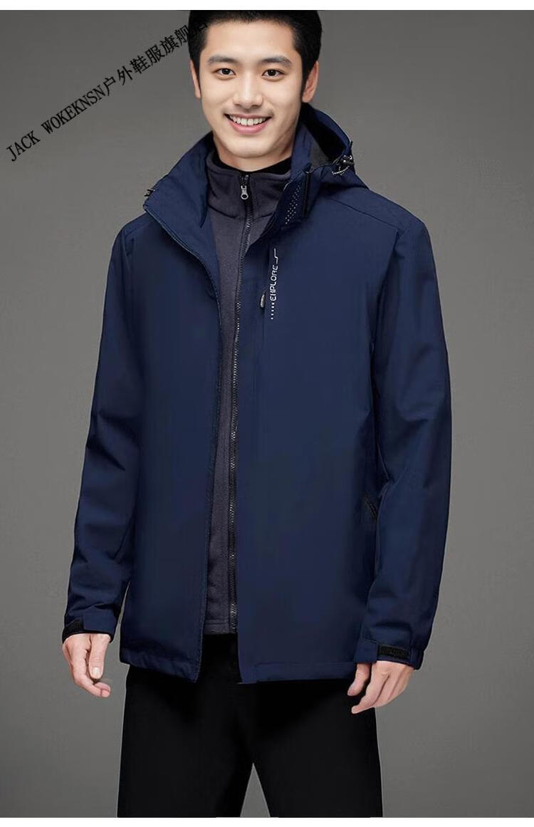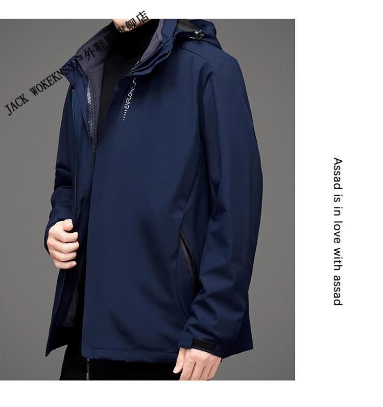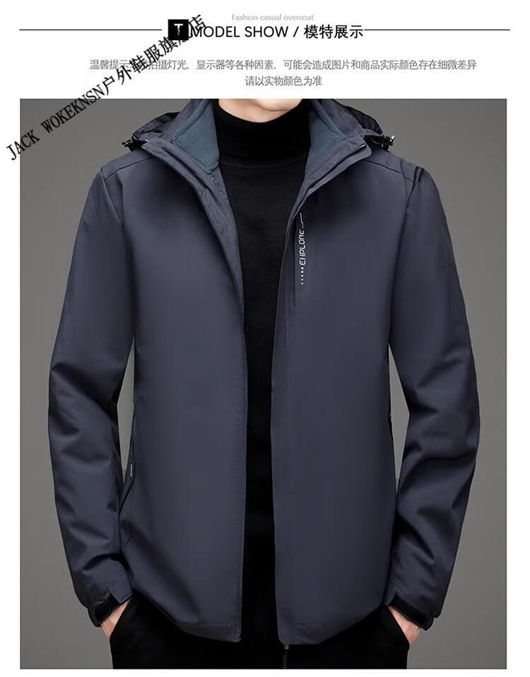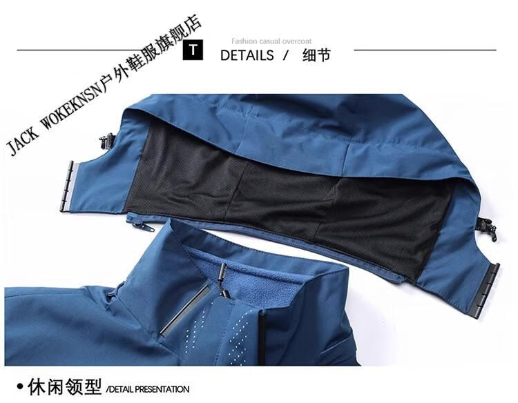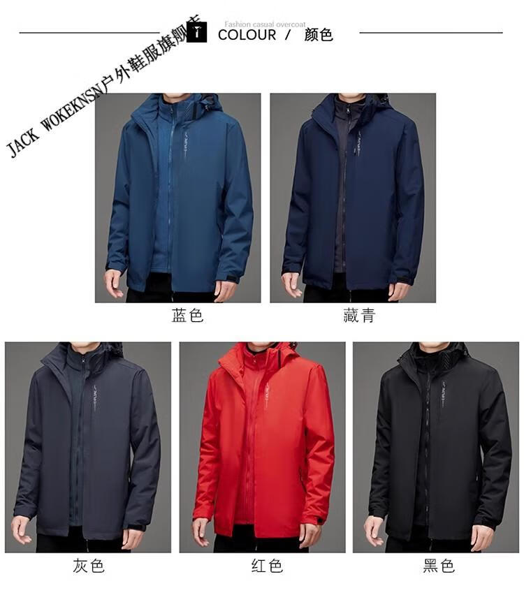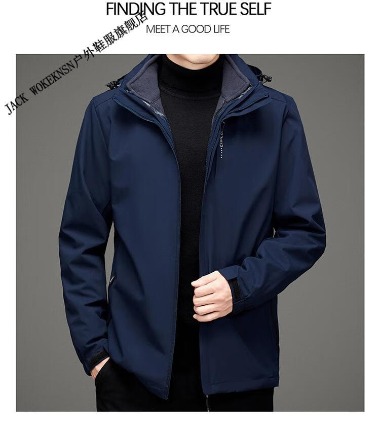 JACK WOKEKNSN狼爪云冲锋衣男三合一内胆可拆卸秋冬加厚户外防风防水登山服外套 黑色 XL/【推荐125-140斤】