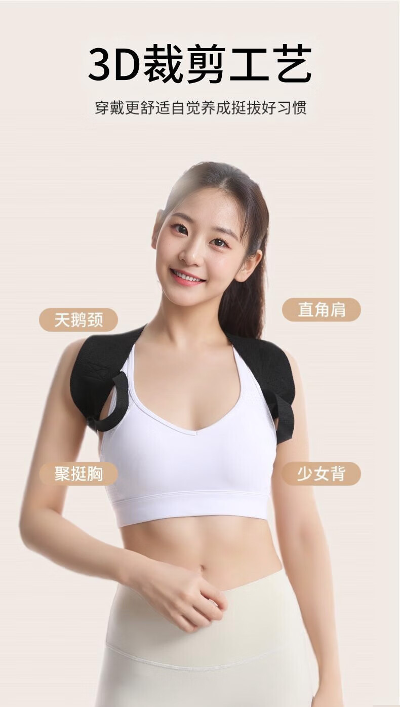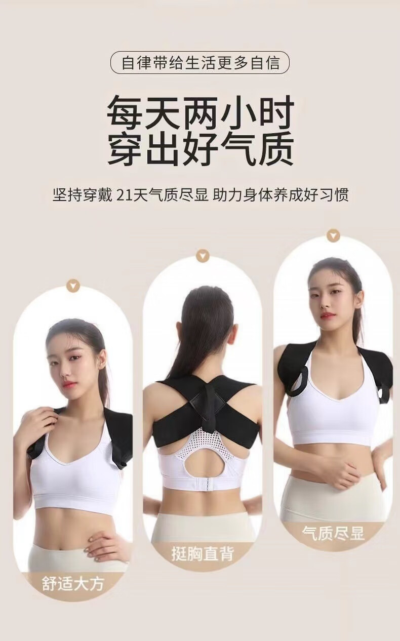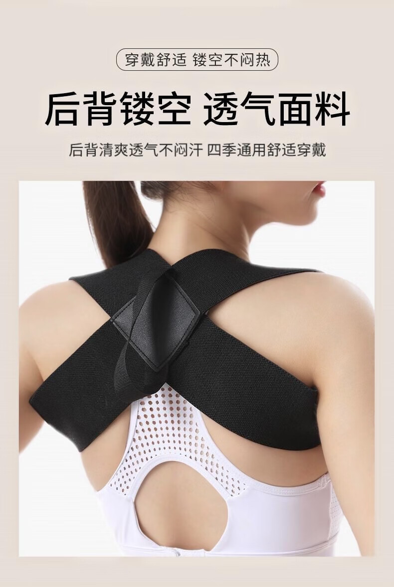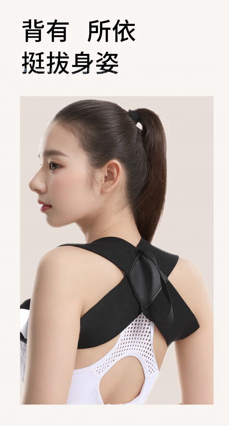 舒尔佳开肩矫姿带健身挺胸展开背部训练带隐形沉肩矫正带男女直背神器 黑色款【一体松紧-隐形穿戴】 XXL码推荐【170-200斤】