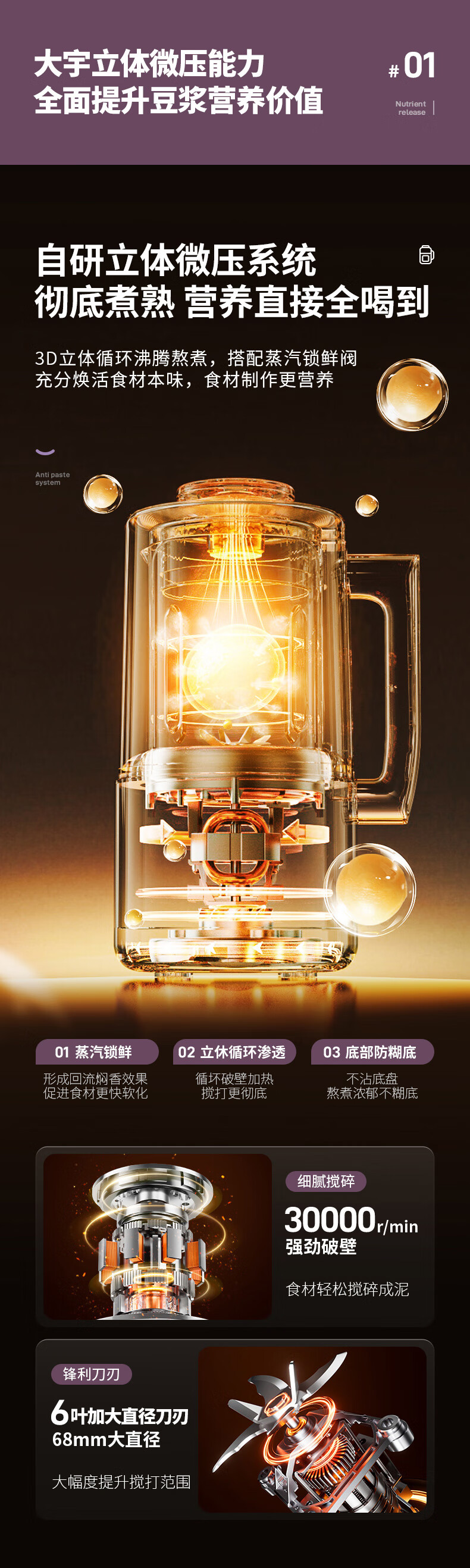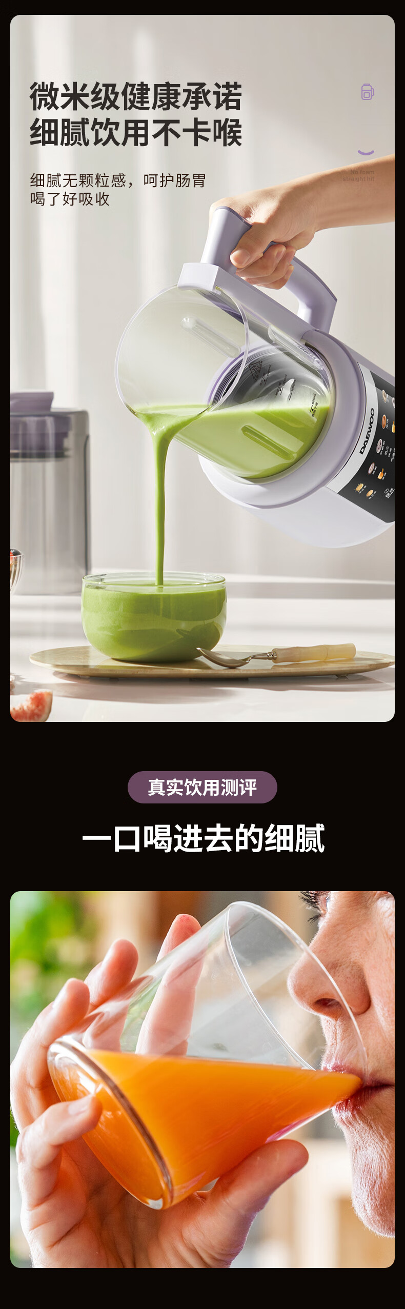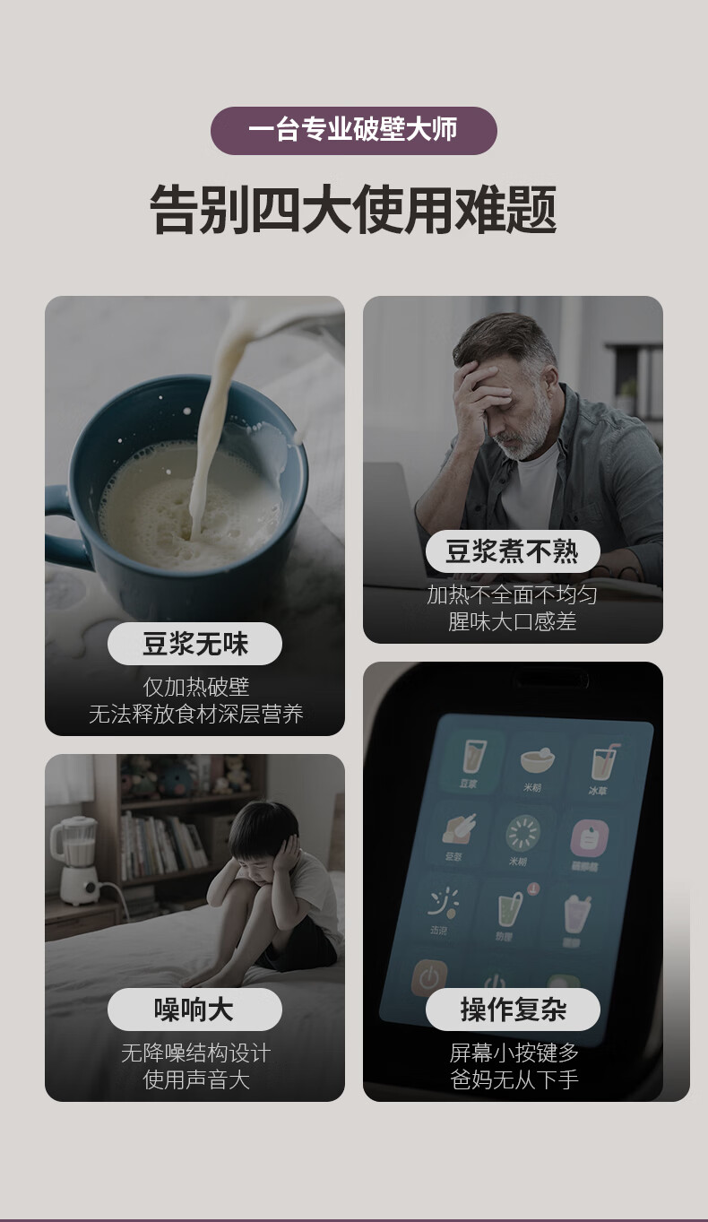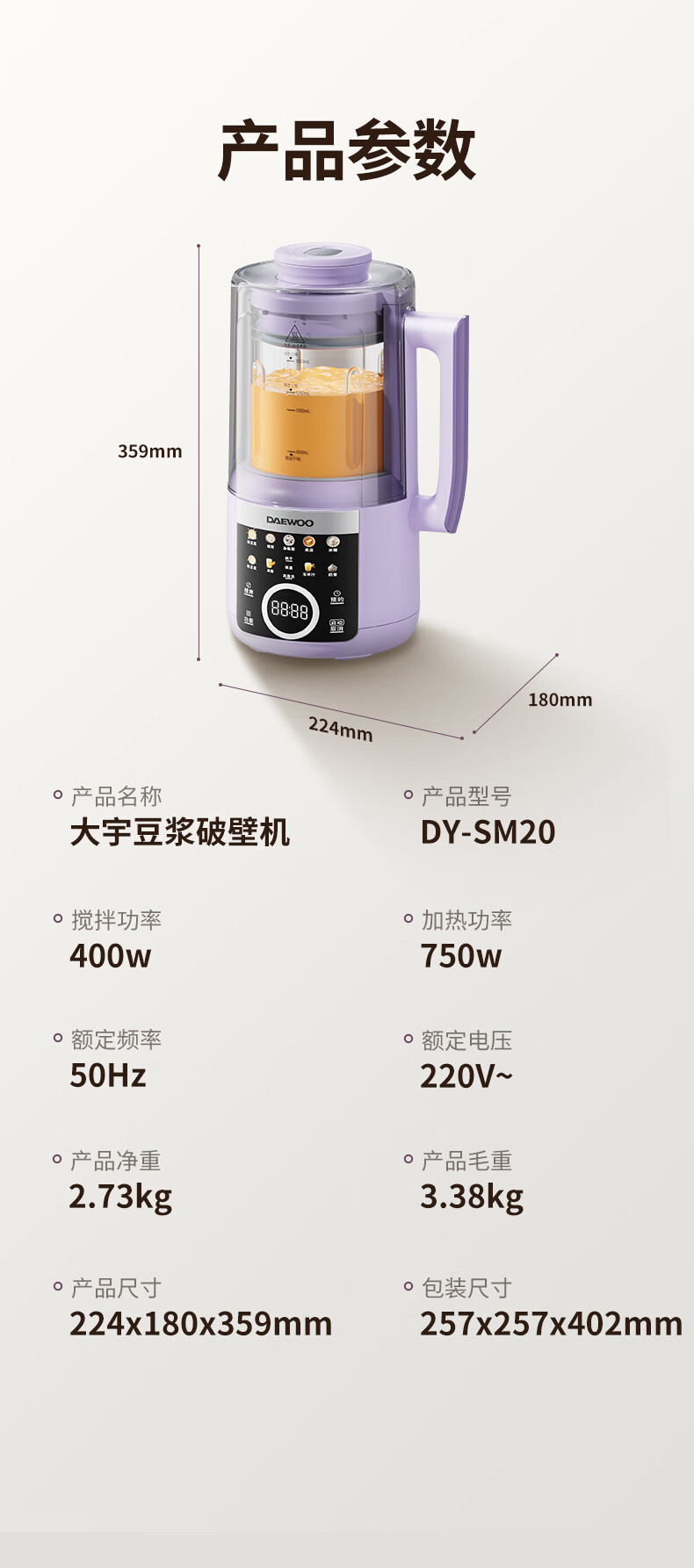 大宇(DAEWOO)破壁机隔音罩轻音降噪家用豆浆机料理机全自动免煮免滤五谷杂粮大容量早餐机SM20【2025新款】 25年新款玻璃大屏1.5L(紫色)
