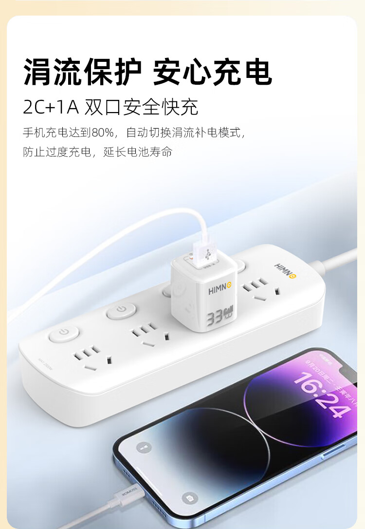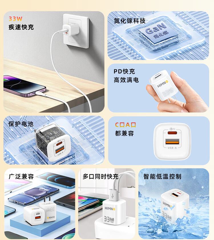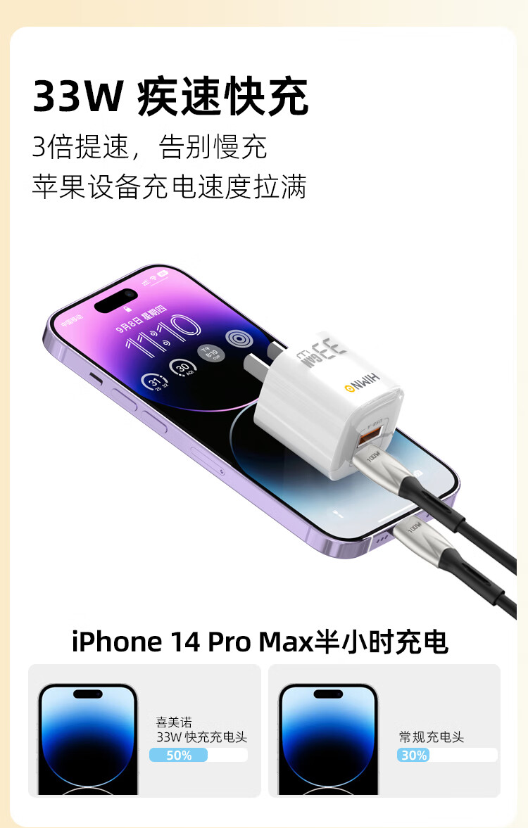 喜美诺氮化镓充电器iPhone16/15充电头PD33W/67W快充Type-C适用苹果16/15ProMax14/13/12/11iPad手机 33W充电器+1条数据线支持苹果15-17和安卓