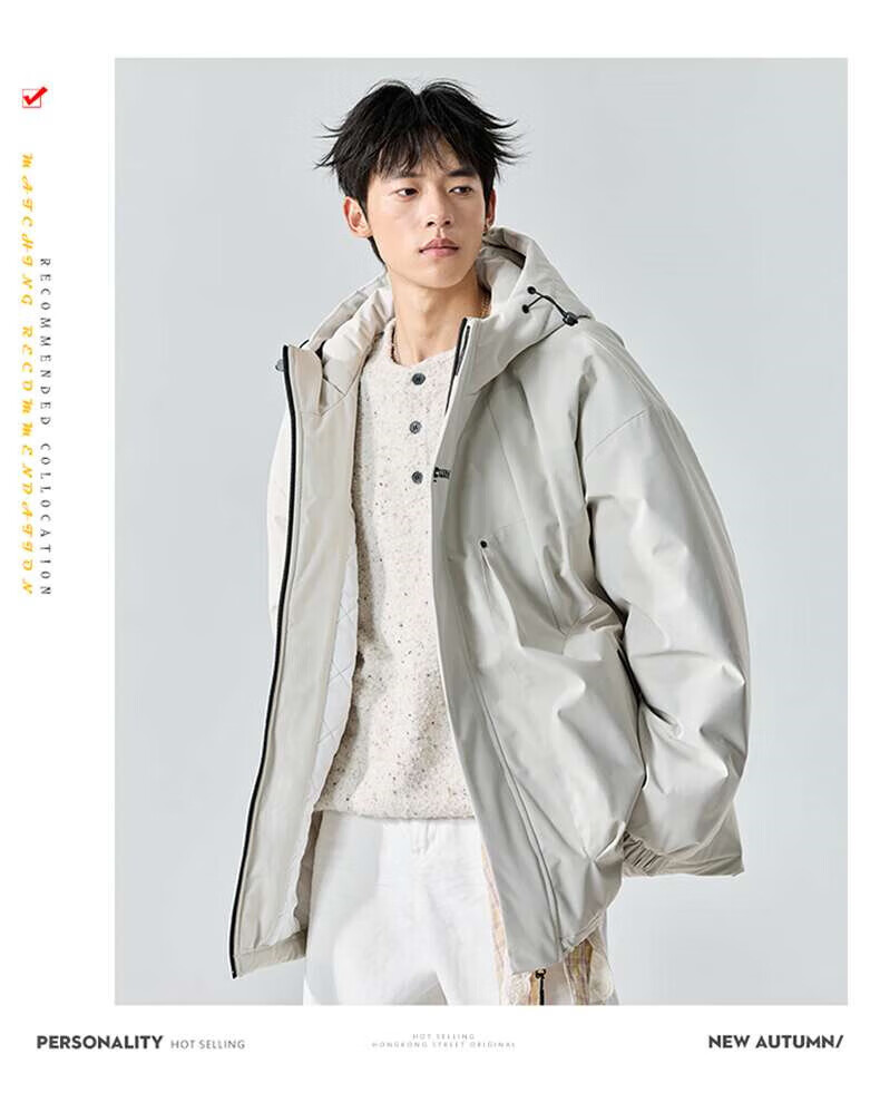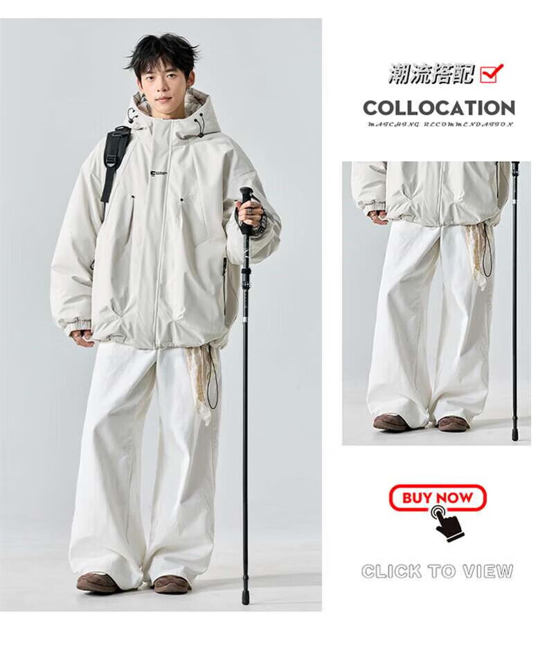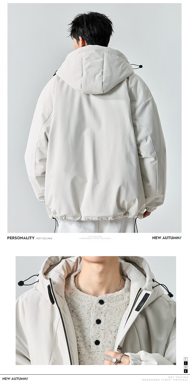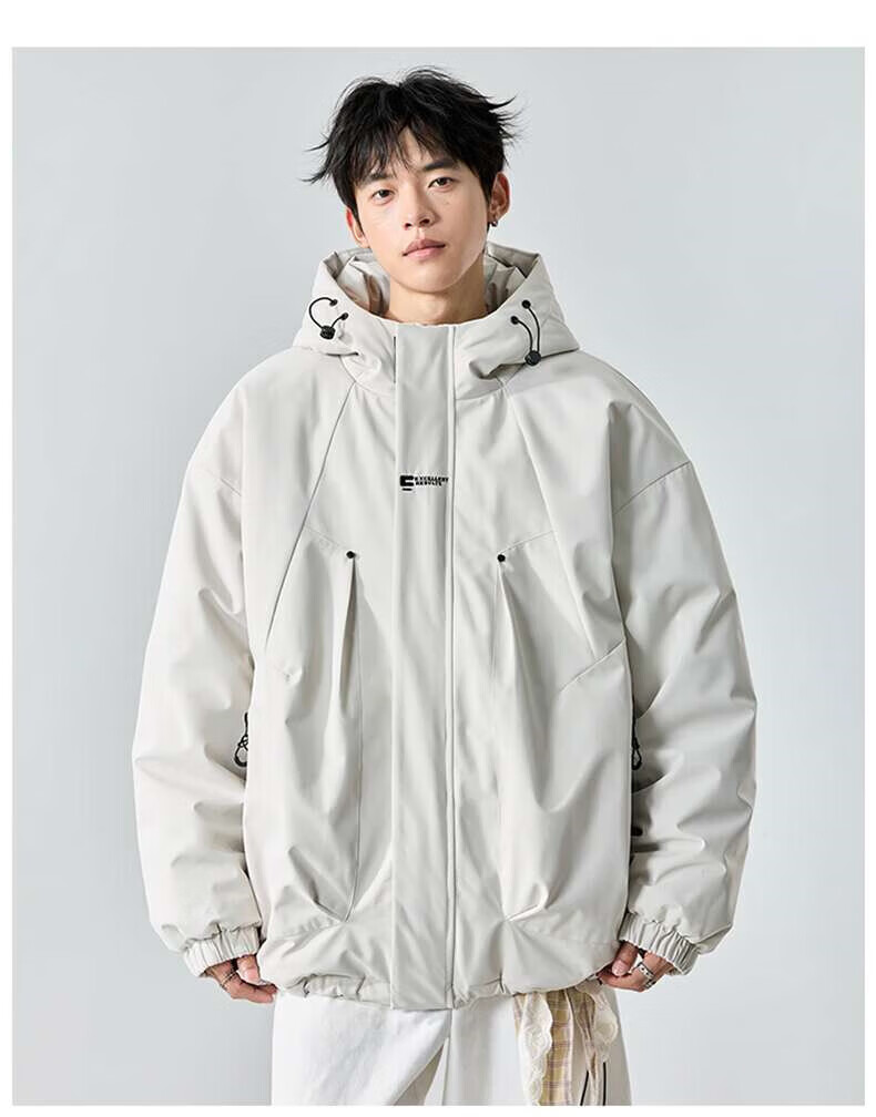 JEEP SPIRIT吉普棉服男女款冬季日系潮牌户外工装冲锋衣防风防水加厚连帽外套 象牙白 XL