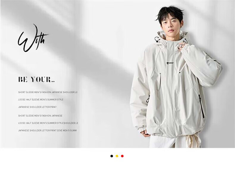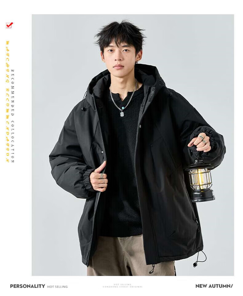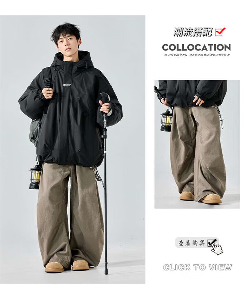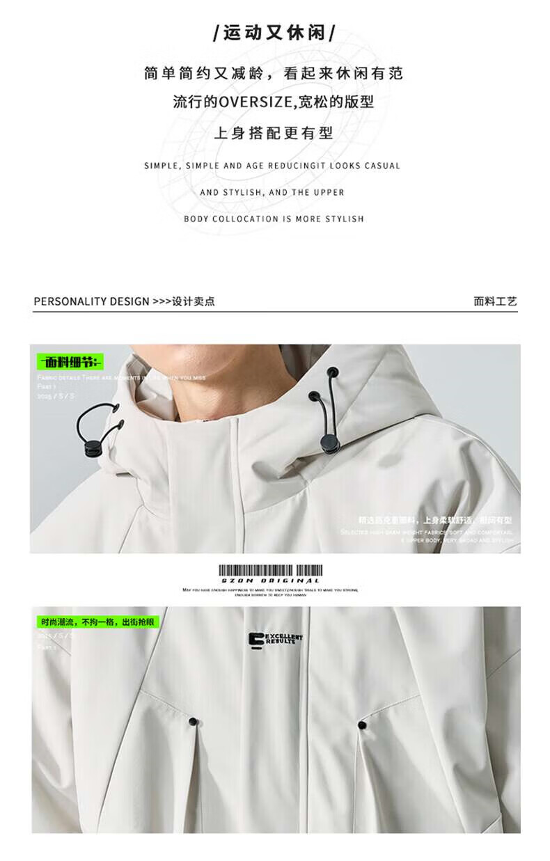 JEEP SPIRIT吉普棉服男女款冬季日系潮牌户外工装冲锋衣防风防水加厚连帽外套 象牙白 XL
