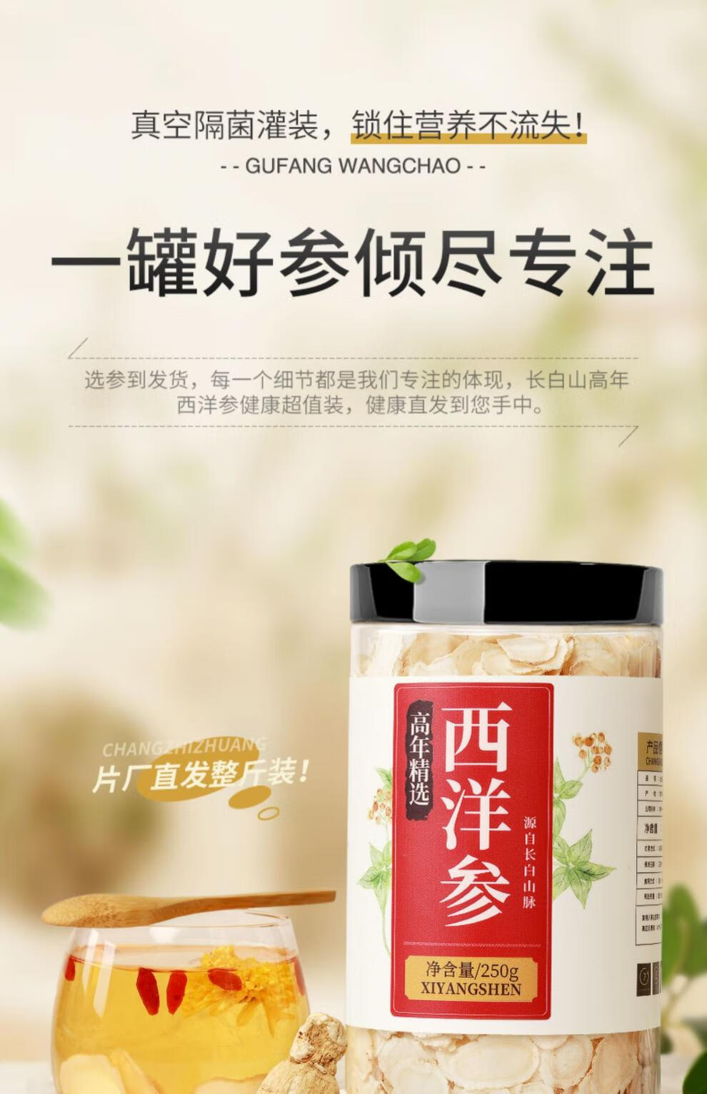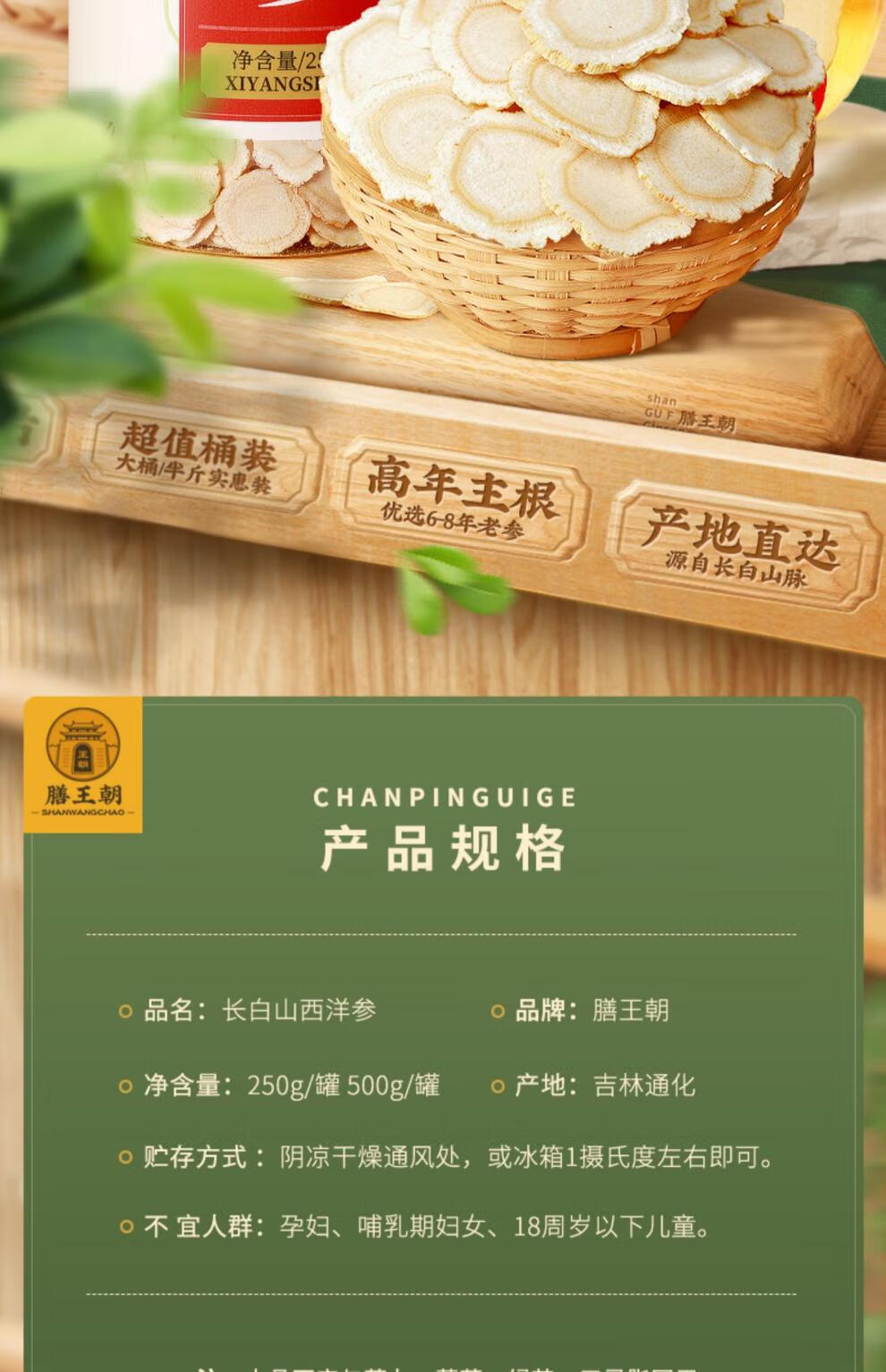 胖东来DL胖东来同款西洋参片500g特级中药材人参片花旗参切片代购 8年西洋参500g/0.4-0.8cm/超值精品小