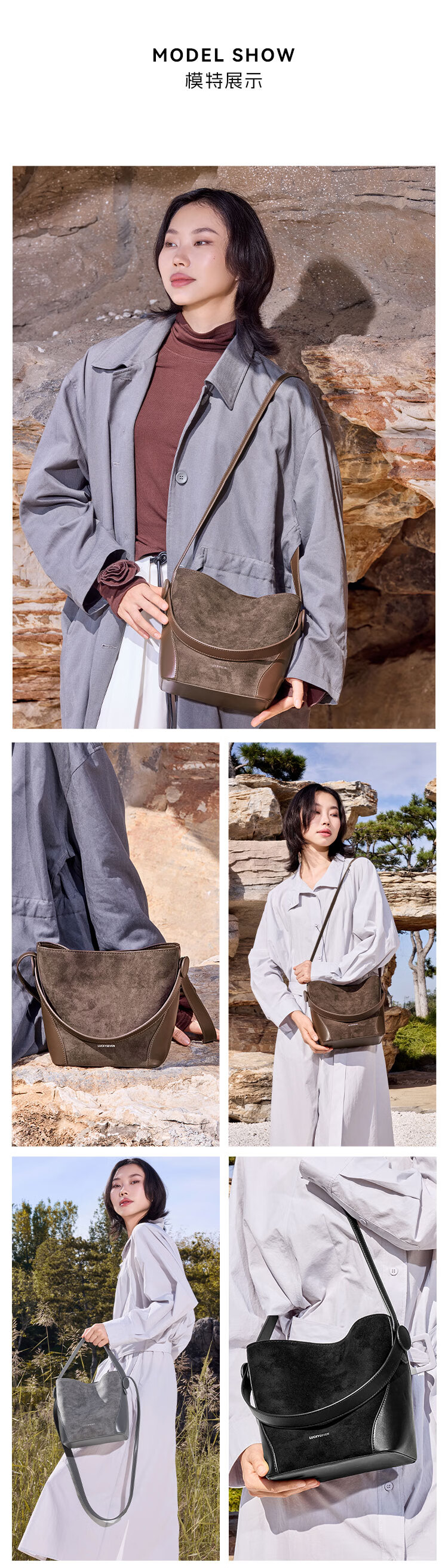 乐其塞文水桶托特女包大容量斜挎手提单肩通勤新款新年礼物送女友77100 黑色